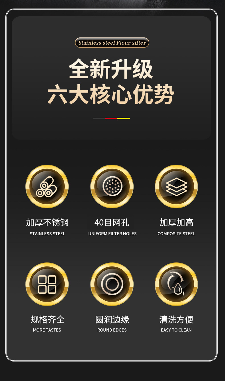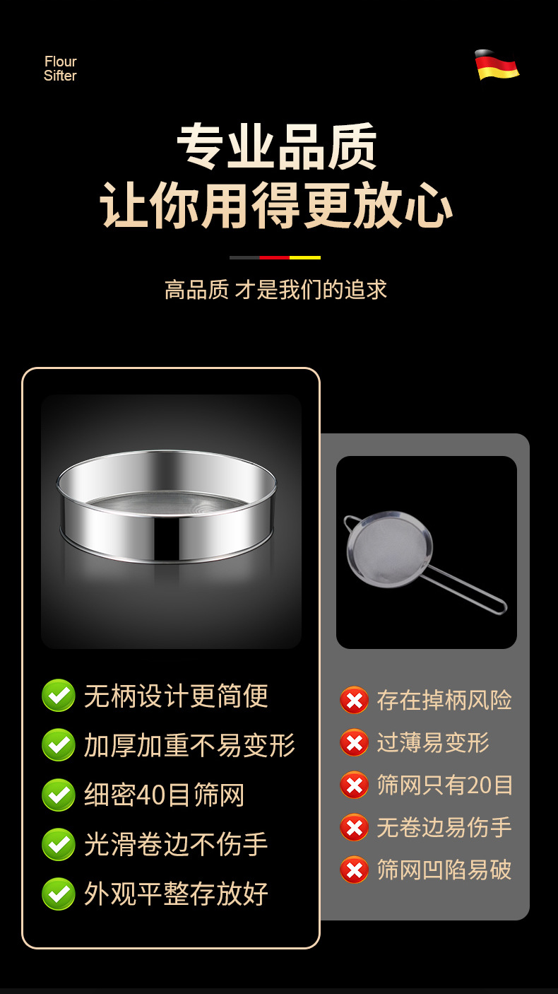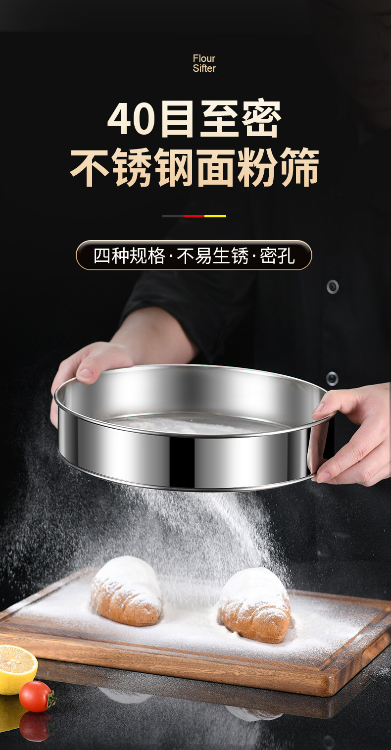 Трансграничное утолщенное сито из нержавеющей стали с 40 сетками, сито для выпечки муки, сетчатое сито, фильтр-сито, кухонный инструмент, круглое сито для муки