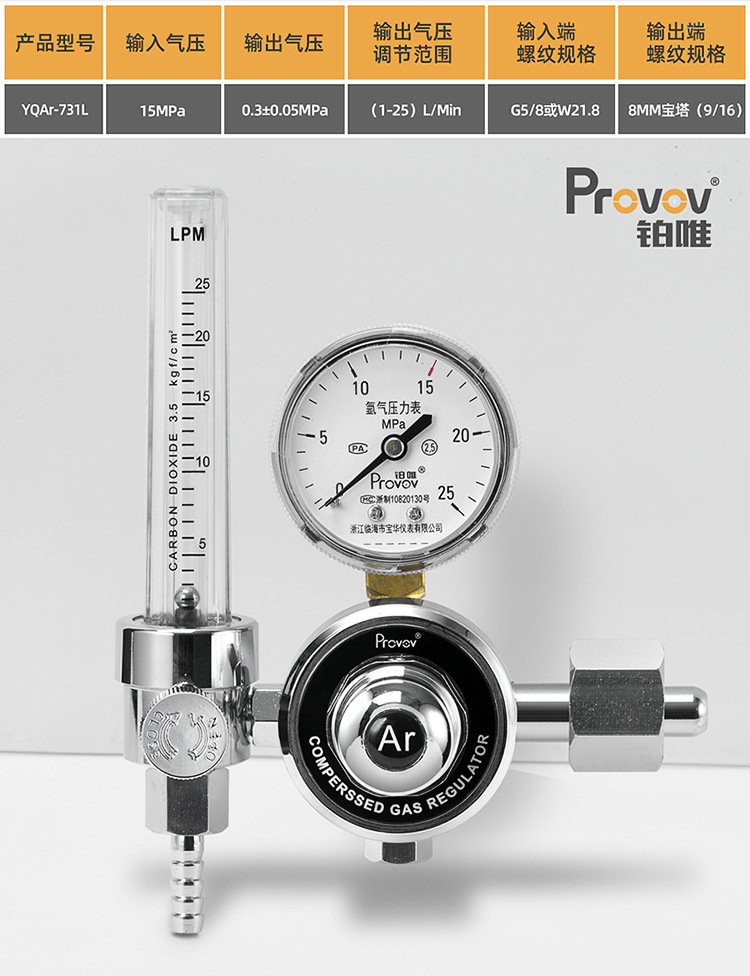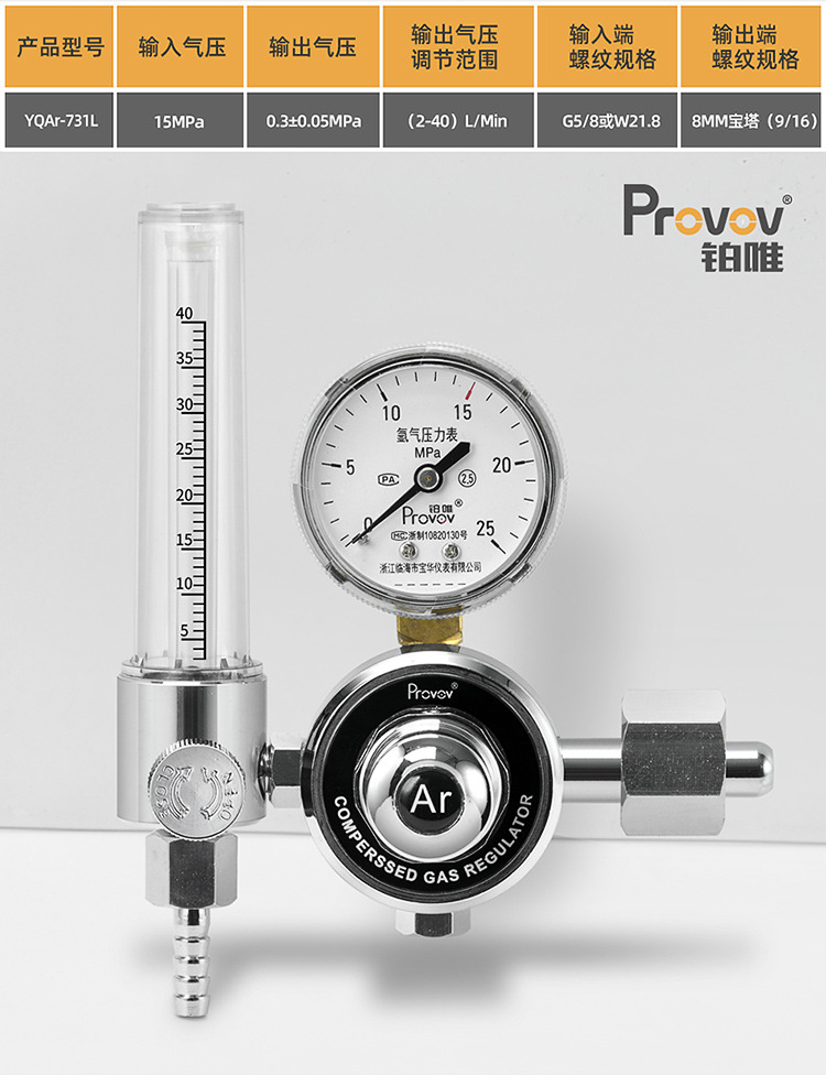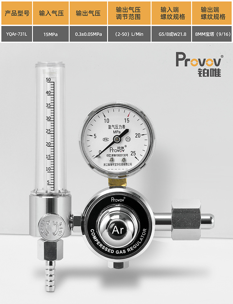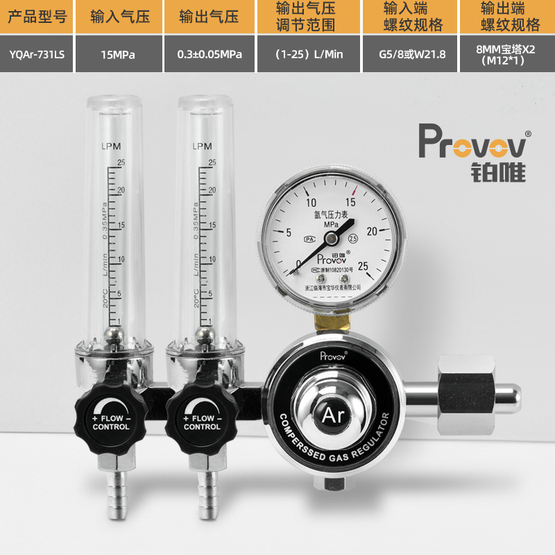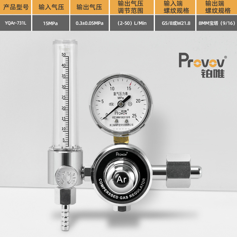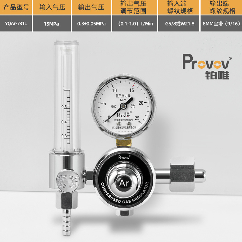 Редукционный клапан давления аргона, расходомер YQAR-731L, редуктор давления, баллон с аргоном, манометр, двойная трубка расхода, энергосберегающий тип