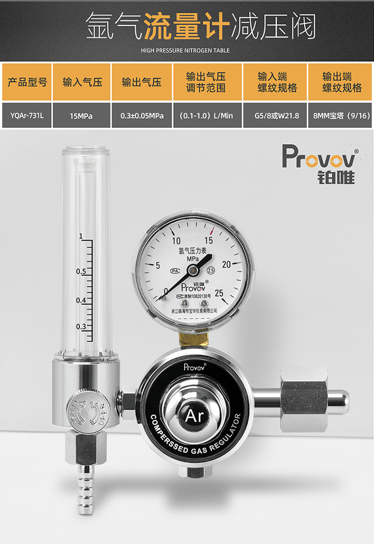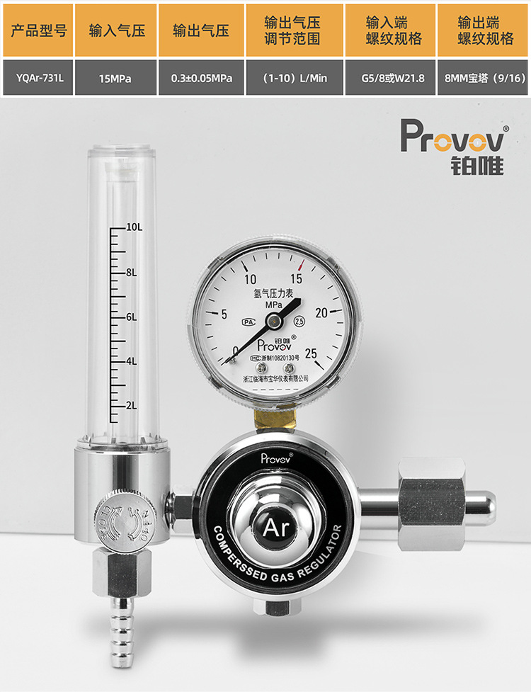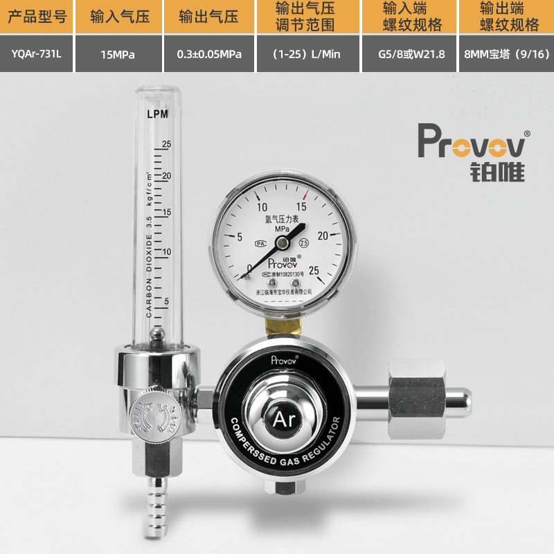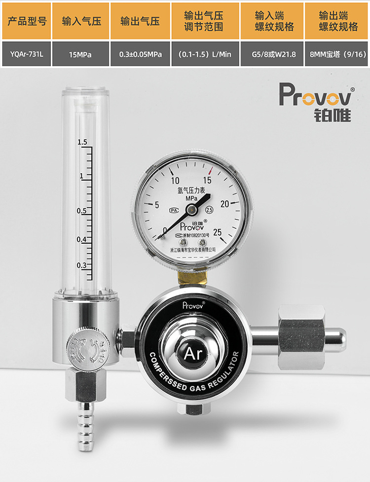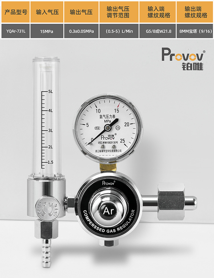 Редукционный клапан давления аргона, расходомер YQAR-731L, редуктор давления, баллон с аргоном, манометр, двойная трубка расхода, энергосберегающий тип