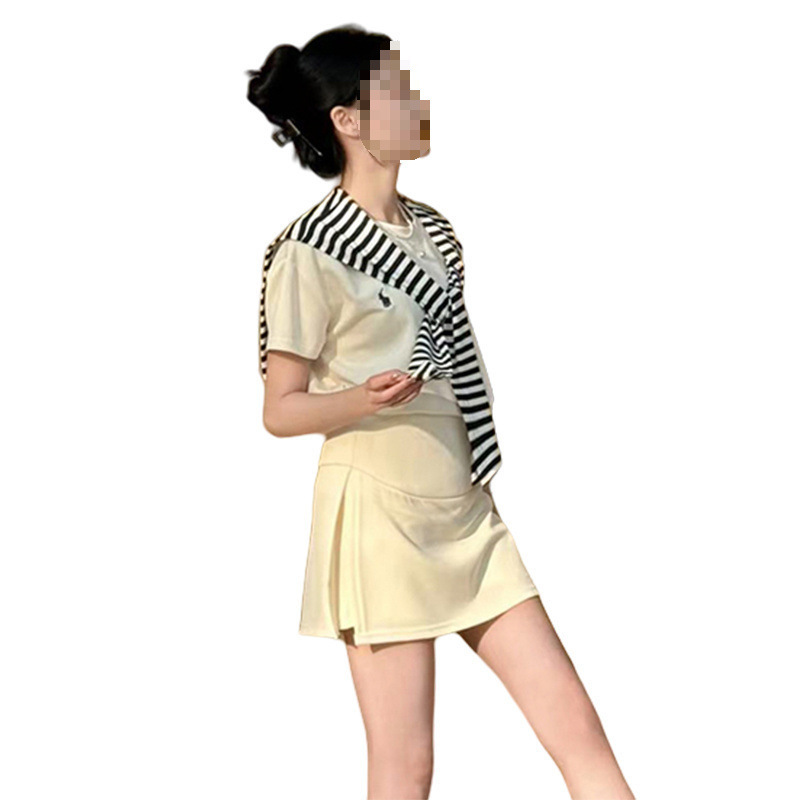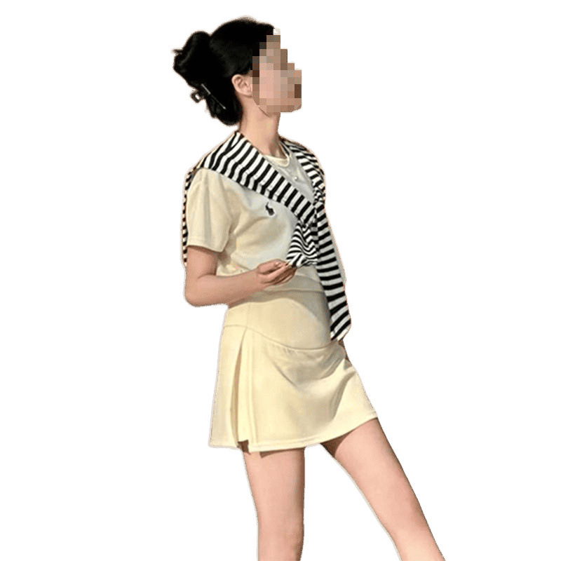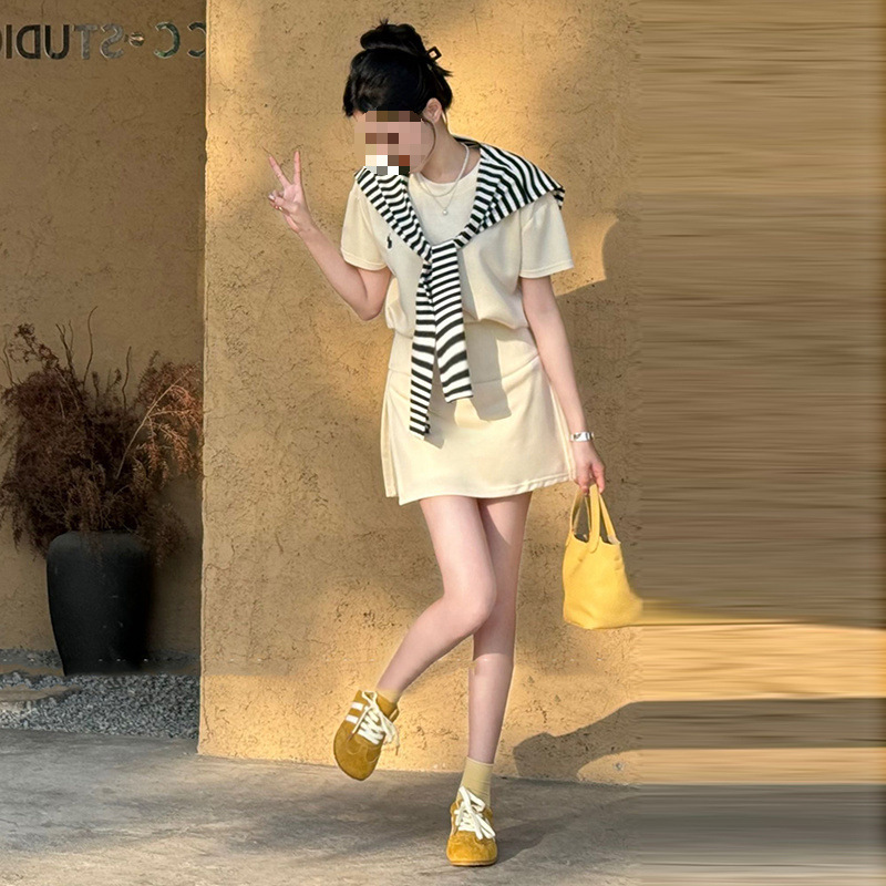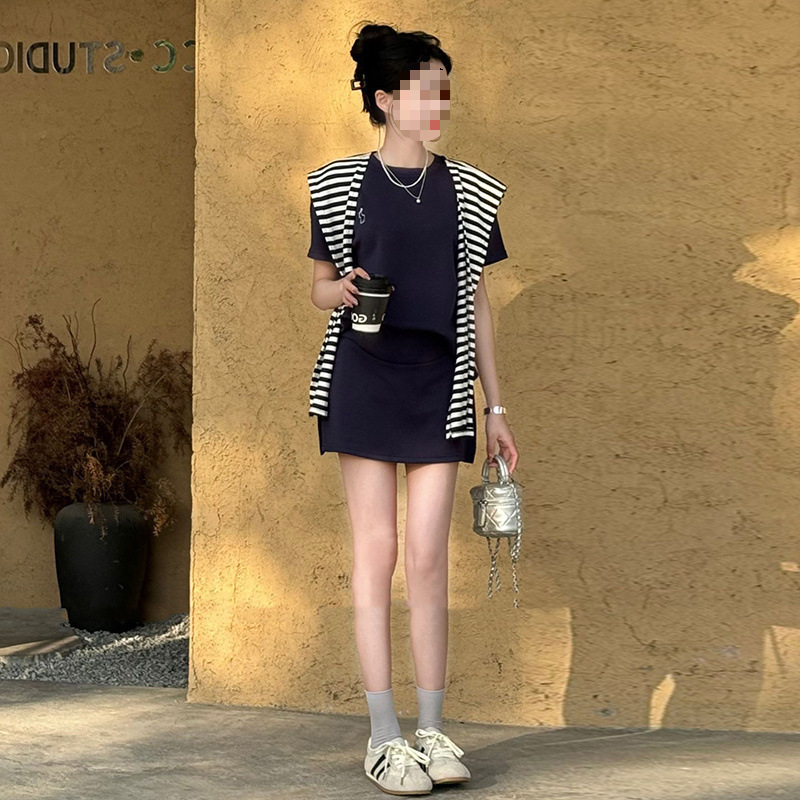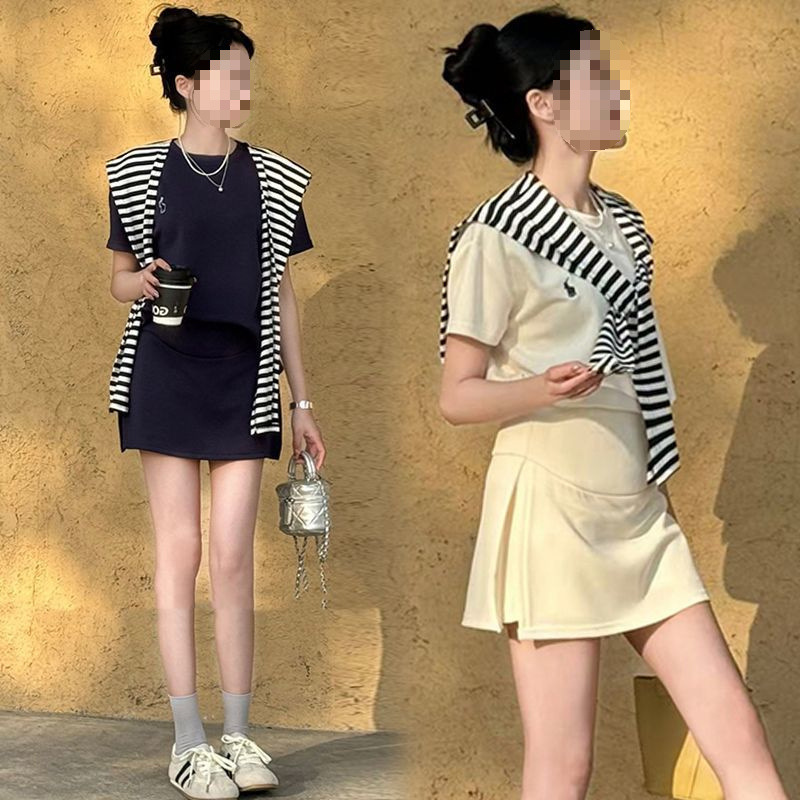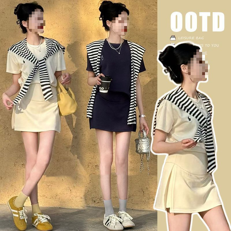Костюм для беременных, модный и повседневный спортивный топ, шорты, поддерживающие живот, юбка, полосатая шаль, комплект из трех предметов.