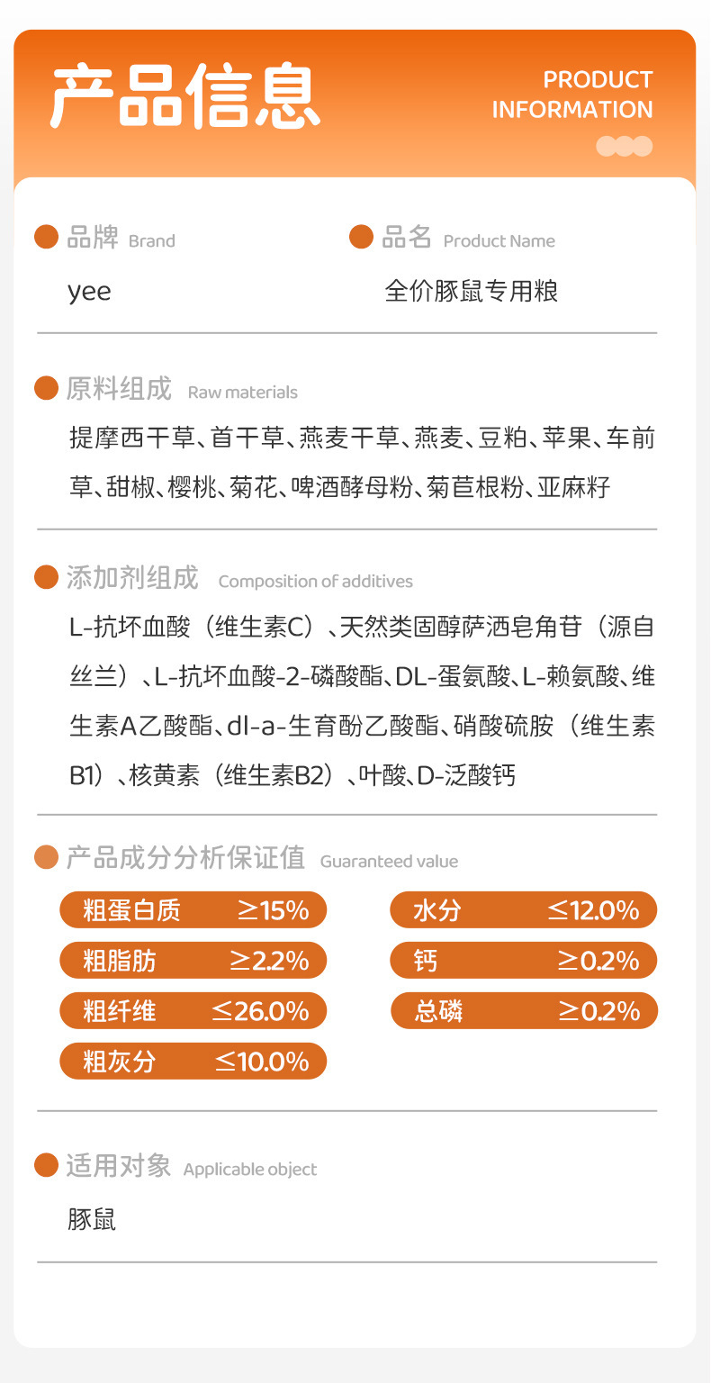 yee корм для морской свинки, морская свинка, морская свинка, специальный корм для молодых и взрослых, основной корм, питание с высоким содержанием клетчатки, красота волос VC
