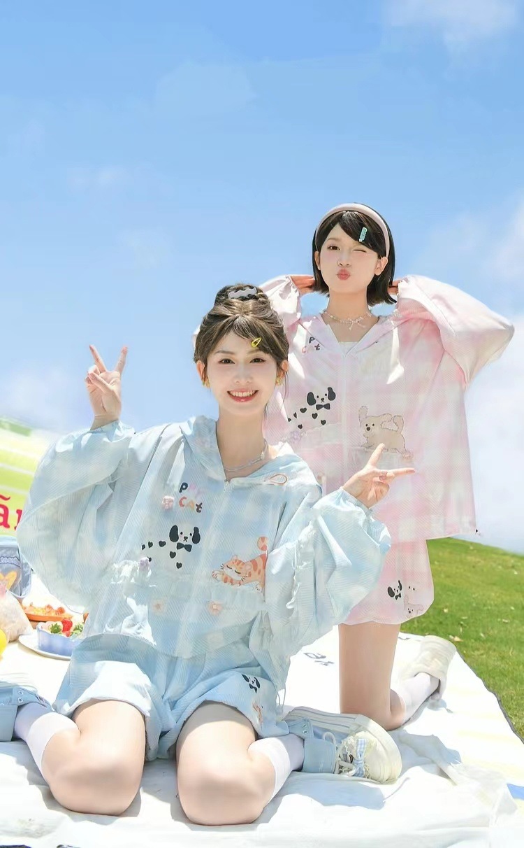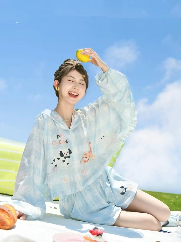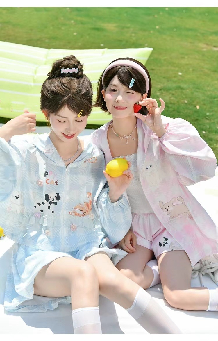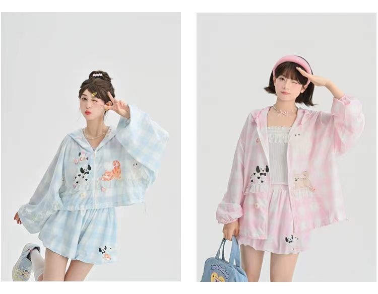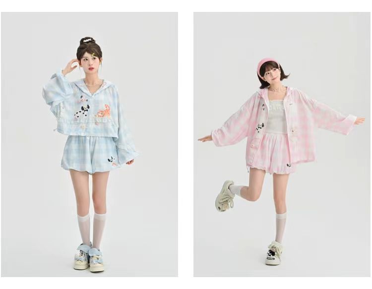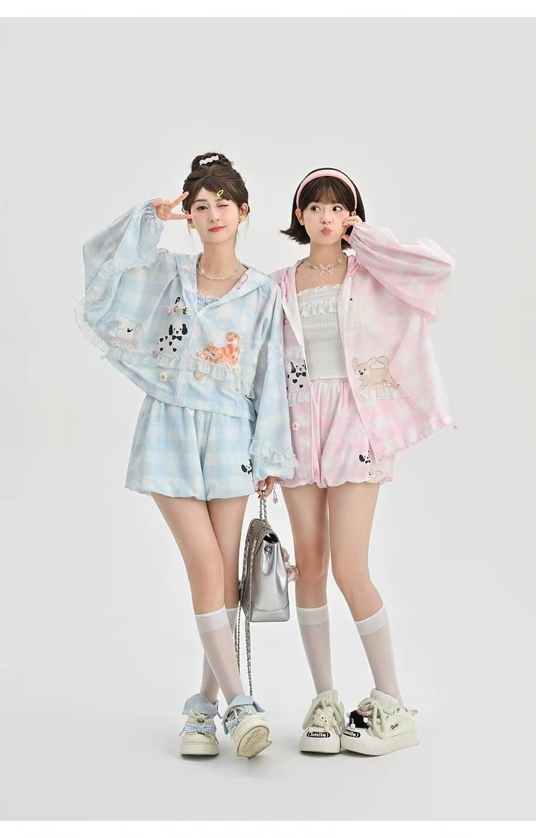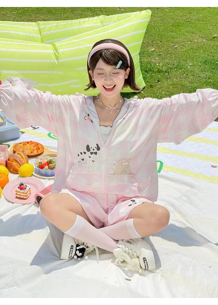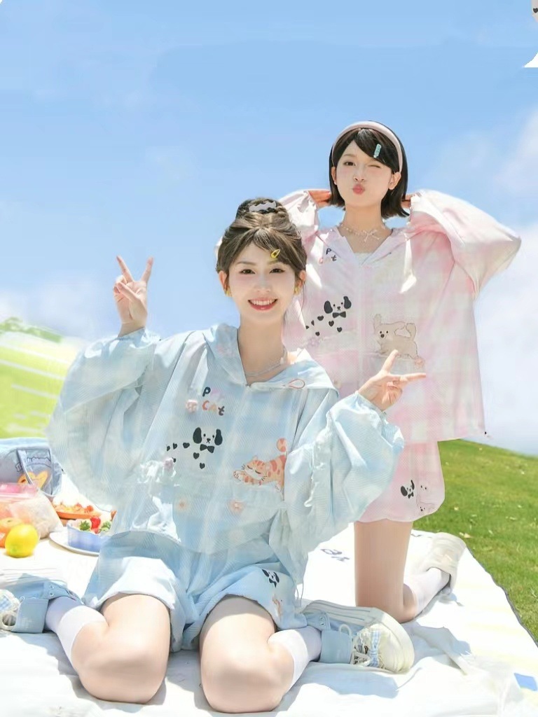 Новинка 2025 года, милый комплект с капюшоном Dopamine Sweet Girl, модный комплект для защиты от солнца, комплект шорт для лучшего друга