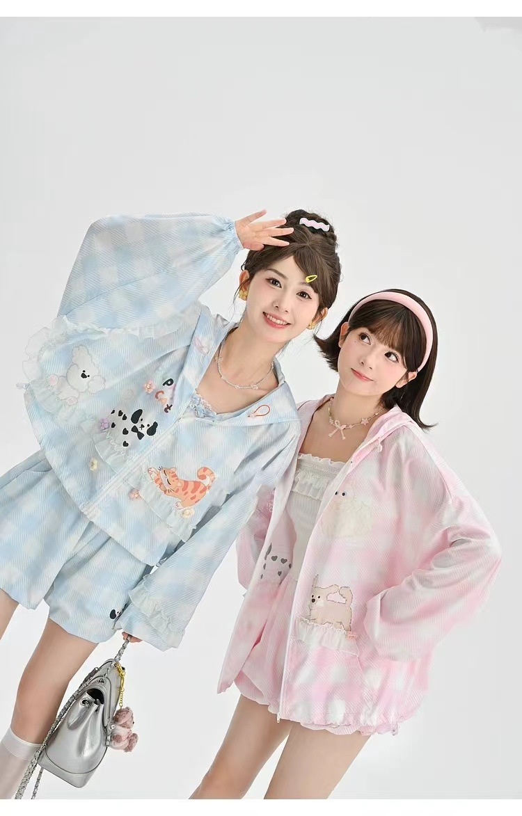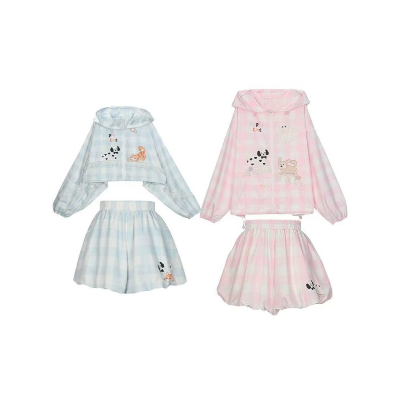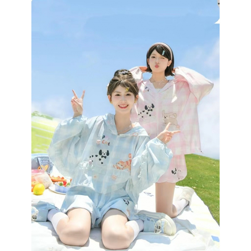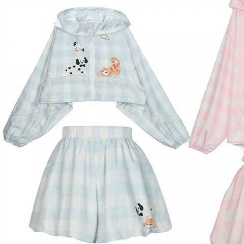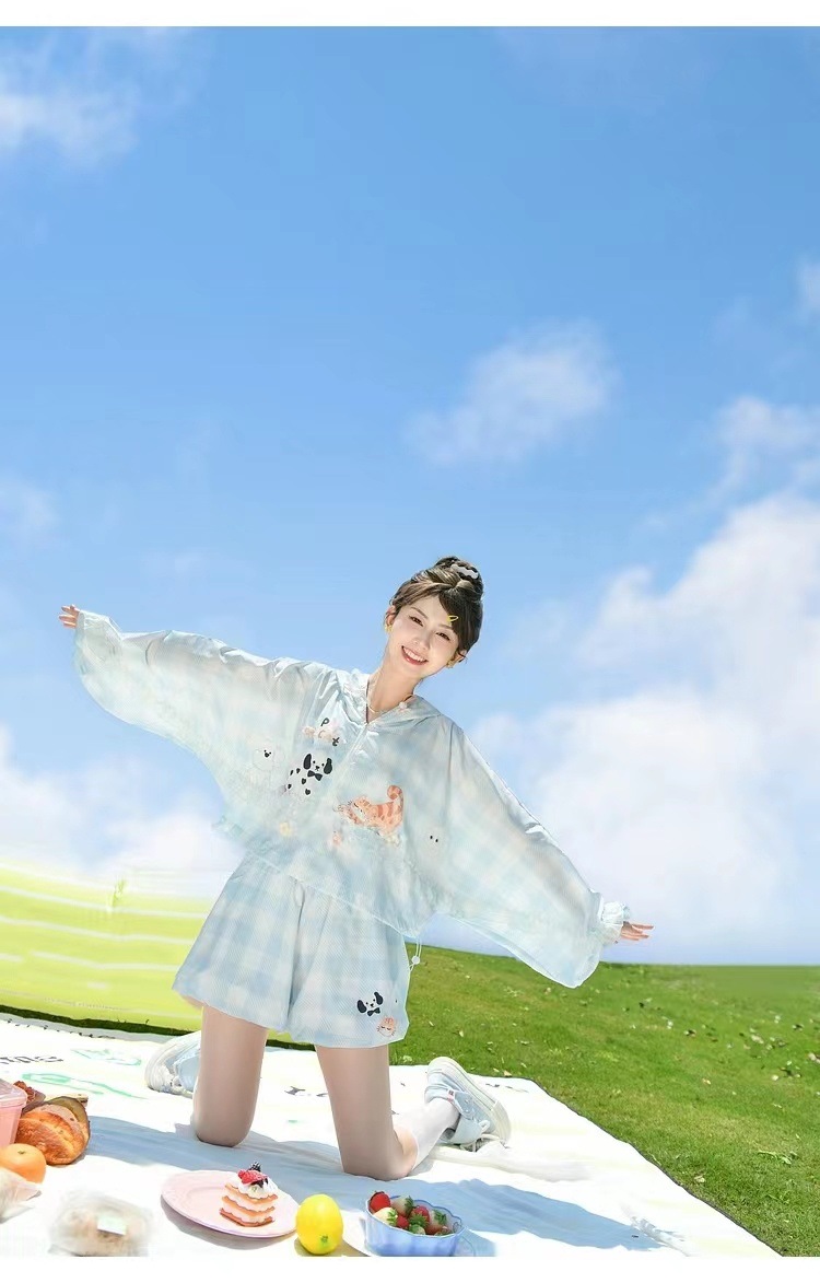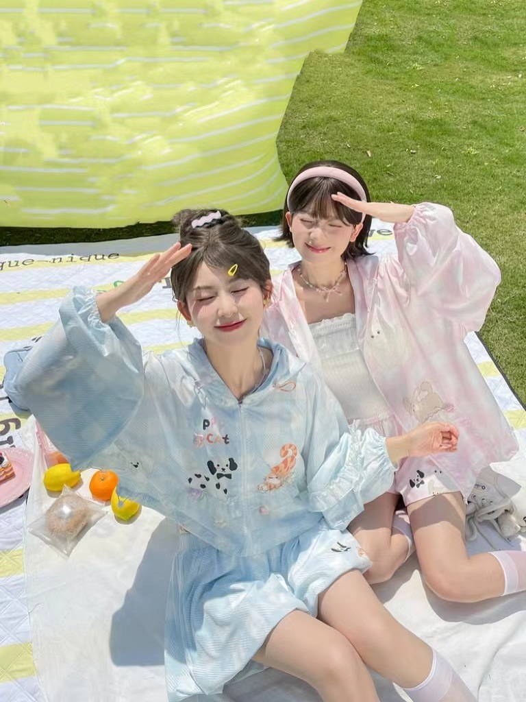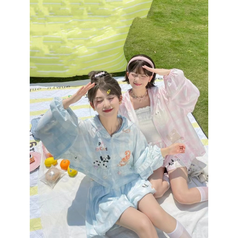Новинка 2025 года, милый комплект с капюшоном Dopamine Sweet Girl, модный комплект для защиты от солнца, комплект шорт для лучшего друга