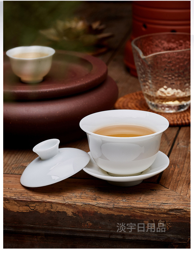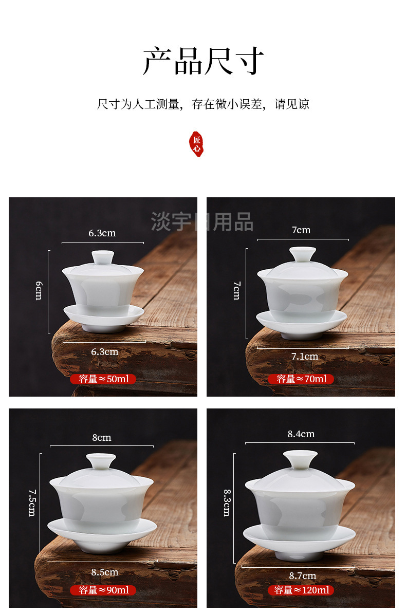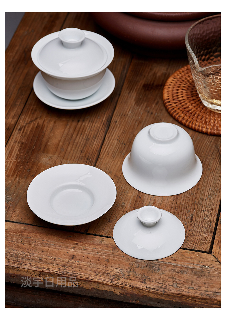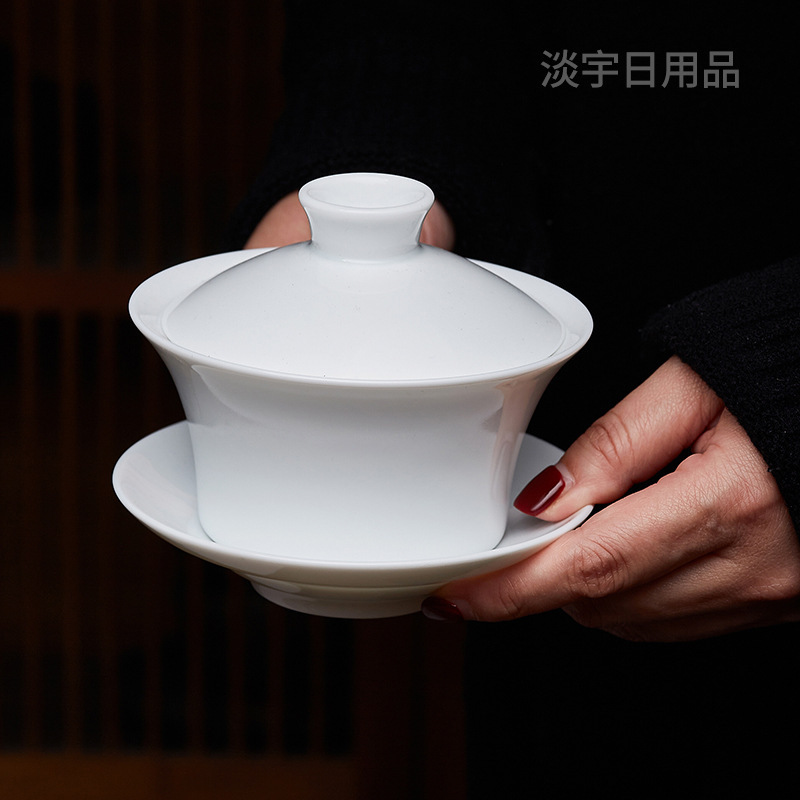 Чайный сервиз, большая, средняя и маленькая закрытая чаша/чисто-белая бытовая китайская чаша для чая ручной работы с защитой от ожогов, керамическая ручная работа, простой белый фарфор