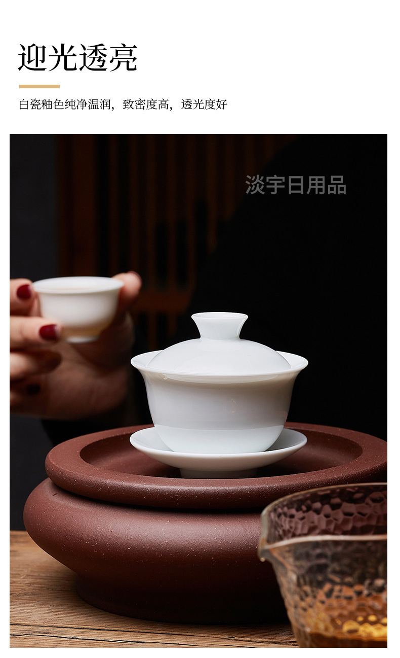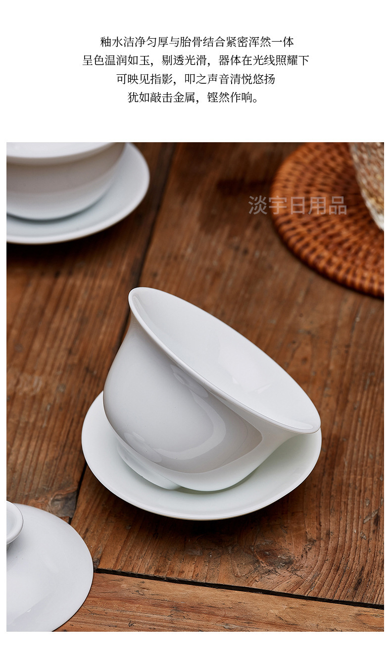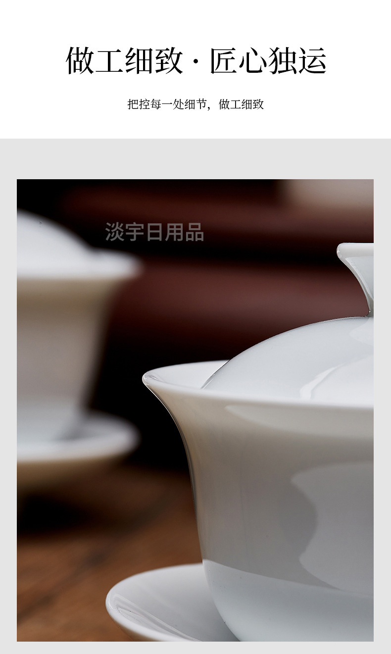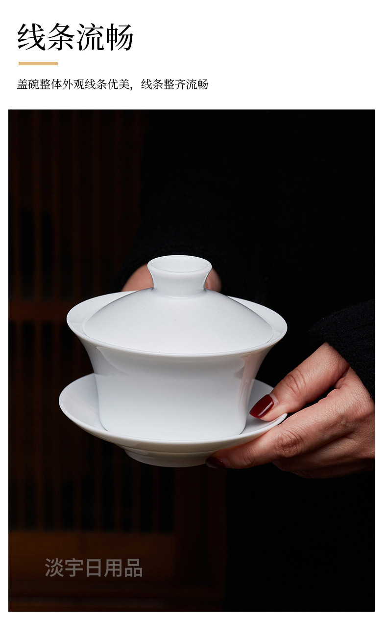 Чайный сервиз, большая, средняя и маленькая закрытая чаша/чисто-белая бытовая китайская чаша для чая ручной работы с защитой от ожогов, керамическая ручная работа, простой белый фарфор
