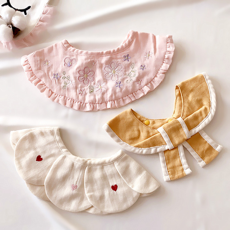 Тонкое марлевое слюнявчик для малышей в корейском стиле, детский нагрудник из чистого хлопка, мягкий слюнявчик с лепестками, милый для весны и лета
