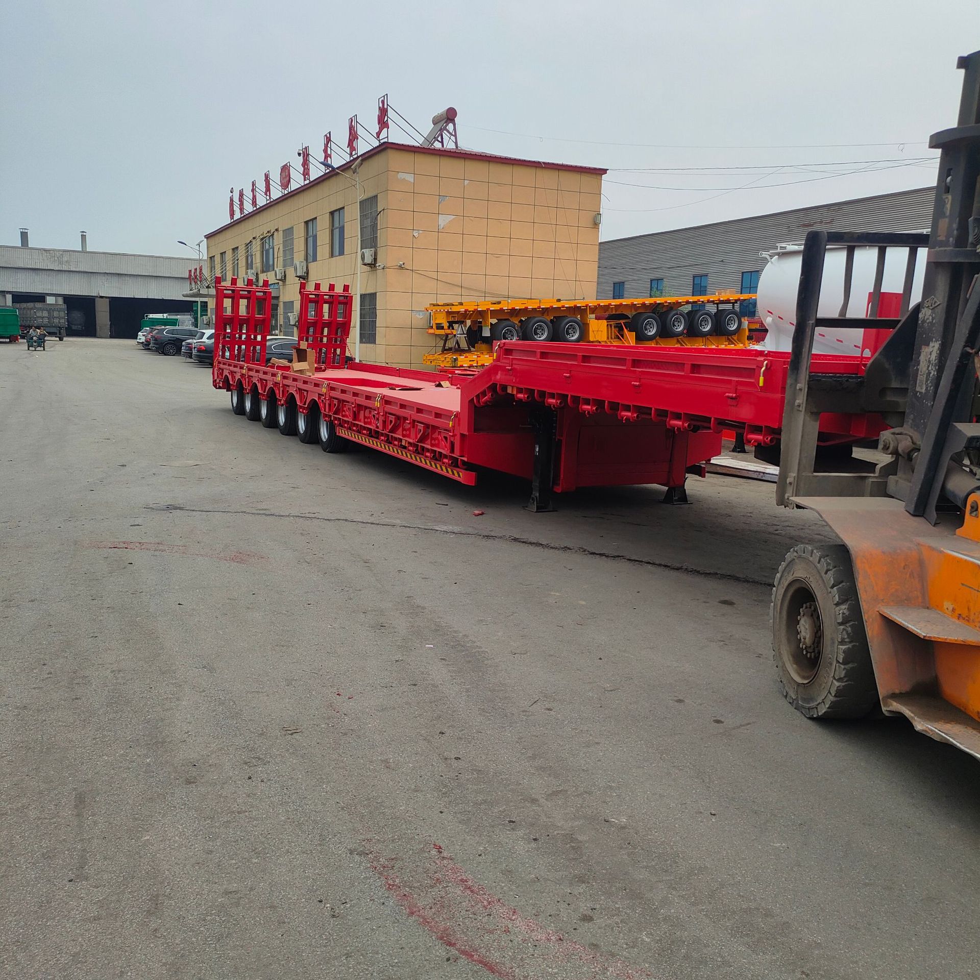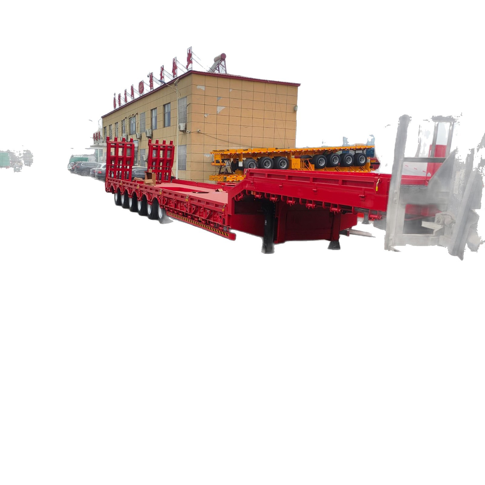 Экспортный тип инженерной техники: плоский транспортер, полуприцеп с лестничной платформой для экскаватора, опциональная гидравлическая лестничная конструкция.