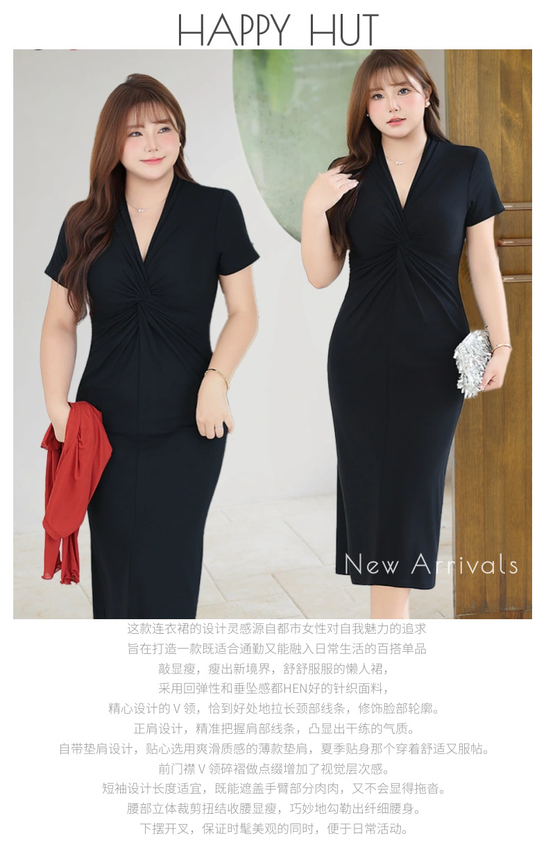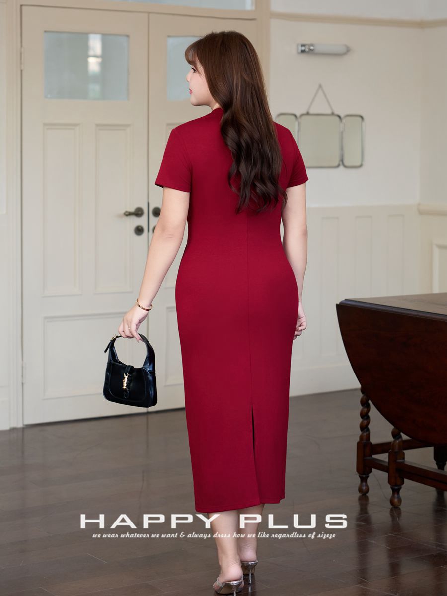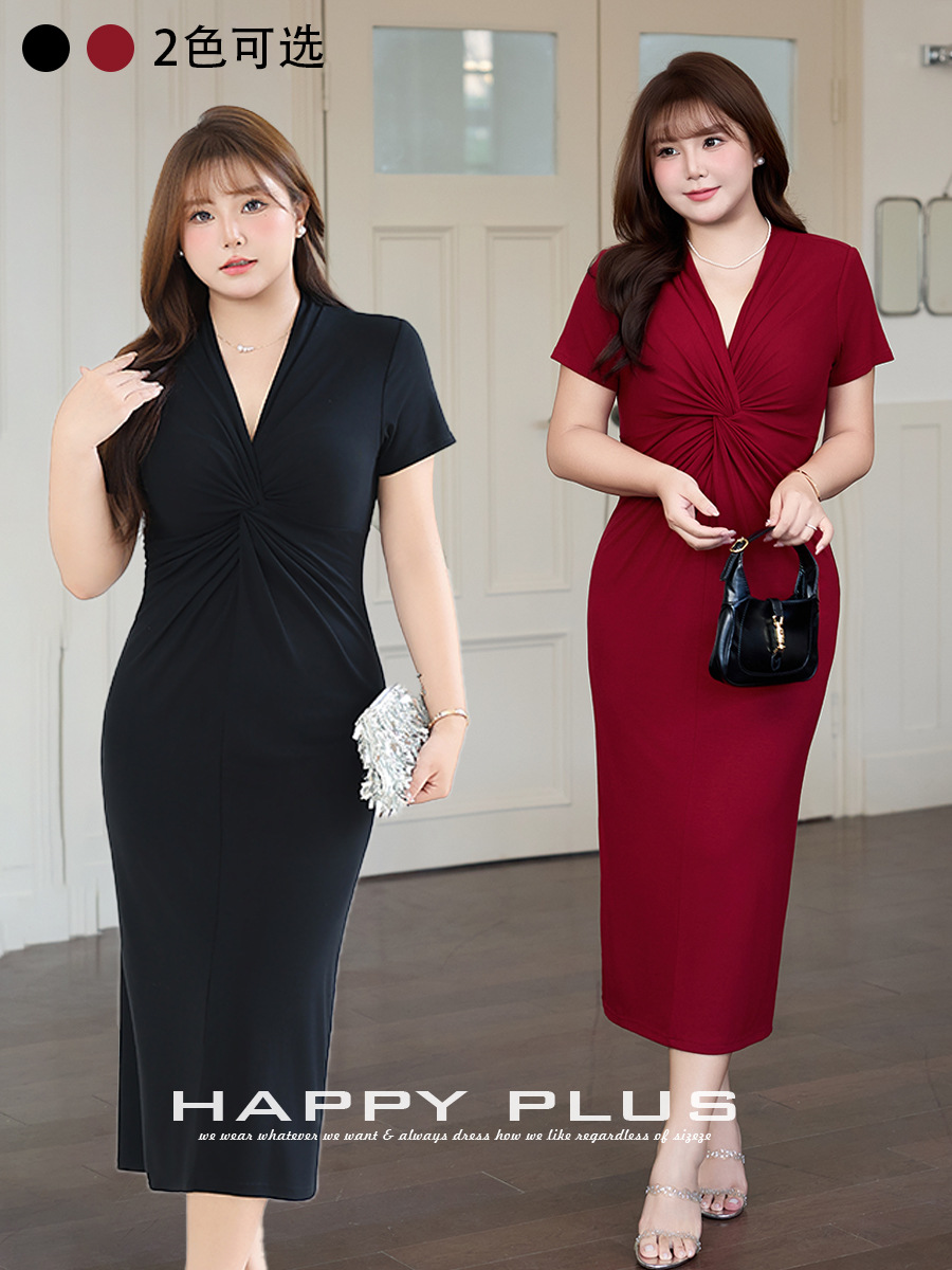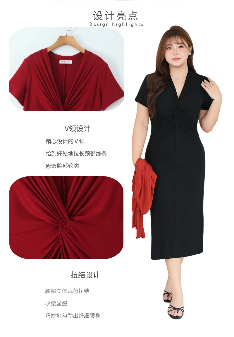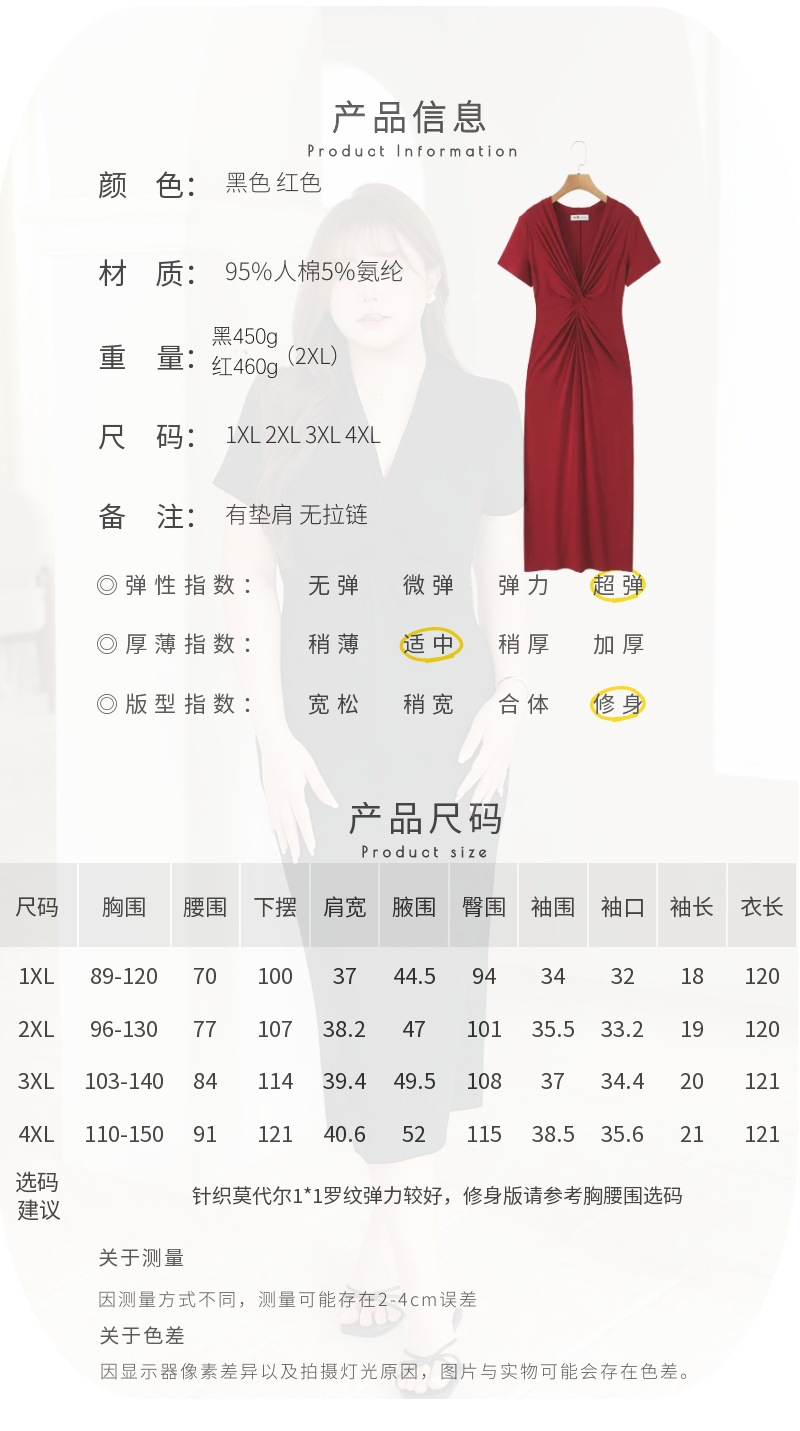Красное платье Yujie с v-образным вырезом и разрезом на бедрах, с короткими рукавами, Runqi 9292, маленькое черное платье большого размера с вертикальным вырезом на талии