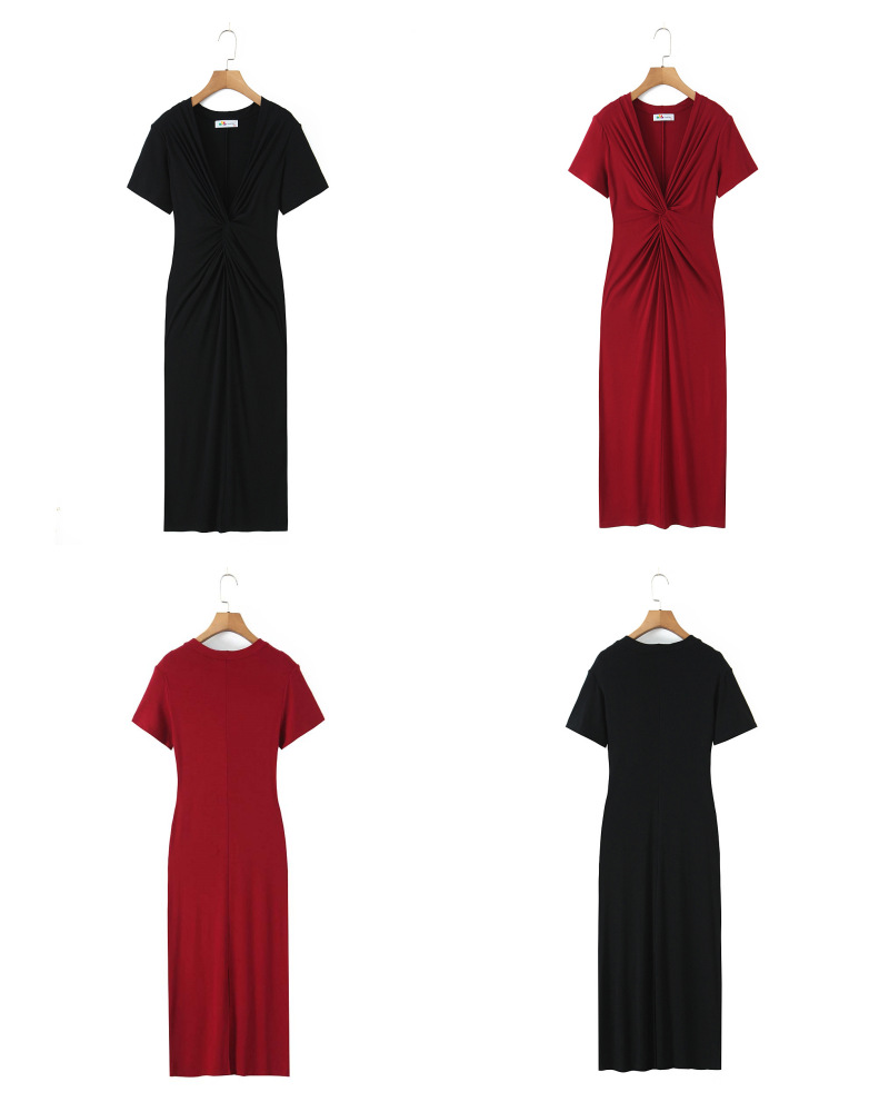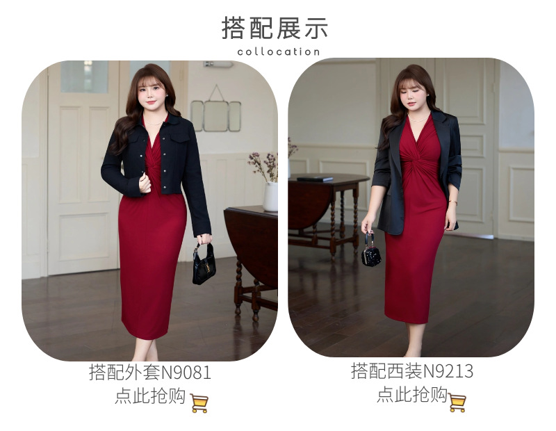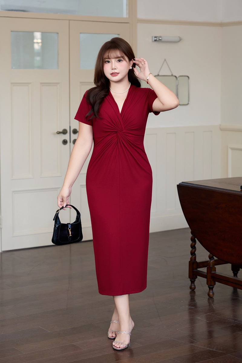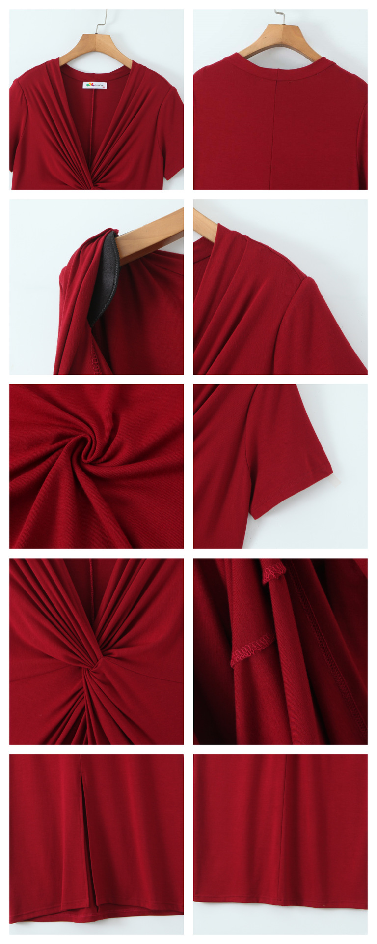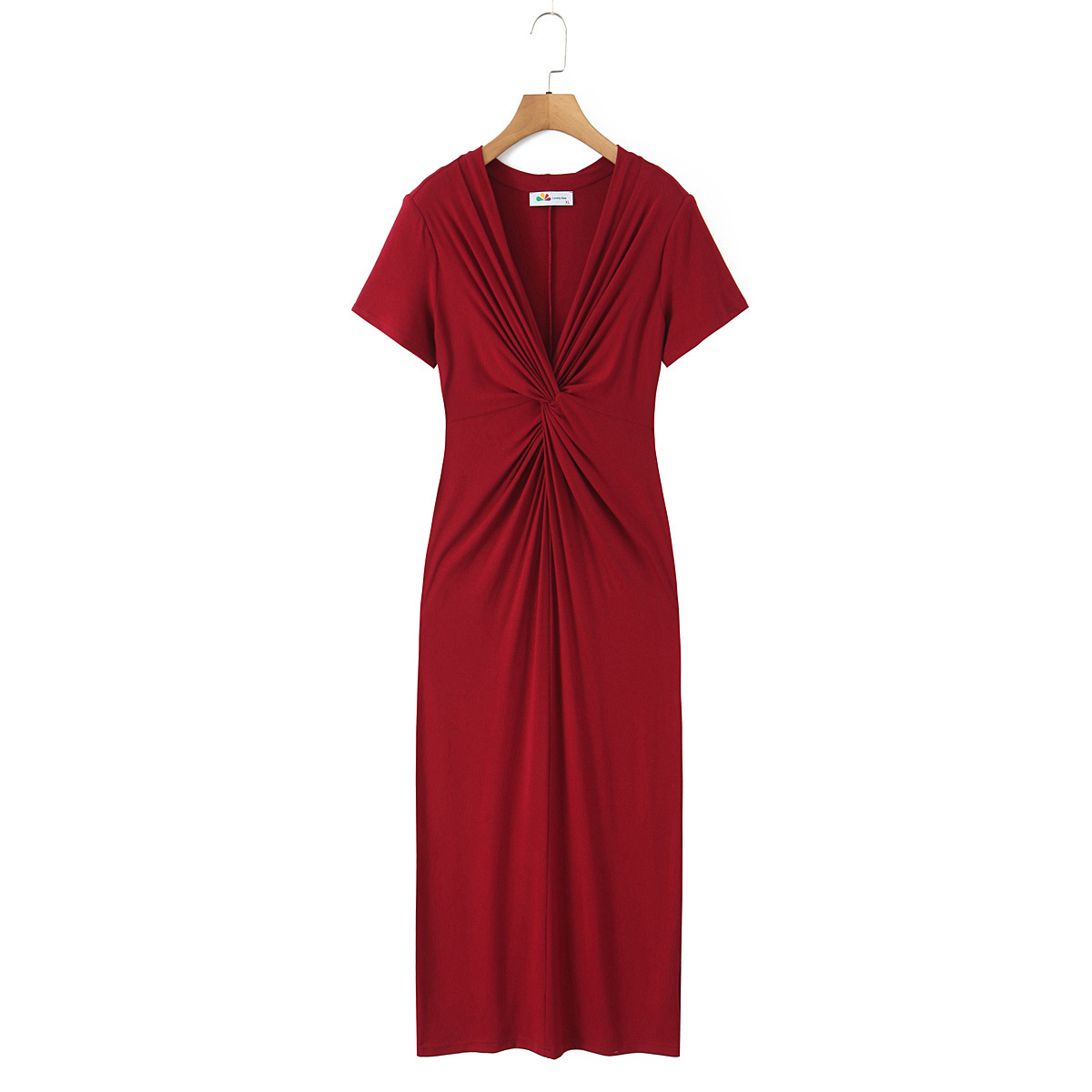 Красное платье Yujie с v-образным вырезом и разрезом на бедрах, с короткими рукавами, Runqi 9292, маленькое черное платье большого размера с вертикальным вырезом на талии