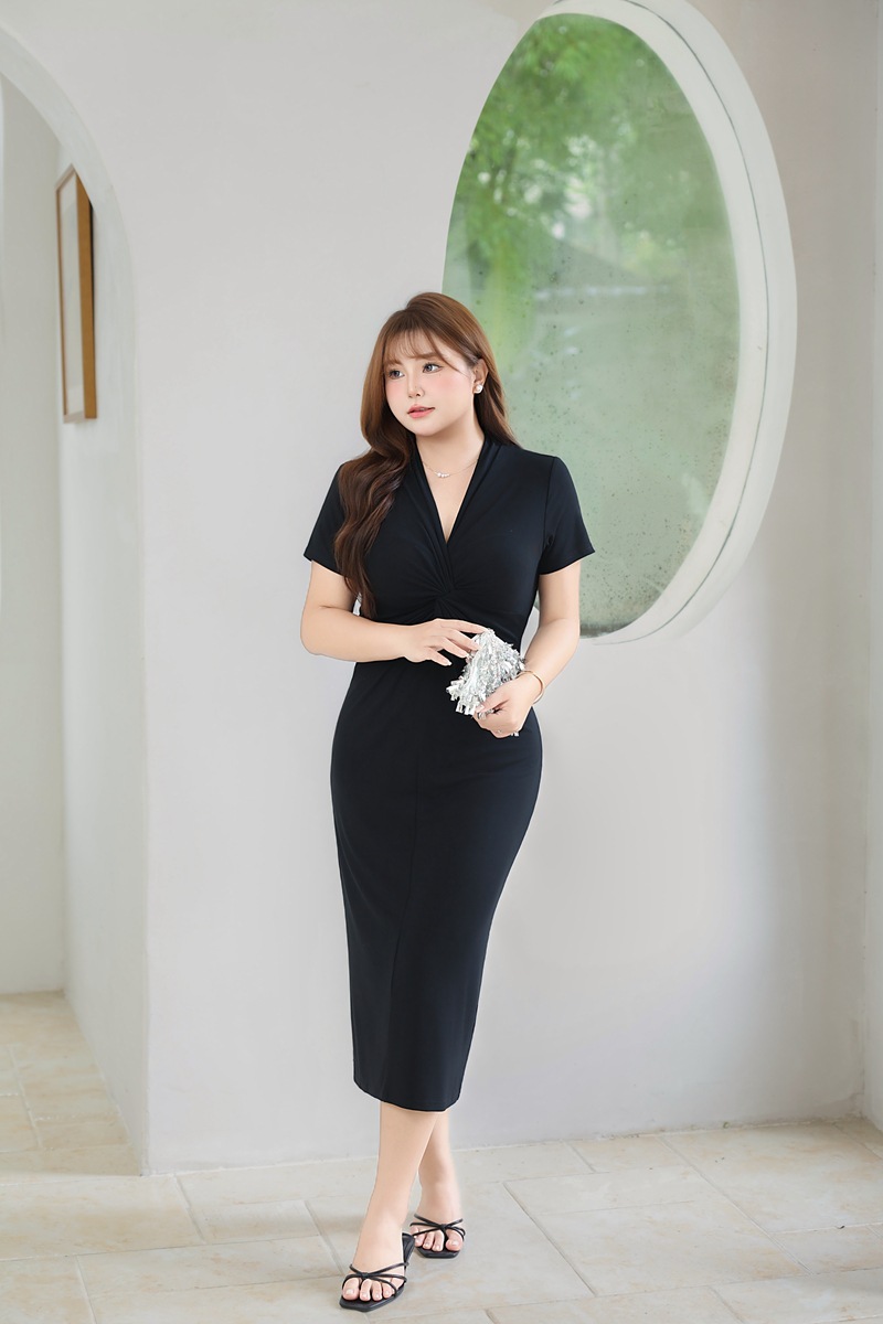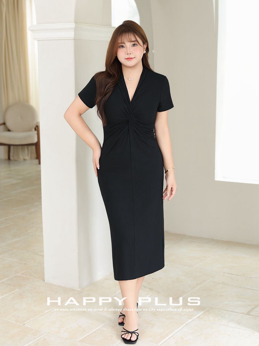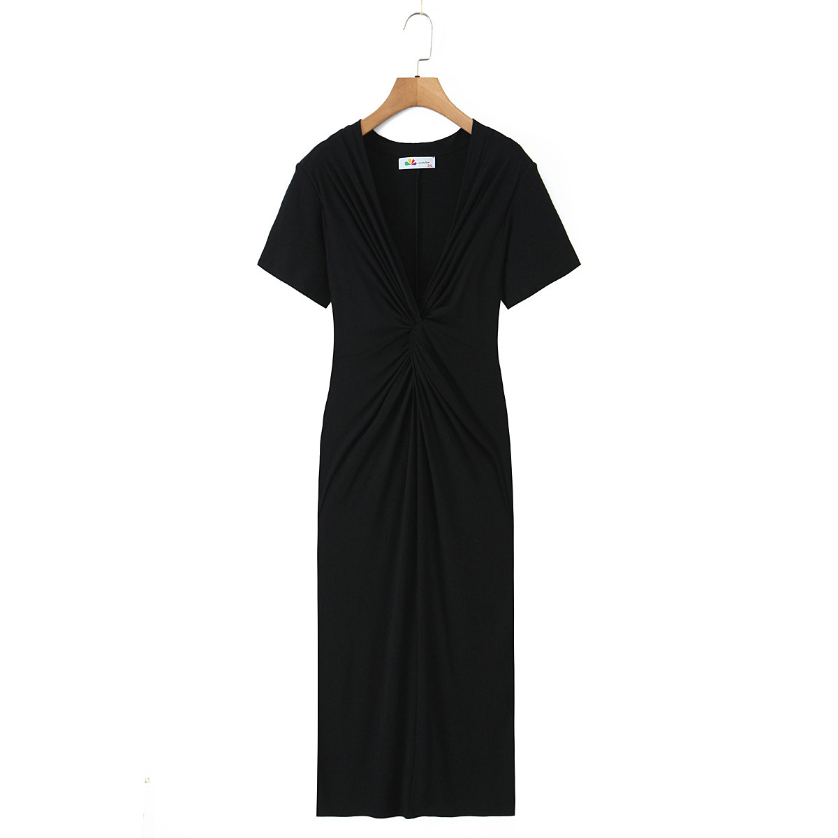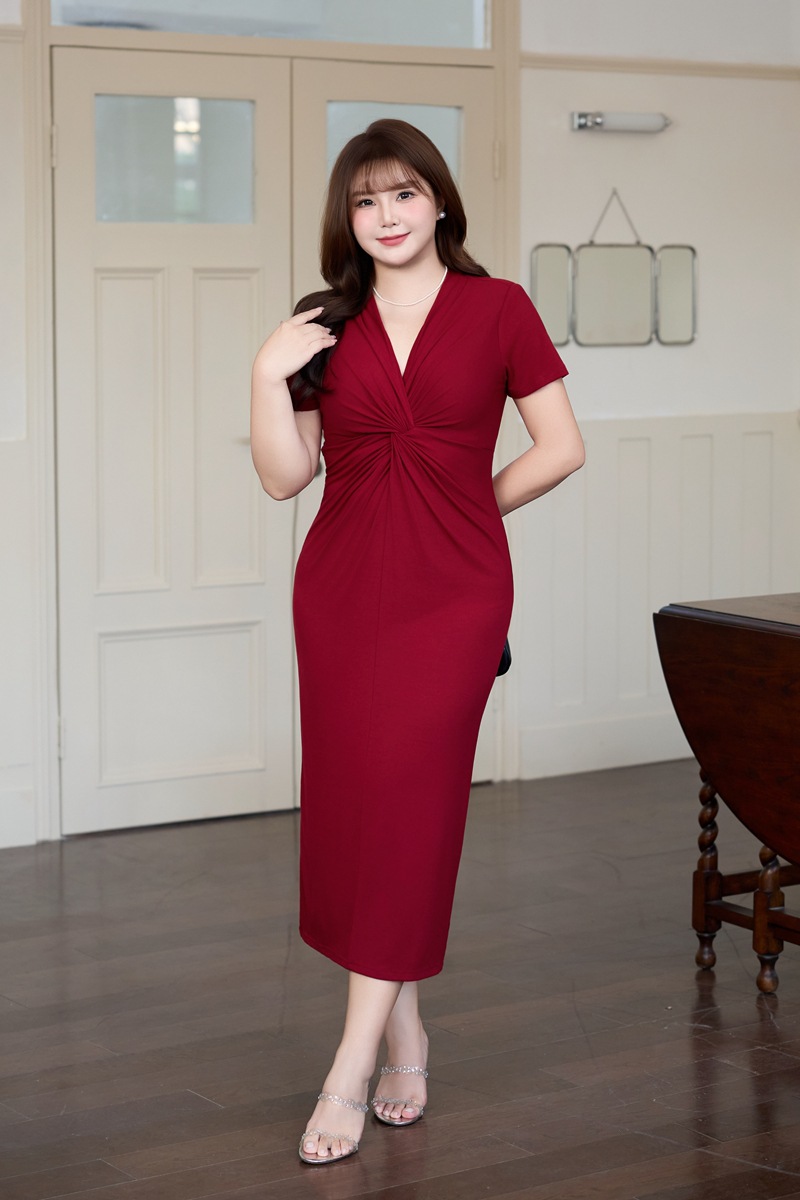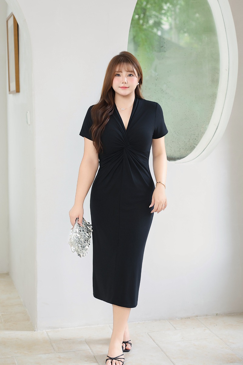 Красное платье Yujie с v-образным вырезом и разрезом на бедрах, с короткими рукавами, Runqi 9292, маленькое черное платье большого размера с вертикальным вырезом на талии