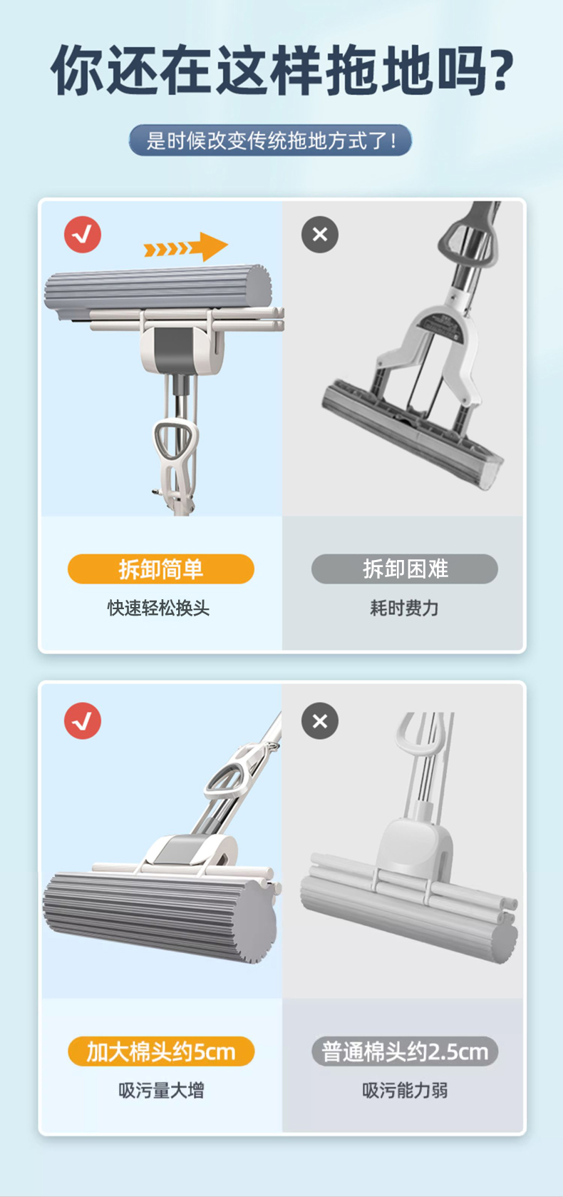 Большая впитывающая швабра для домашнего использования, волшебная швабра с впитывающей подушечкой, не требует ручной стирки, новая губчатая насадка для швабры на 2025 год.