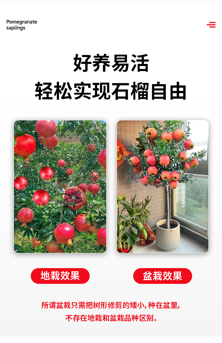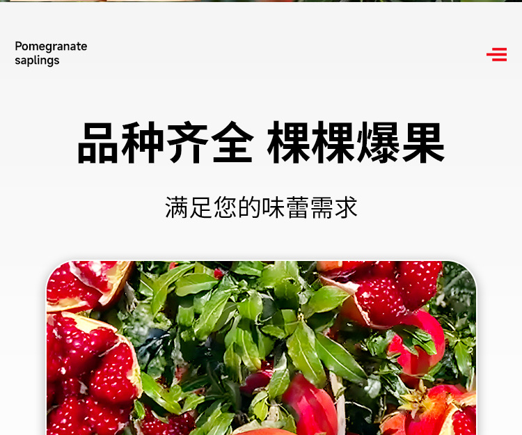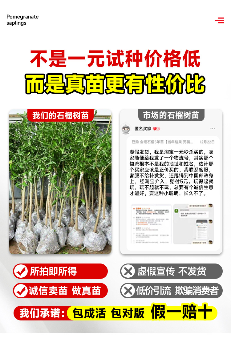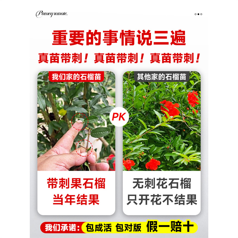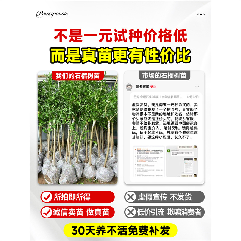 Рекомендуем рассаду 5-летнего срока, купи 1, получи 1 бесплатно [Примечания к сортам] Гарантируется мертвая рассада с почвой и ветками!; Тунисский мягкозерный гранат [5-летние растения дадут плоды в том же году] Мертвые растения будут компенсированы!; Гранат Хуали с мягкими семенами [5-летние растения дадут плоды в том же году] Если рассада умрет, мы компенсируем вам!; Черный жемчуг Мягкое семя Гранат [5-летние растения дадут плоды в том же году] Мертвые растения будут компенсированы!; Мягкозерновой гранат Дахунпао [5-летние саженцы дадут плоды в том же году] Мертвые саженцы будут компенсированы!; Красный мягкозерный гранат Мэньян (5-летние растения дадут плоды в том же году) компенсирует мертвые растения.; Мягкозернистый гранат Линтонг [5-летние саженцы дадут плоды в том же году] Гарантированная компенсация за мертвые саженцы!; Тайшаньский красный гранат с мягкими семенами [5-летние саженцы дадут плоды в том же году] Мертвые саженцы будут компенсированы!; Саженцы 3-летние, в упаковке 2 шт. [Примечания к сортам] Мертвые саженцы гарантированы!; Саженцы 4-летние, в упаковке 2 шт. [Примечания к сортам] Мертвые саженцы гарантированы!; 6-летняя рассада имеет много ветвей и плодоносна. [Примечания к сорту] Гарантируется мертвый саженец!; 7-летние растения имеют много ветвей и плодоносят. [Примечания к сорту] Гарантия мертвых саженцев!; 8-летние саженцы имеют красивую форму и полны плодов. [Примечания к сорту] Гарантируется мертвый саженец!; Качественная рассада из 10-летней рассады дает результат [Примечания к сорту] Мертвые саженцы гарантированы!; Рекомендуемая посадка 12-летней рассады в саду [приводит к плодотворным результатам] мертвые растения гарантированы!; 15-летняя рассадная вилла [Сбор садовой рассады] Владелец рекомендует компенсацию за мертвую рассаду!; 5cm толстых (полных результатов) разнообразных заметок