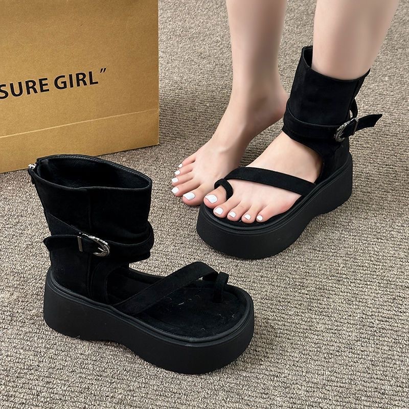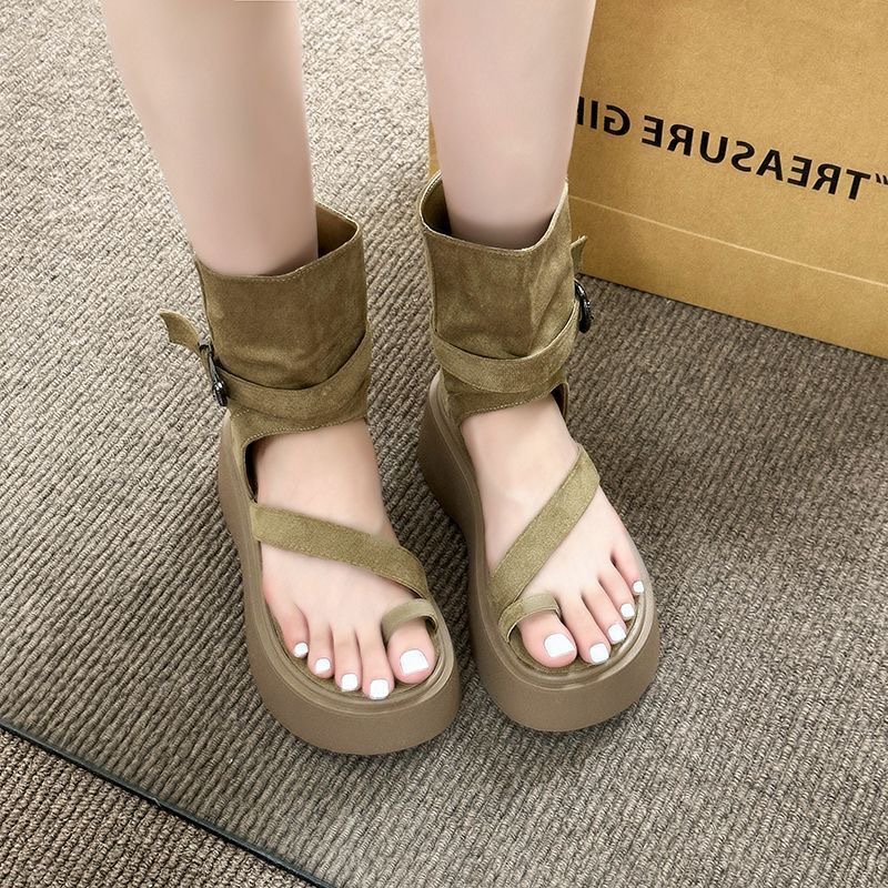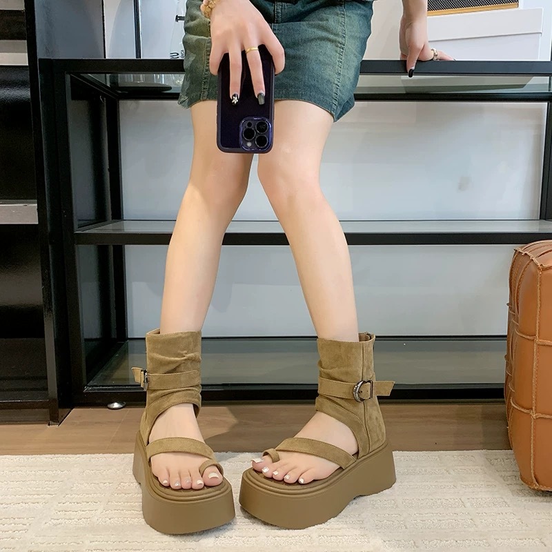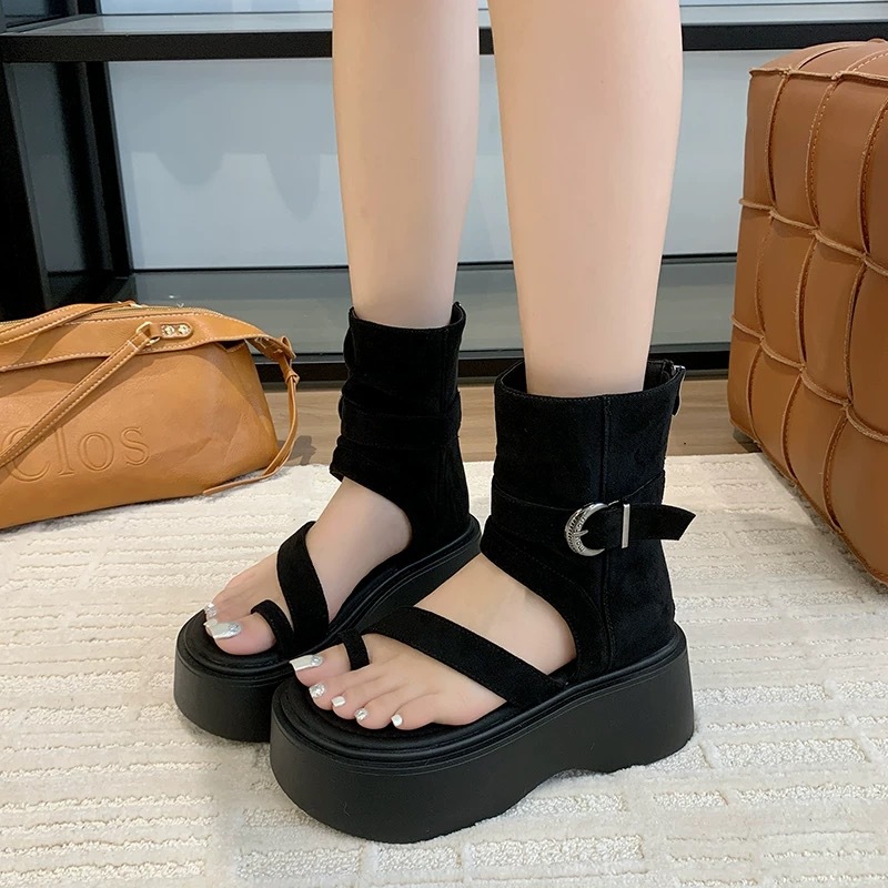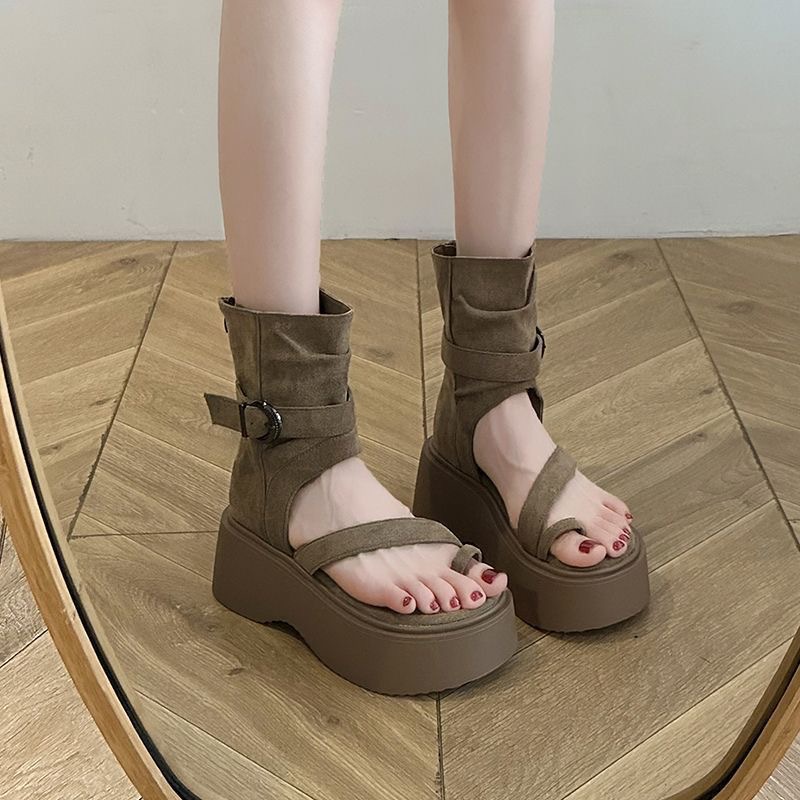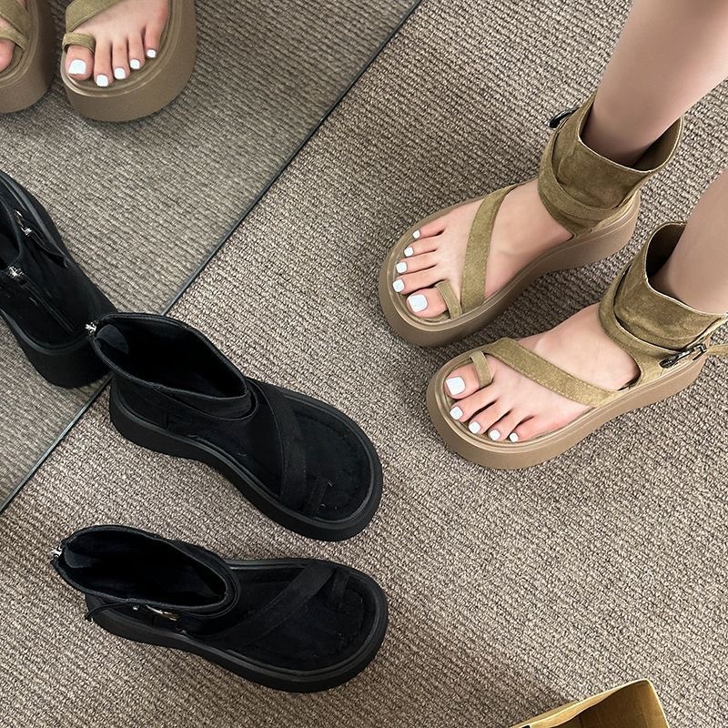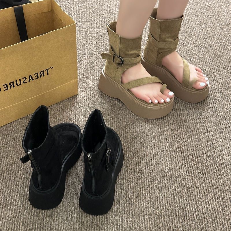 Ретро-сандалии на толстой подошве для женщин, лето 2025, новая мода, сандалии-слипоны с высоким верхом и увеличенной задней молнией, короткие сапоги