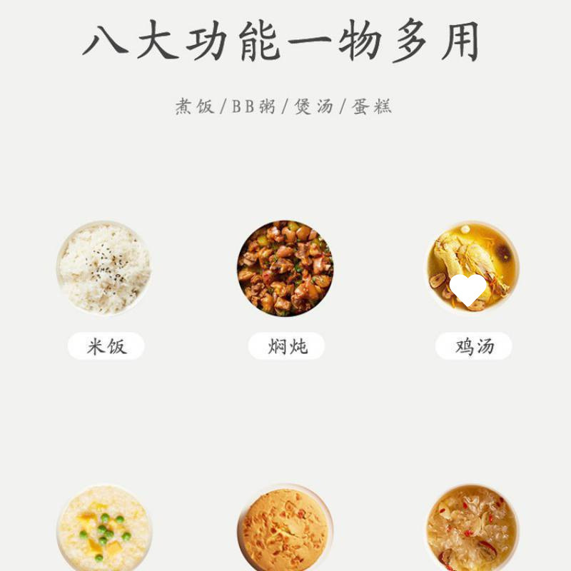 Механическая версия объемом 1,2 л с прозрачной верхней крышкой, рассчитанная на 1-2 человека. ☆ ♢; 2. Керамическая белая утолщенная внутренняя чаша объемом 5 л — восемь функций — подходит для 1–4 человек.☆♢; 2. Керамический белый сепаратор для рисового супа на 5 л — полезный и с низким содержанием сахара — рассчитан на 1–4 человек.☆♢; Сэкономьте 35 [2,5 рисоварка + 18-литровая электрическая пароварка]☆♢; 2,5 л, обновленная керамическая глазурь Taobao, на 1-4 человек [оригинальная экспортная модель]☆♢; Механическая версия объемом 2,5 л с утолщенным внутренним баком на 1-4 человек.☆♢; Обновленный голографический сенсорный пульт дистанционного управления емкостью 1,8 л с шестью функциями, подходит для 1–3 человек.☆♢; Улучшенная керамическая глазурь умной версии объемом 1,2 л для 1-2 человек. ☆ ♢; 1,2 л умная версия, резервирование и таймер, подходит для 1-2 человек☆♢; Механическая версия объемом 1,2 л подходит для 1-2 человек.☆♢; По умолчанию будет отправлена обновленная керамическая глазурь Tao Bai емкостью 2,5 л.☆♢; 2,5 л розовый порошок, усовершенствованная керамическая глазурь, на 1-4 человек [оригинальная экспортная модель]☆♢; 2,5 л, цвет слоновой кости, усовершенствованная керамическая глазурь, на 1-4 человек [оригинальная экспортная модель]☆♢; 5 л Элегантная черная утолщенная подкладка, восемь функций, на 4–10 человек☆♢; Механическая версия объемом 1,2 л — улучшенная керамическая глазурь — вместимость 1–2 человек☆♢