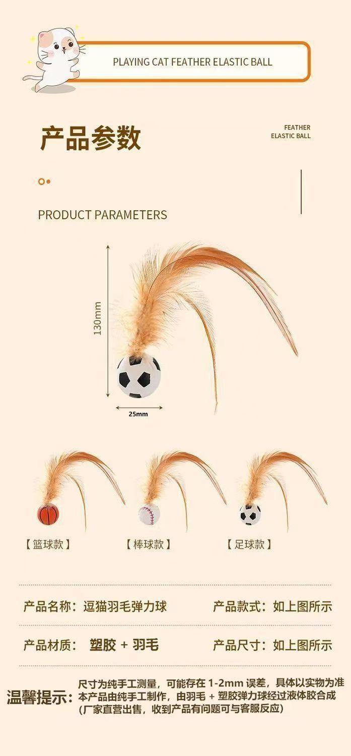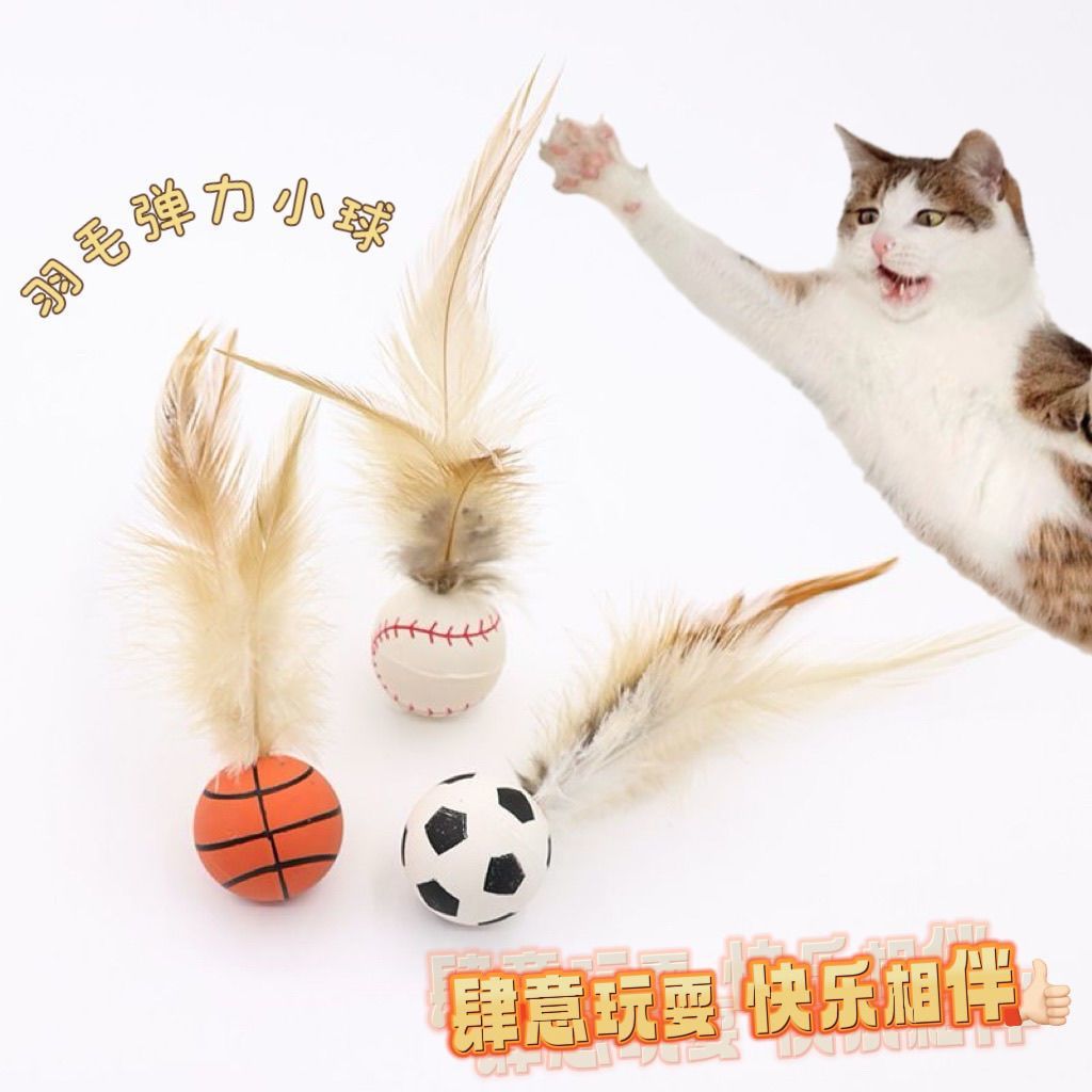 Эластичный мяч для кошек с перьями для прорезывания зубов, развлечение для самостоятельного развлечения и облегчение скуки, игрушка для кошек, производитель товаров для домашних животных, оптовая продажа