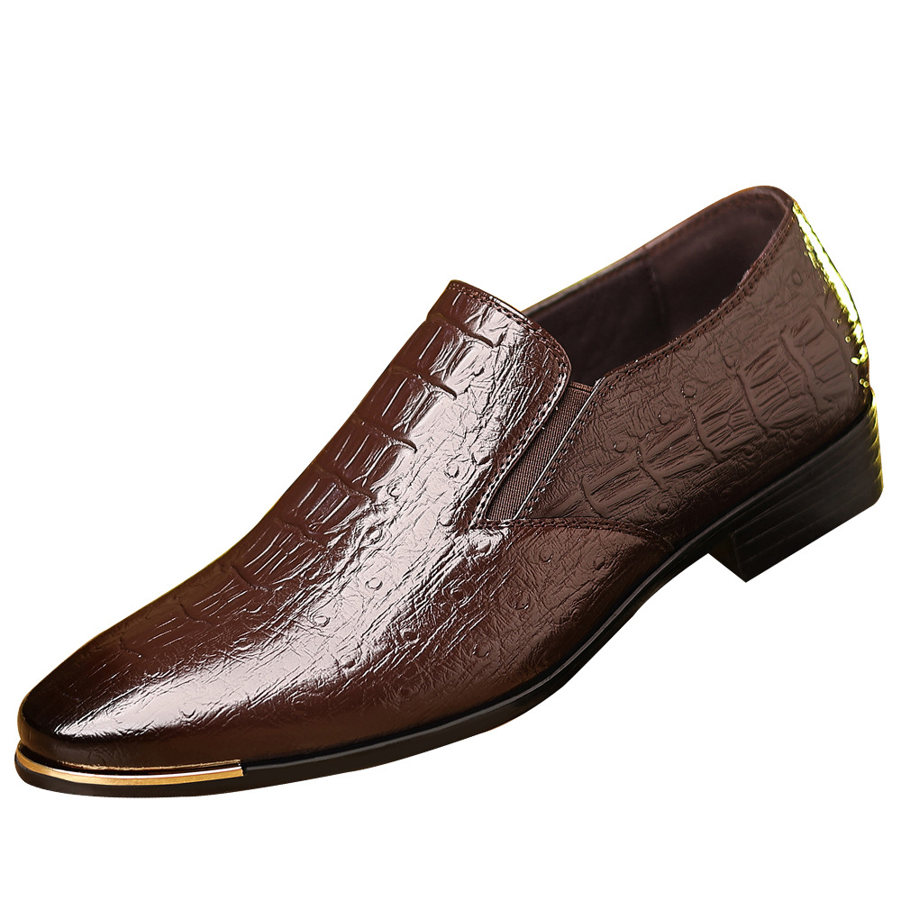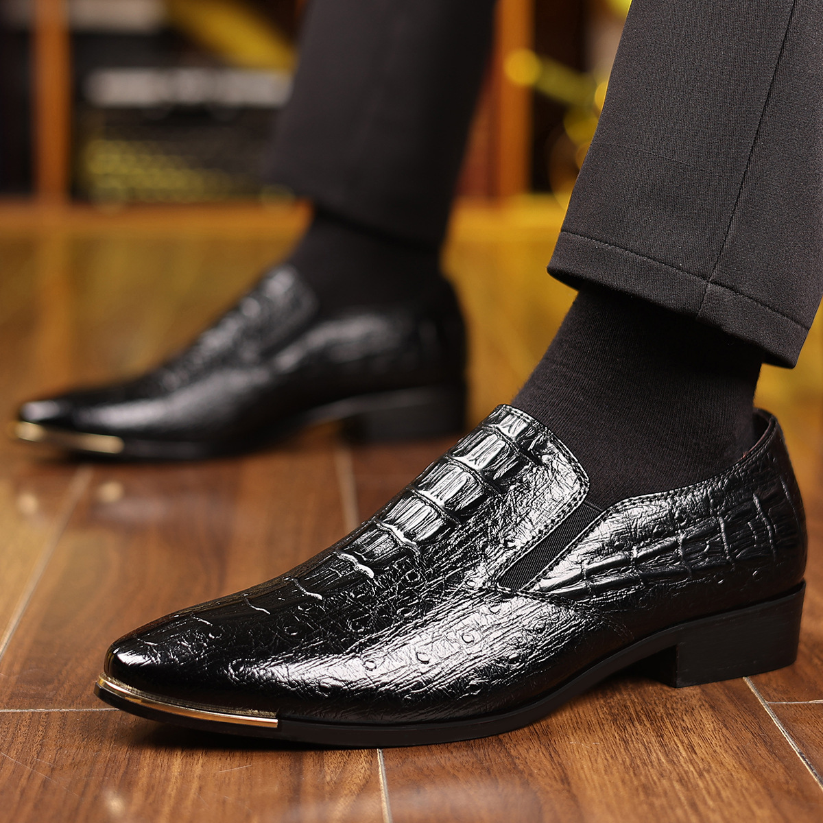 Мужские кожаные туфли для делового стиля с крокодиловым принтом, высококачественные, новые, британский стиль, заостренный носок, без шнуровки, для трансграничной торговли.