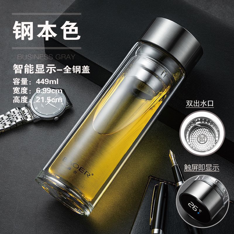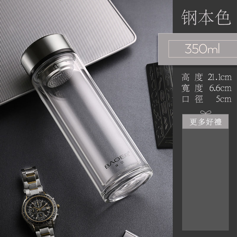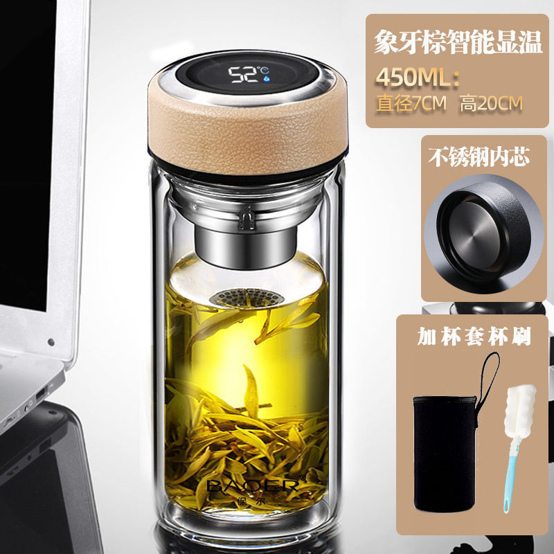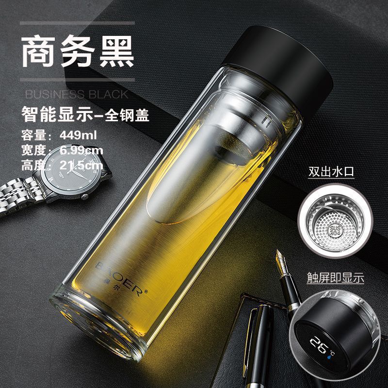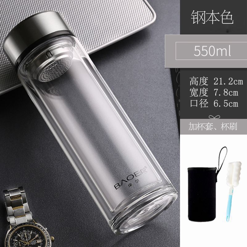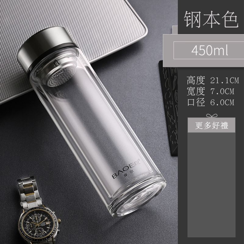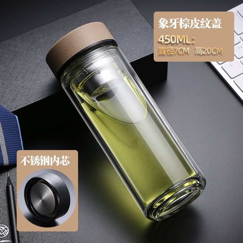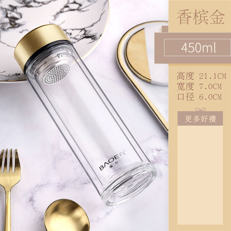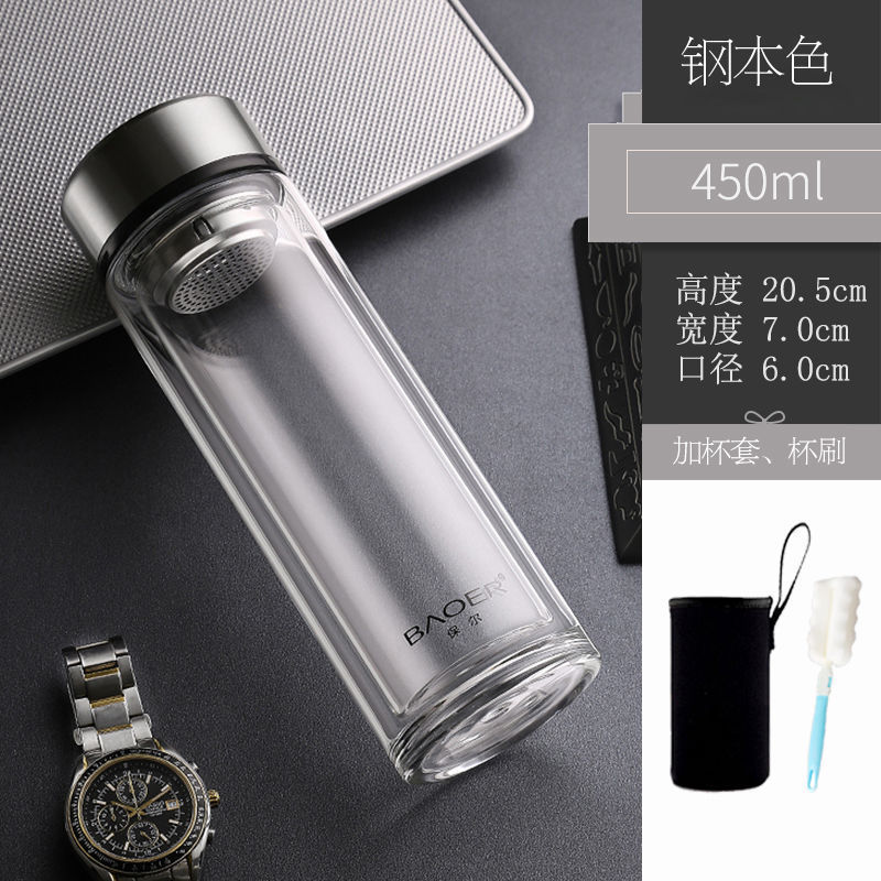Двухслойная стеклянная чашка Paul для мужчин и женщин, утолщенная портативная крышка, изолированная чашка для воды, фильтр, бытовая чашка для чая