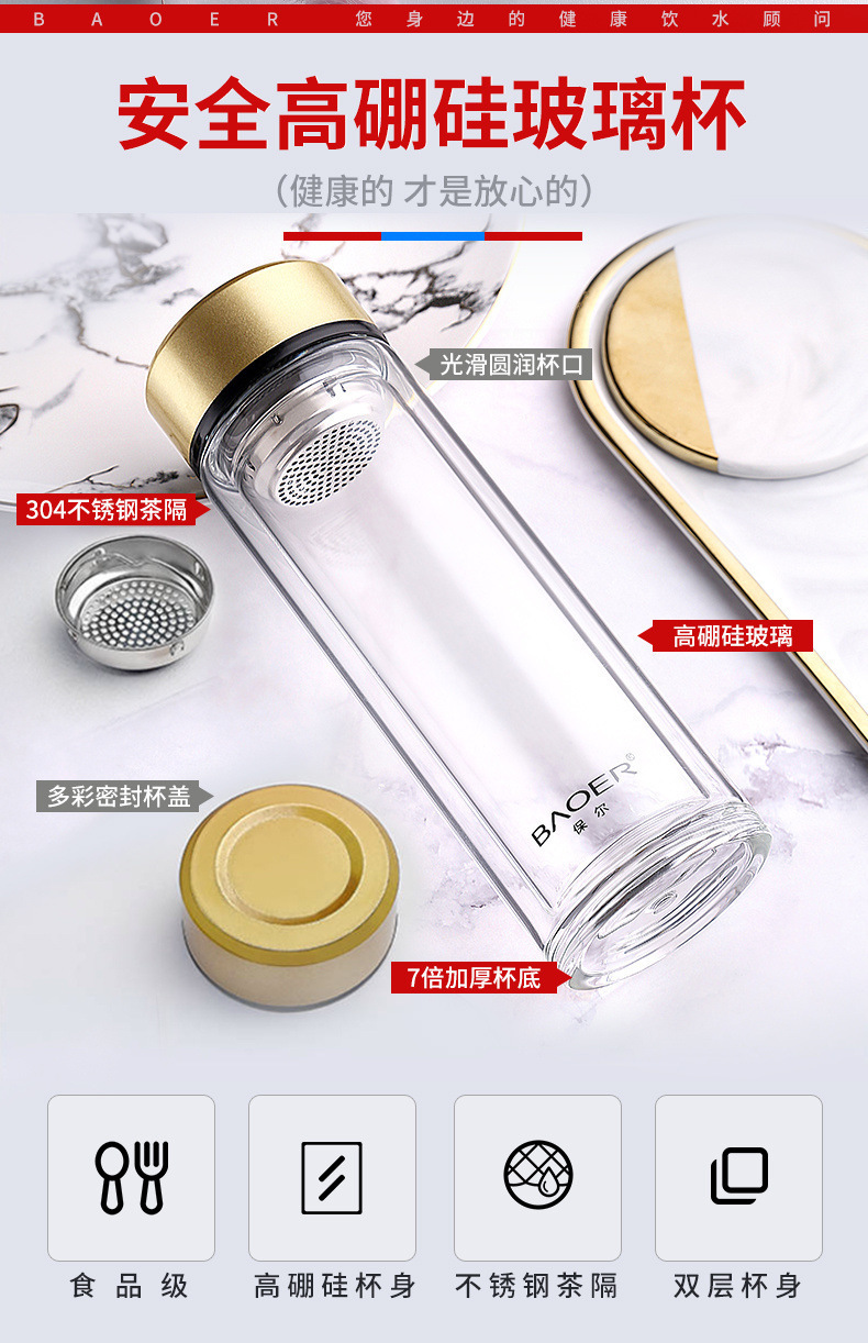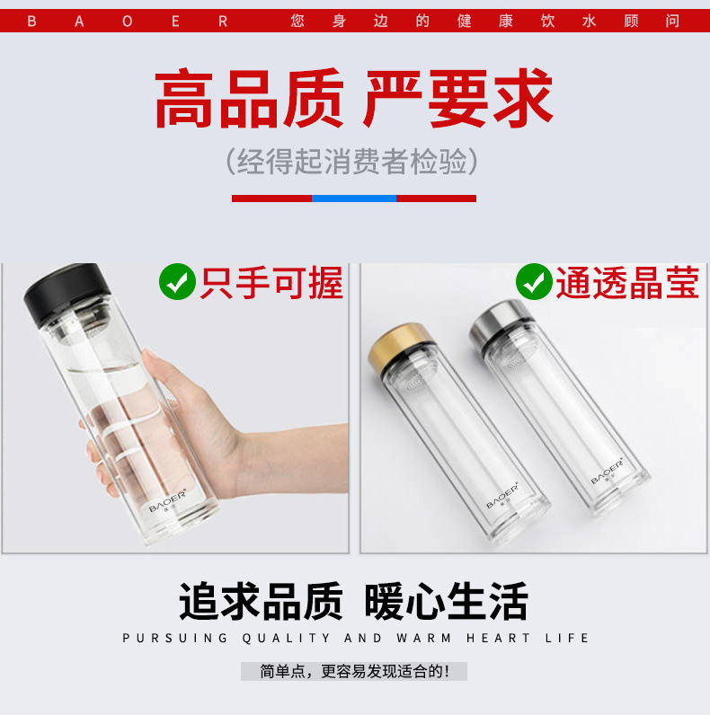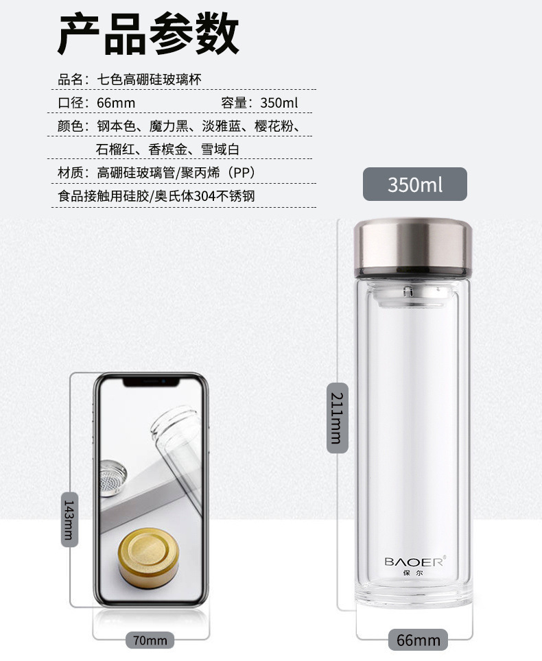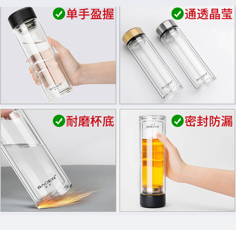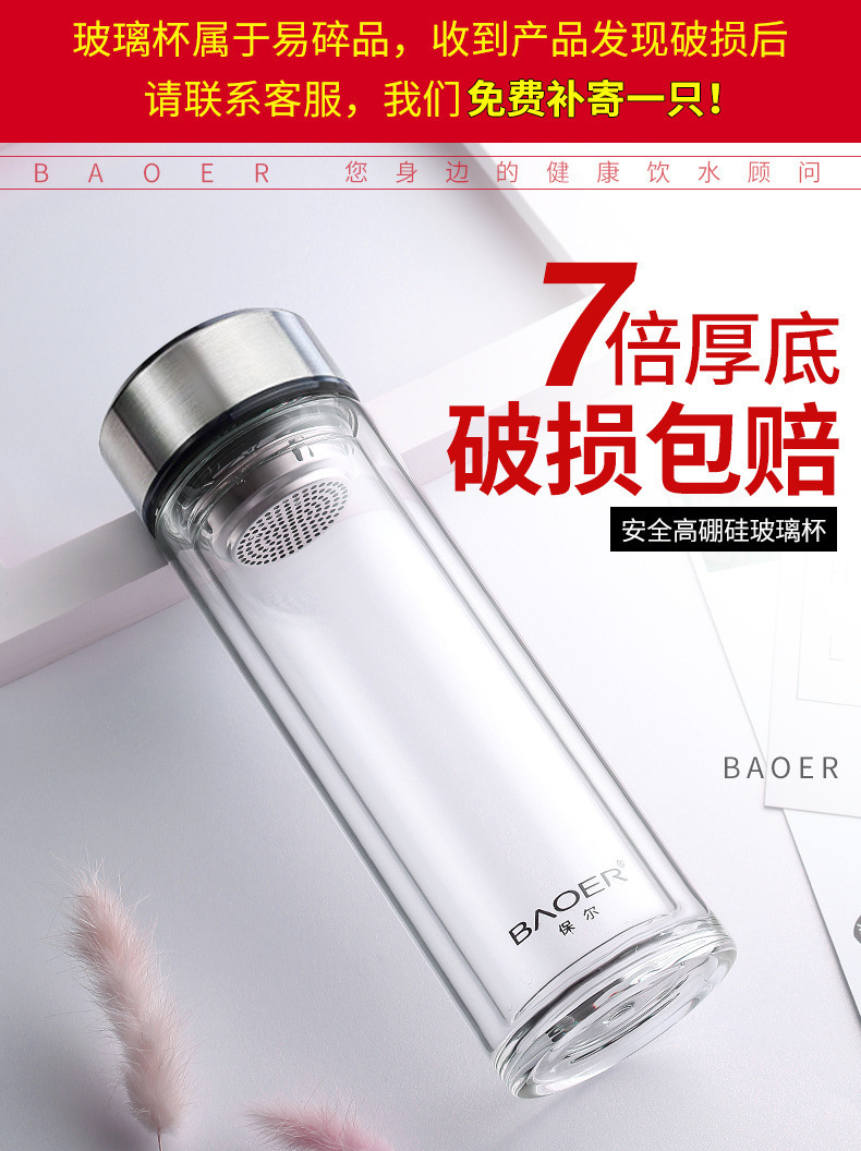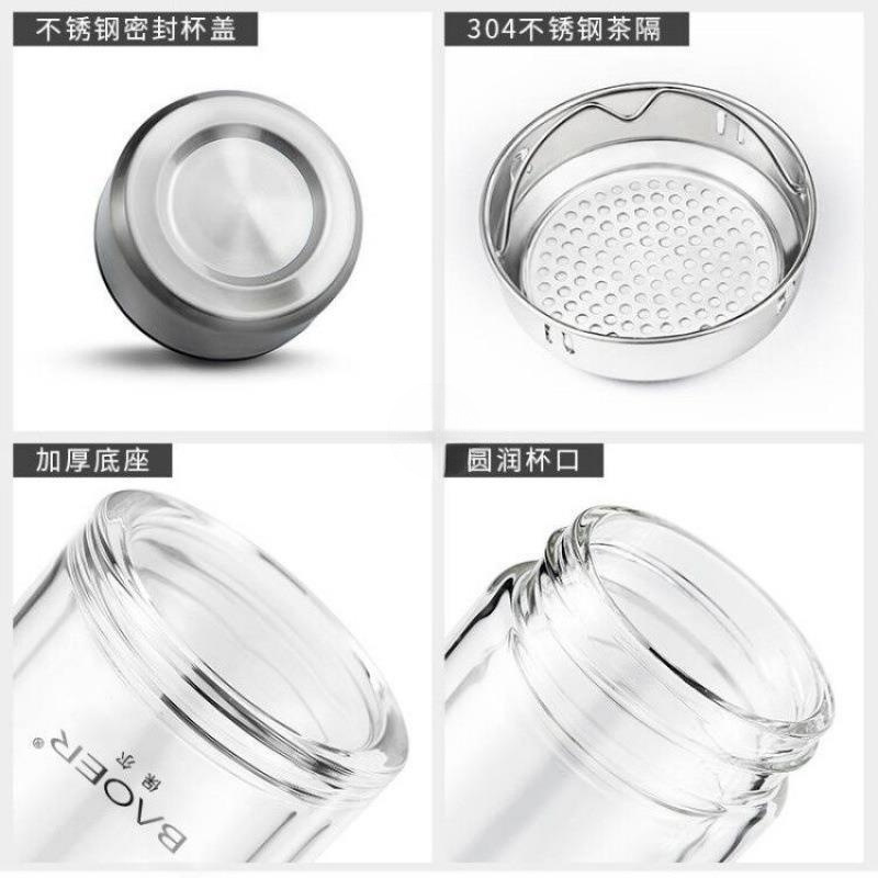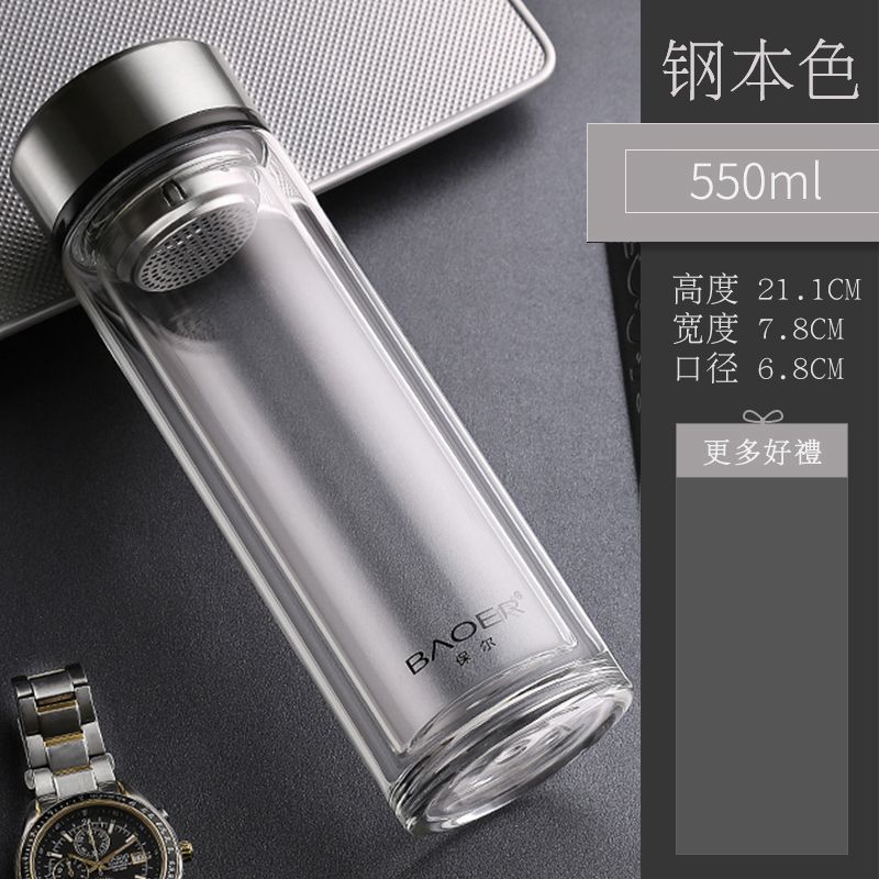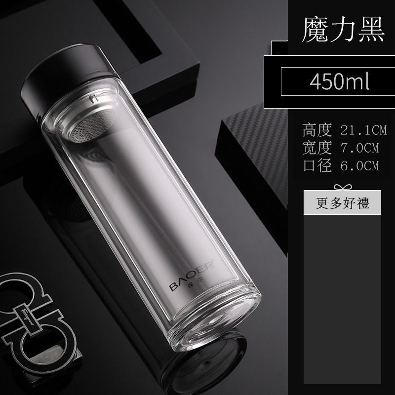 Двухслойная стеклянная чашка Paul для мужчин и женщин, утолщенная портативная крышка, изолированная чашка для воды, фильтр, бытовая чашка для чая
