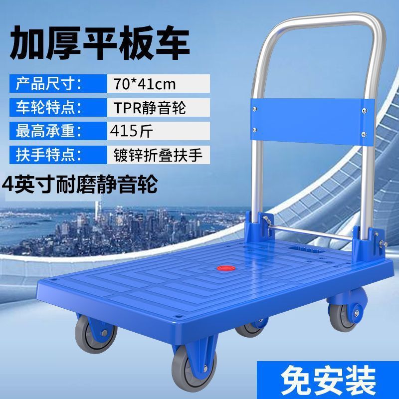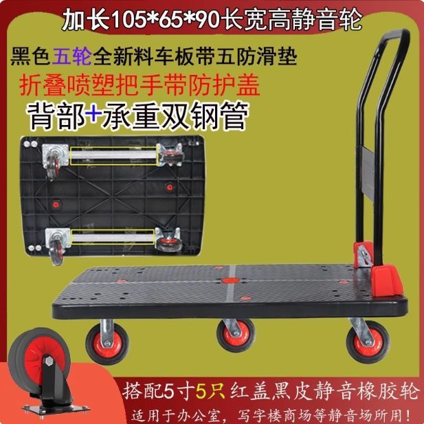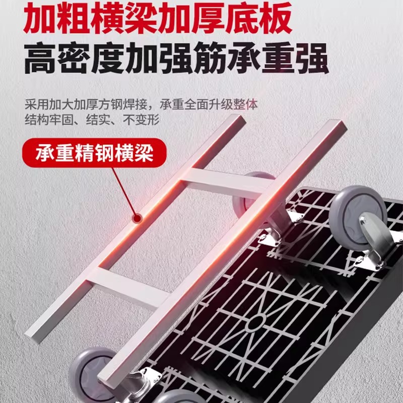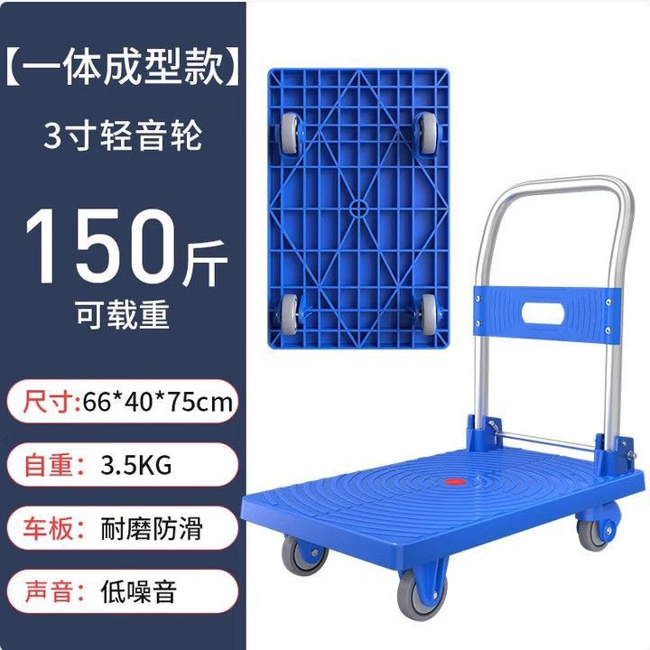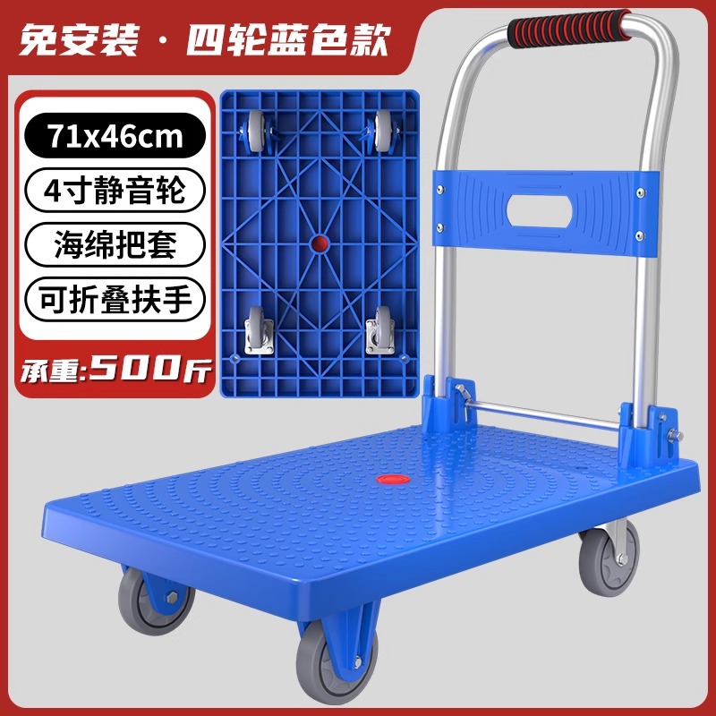 Складная тележка, плоская тележка для перевозки товаров, бытовая портативная тележка, ручная тележка, бесшумный четырехколесный небольшой прицеп