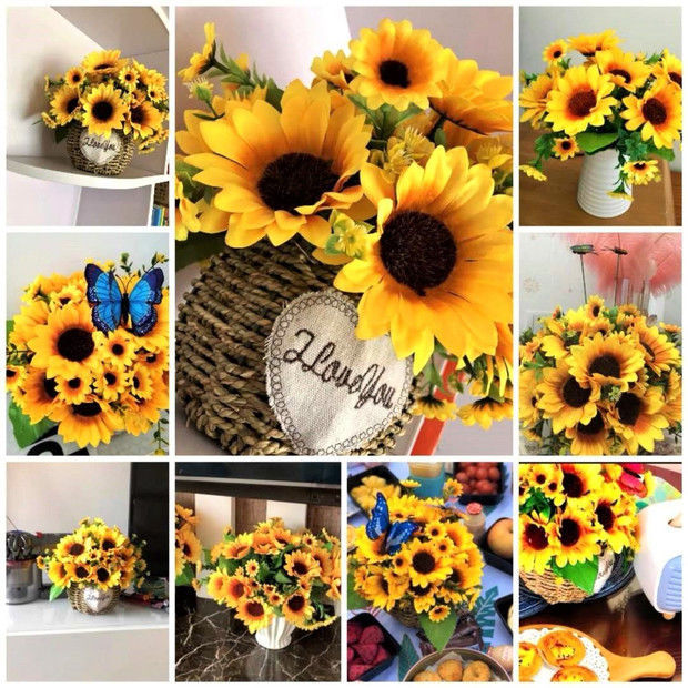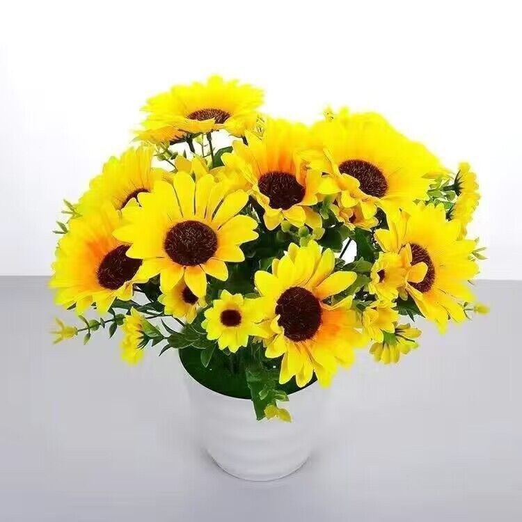 Букет подсолнухов, искусственный цветок, украшение из искусственных цветов, цветочный горшок для обеденного стола в гостиной, зеленое растение, украшение интерьера балкона