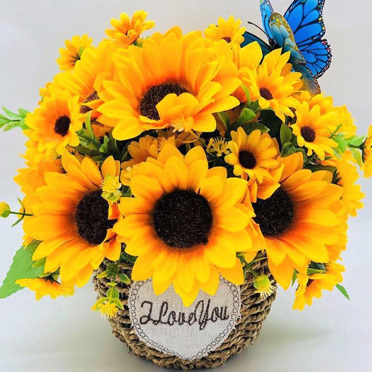 1 букет крупных подсолнухов; Большой подсолнух 2 пучка; Маленький подсолнух 2 пучка; Большой горшок + 3 пучка крупных подсолнухов.; Большой горшок + 3 пучка маленьких подсолнухов.; Эвкалипт + соломенный забор для высылки бабочек; Потос + соломенный забор для высылки бабочек; Антуриум + соломенный забор для высылки бабочек; Оранжевая ромашка + соломенный забор для отправки бабочек; Маленький подсолнух + соломенный забор для отправки бабочек; Фиолетовая ромашка + соломенный забор для отправки бабочек; Красная ромашка + соломенный забор для отправки бабочек; Ромашки разных цветов + соломенный забор с бабочками; Большой подсолнух + соломенный забор + бабочка; Водная хризантема фиолетовая + соломенный забор для высылки бабочек; Водная хризантема розовая + соломенный забор с бабочками; Водная хризантема желтая + соломенный забор для высылки бабочек; Хризантема белой воды + соломенный забор для высылки бабочек; Розовый, желтый, синий и фиолетовый + соломенный забор для высылки бабочек; Набор соломенных корзин темно-синей розы; Голубая водная хризантема + соломенный забор для высылки бабочек; Набор соломенных корзин с розами светло-голубого цвета; Набор соломенных корзин с розовой розой; Набор соломенных корзин с красной розой; Красные фрукты + соломенный забор для отправки бабочек
