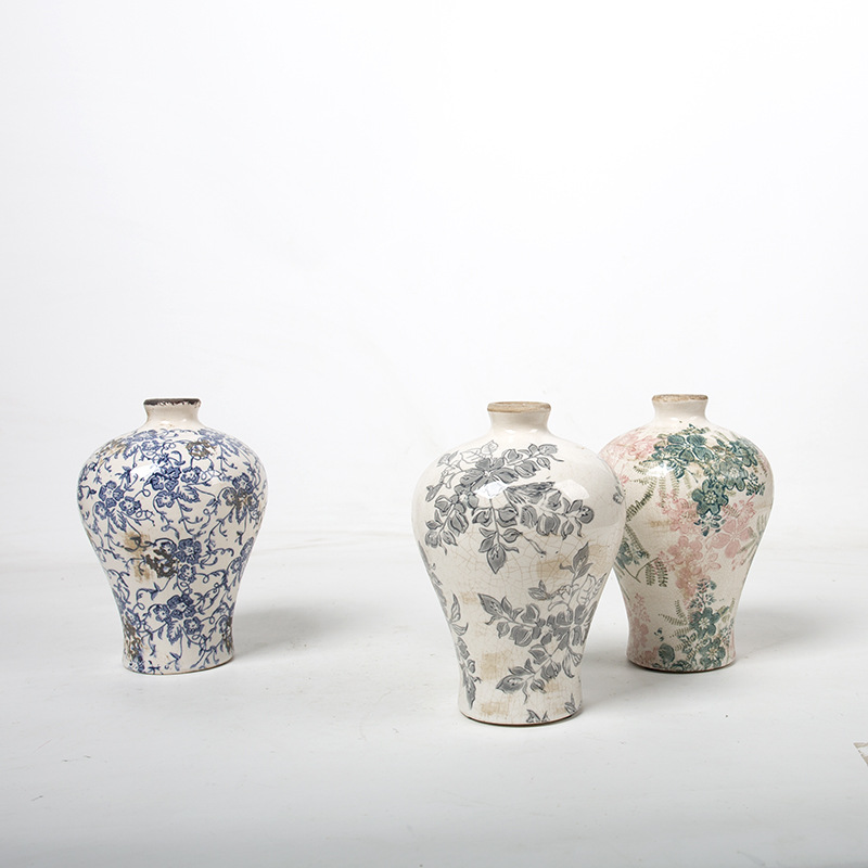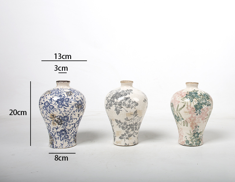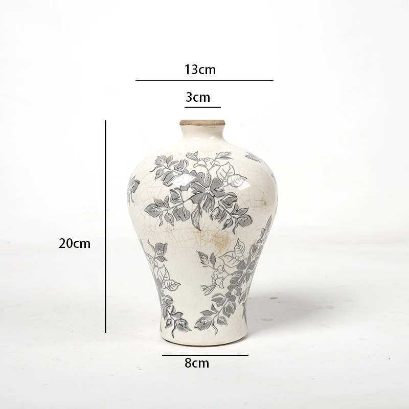 Ретро старая керамическая ваза с эффектом треснувшей глазури, искусственная ваза для сухоцветов, декор для гостиной и дома