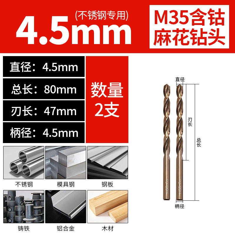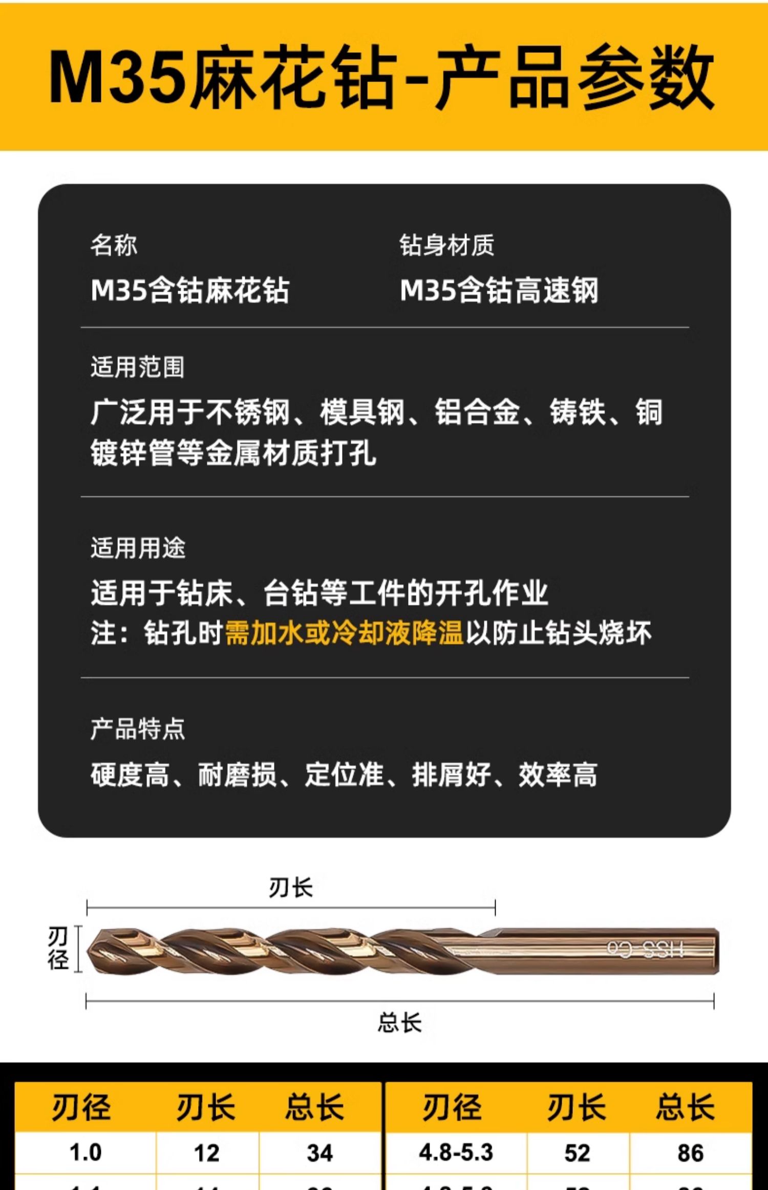 Спиральное сверло с содержанием кобальта, высокая твердость и прочность, сверло по железу, спиральное сверло с прямой ручкой из нержавеющей стали, стальной ротор