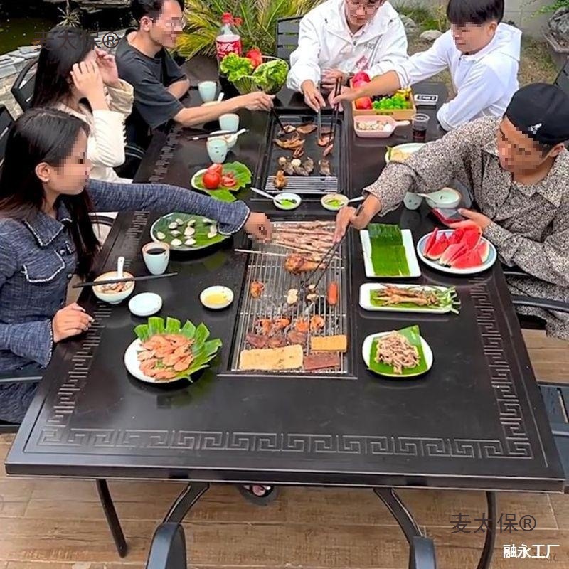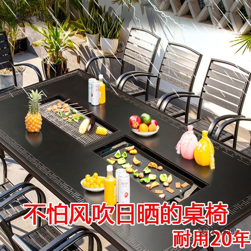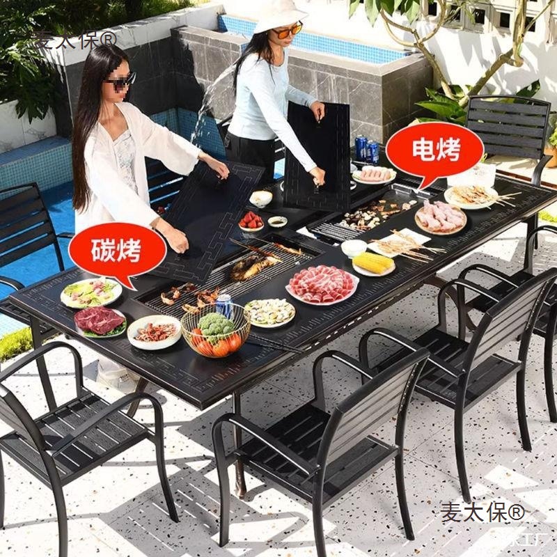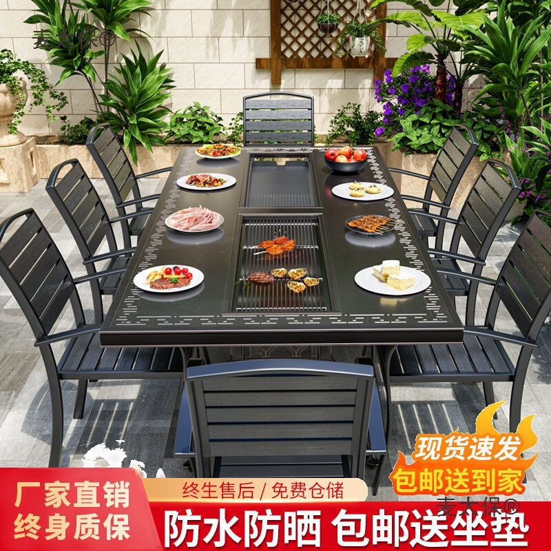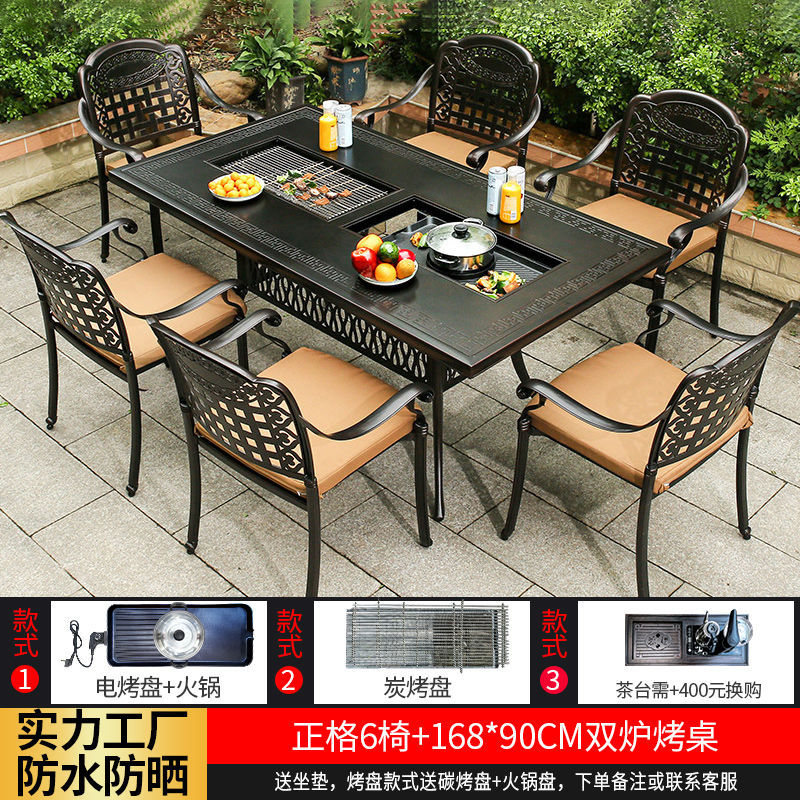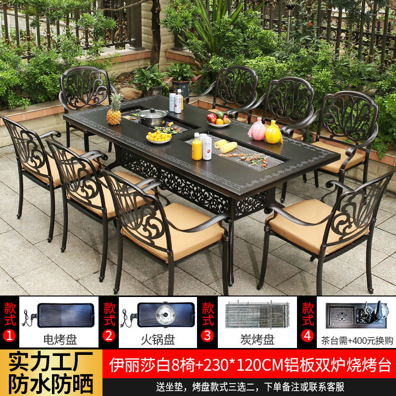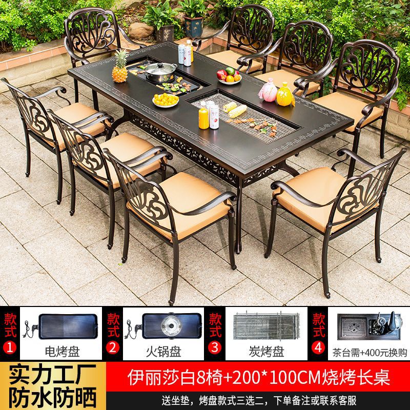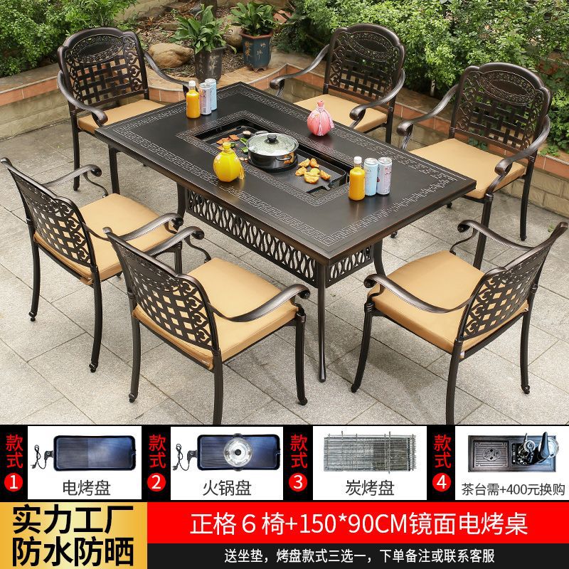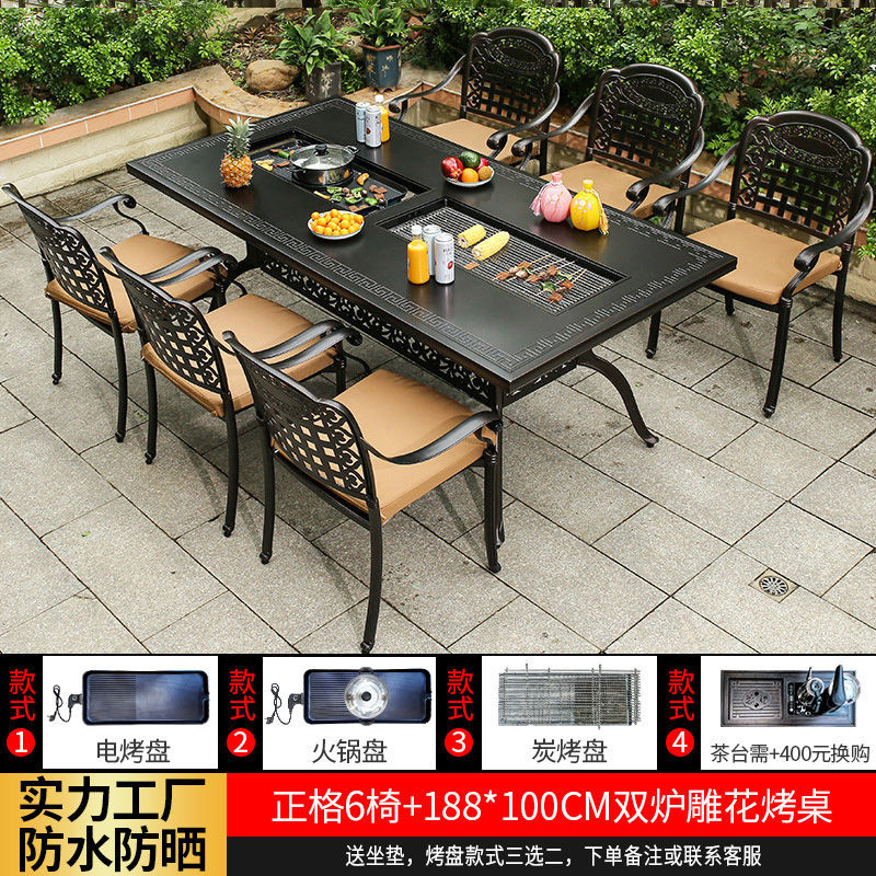 Столы и стулья для барбекю на открытом воздухе, вилла для отдыха на открытом воздухе, внутренний двор, открытый балкон, обеденный стол из литого алюминия, антикоррозийный электрический углерод, два пшеничных Taibo
