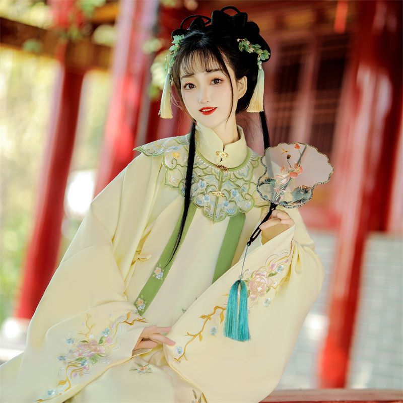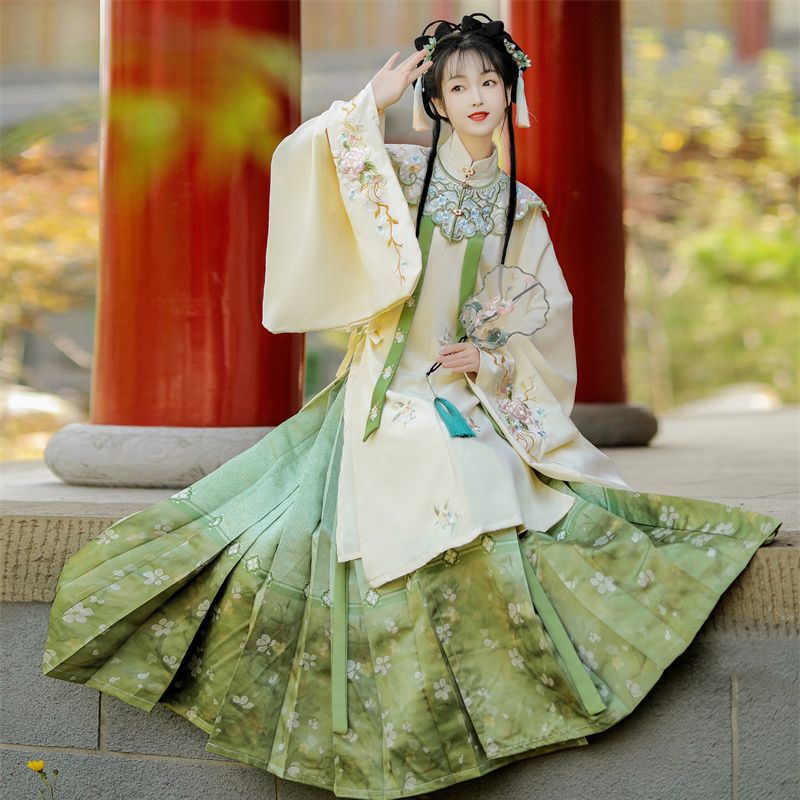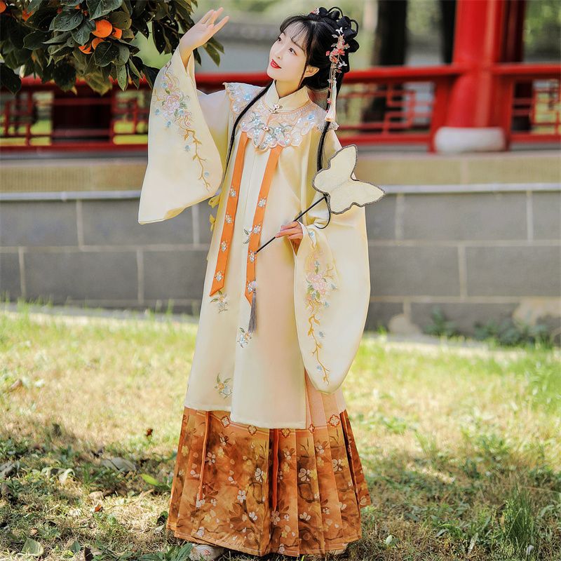 Оригинальная женская длинная рубашка с воротником-стойкой [Dream Pen] династии Мин и династии Хань с тяжелой вышивкой, юбка с облаком на плечах и лошадиной лицом, осенне-зимний новый стиль