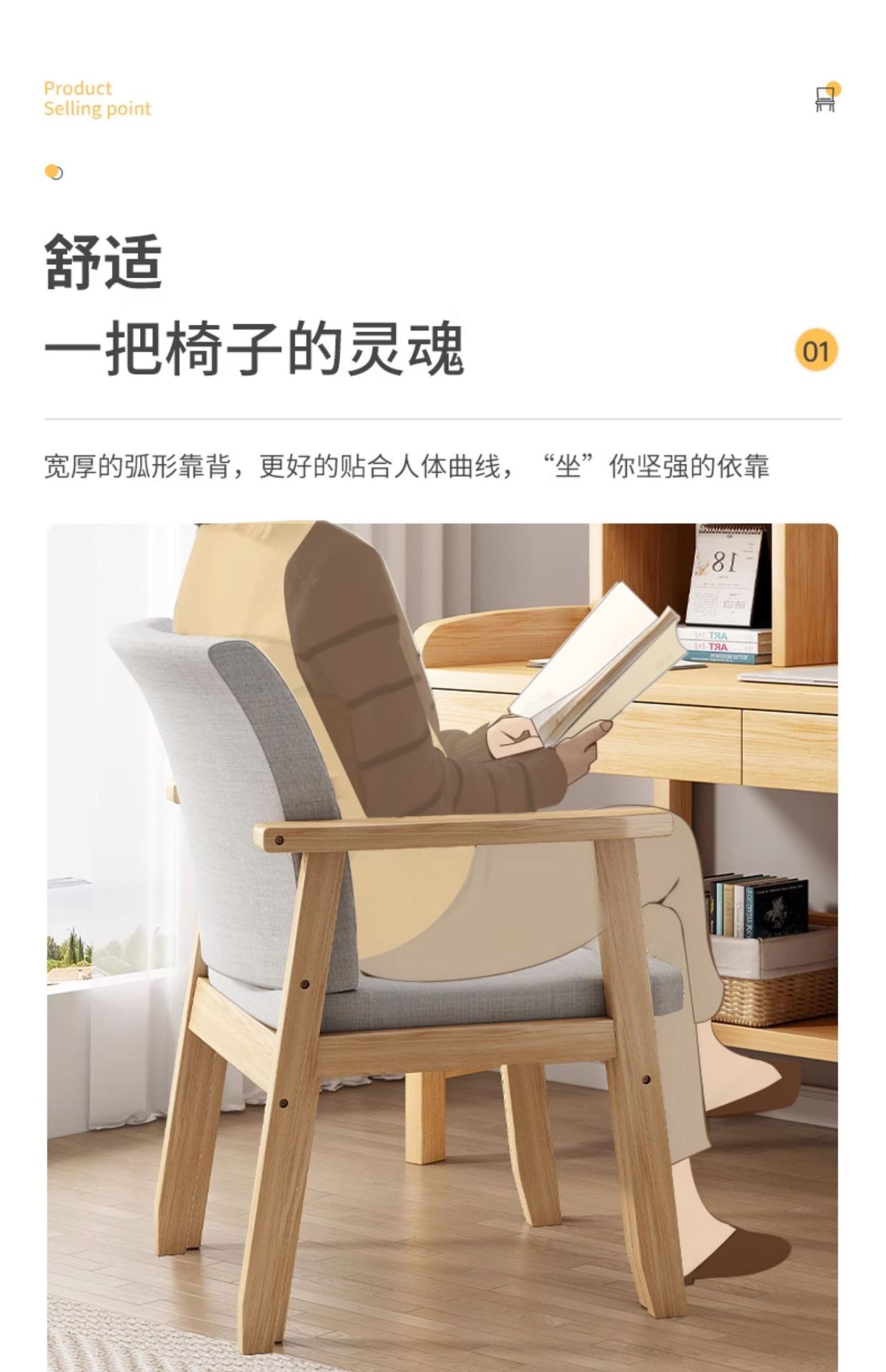 Стул из цельного дерева, стул для домашнего компьютера, офисное кресло для учебы, простой письменный стул, табурет, обеденный стул с удобной спинкой для длительного сидения.