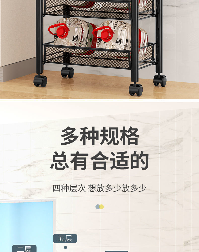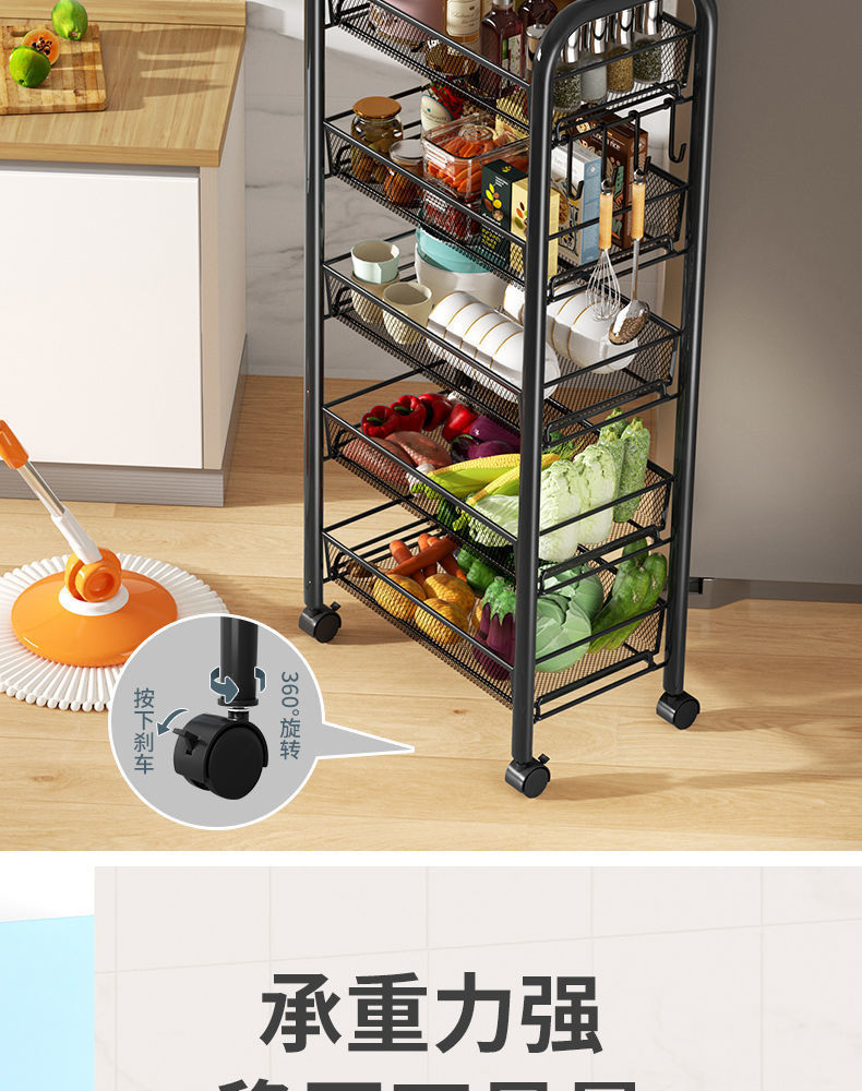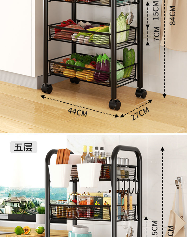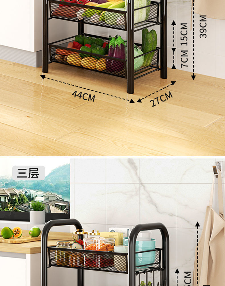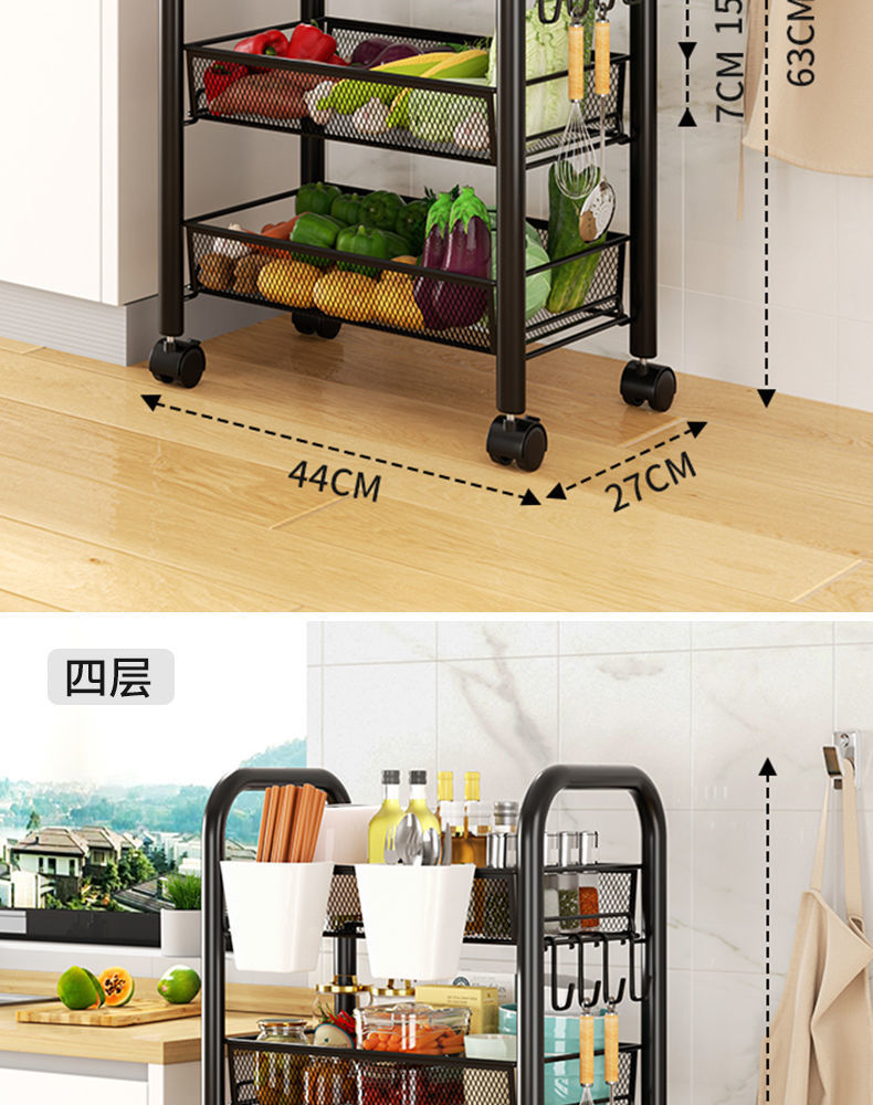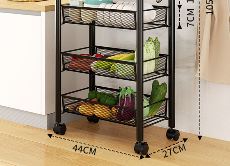 Кухонная стойка, напольная многофункциональная корзина для хранения овощей, стеллаж для хранения в ванной комнате с колесиками, многослойная бытовая тележка