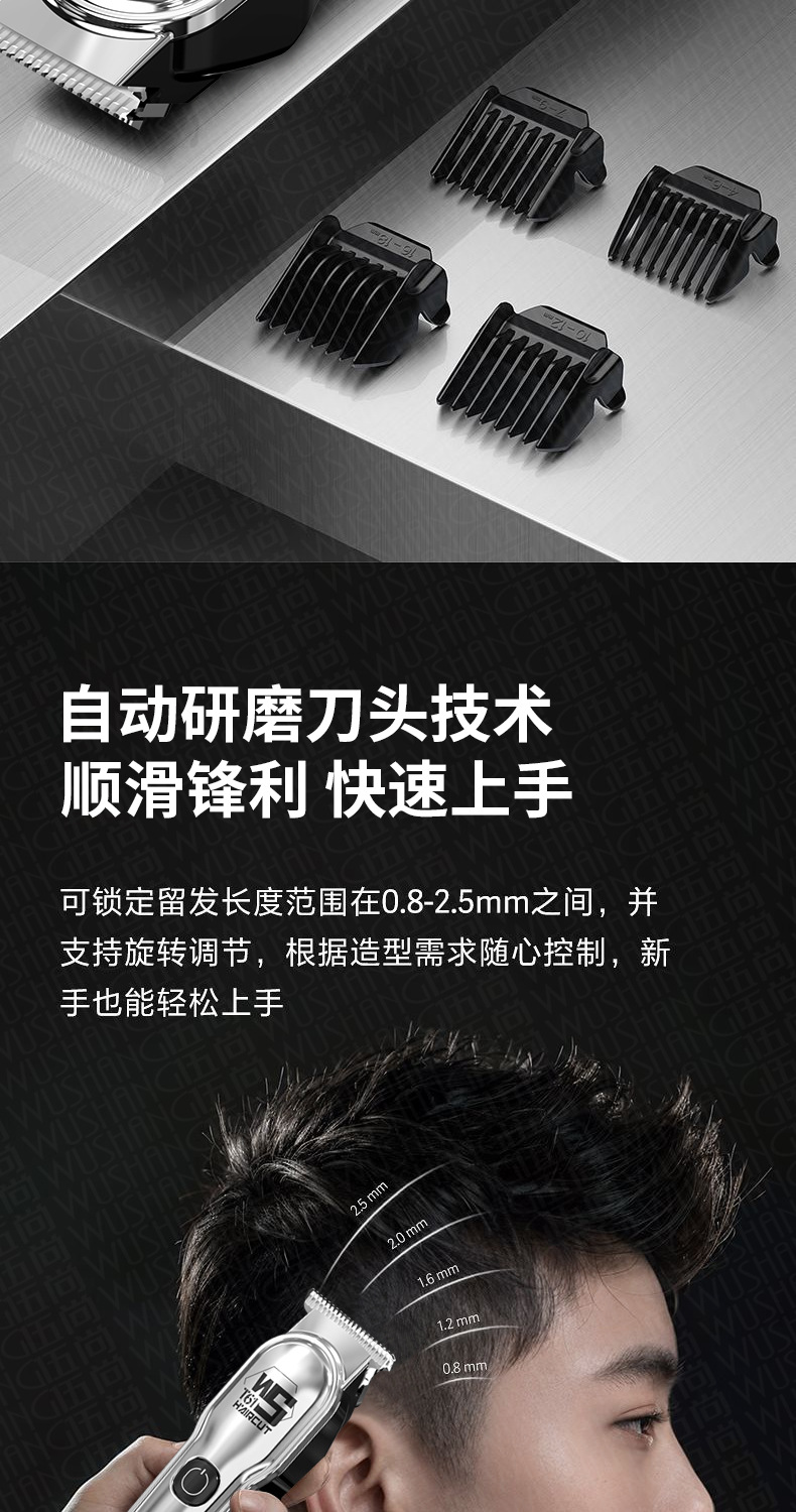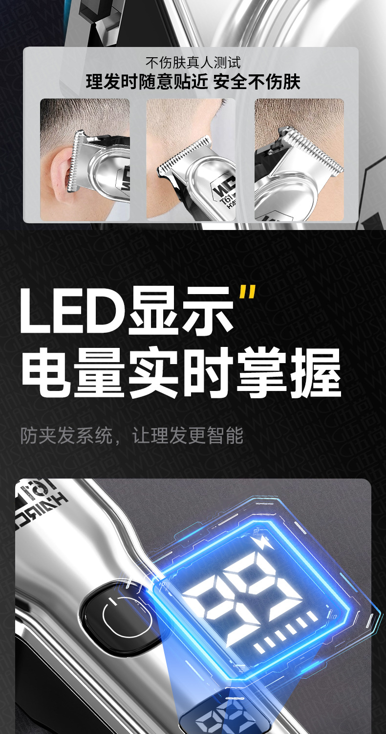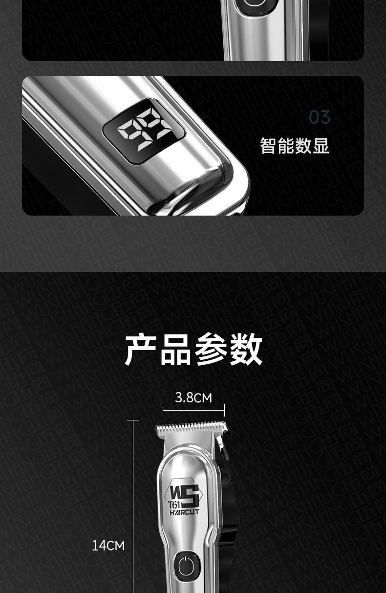 WS-T61 серебряная машинка для стрижки волос; Машинка для стрижки волос WS-T61 черная