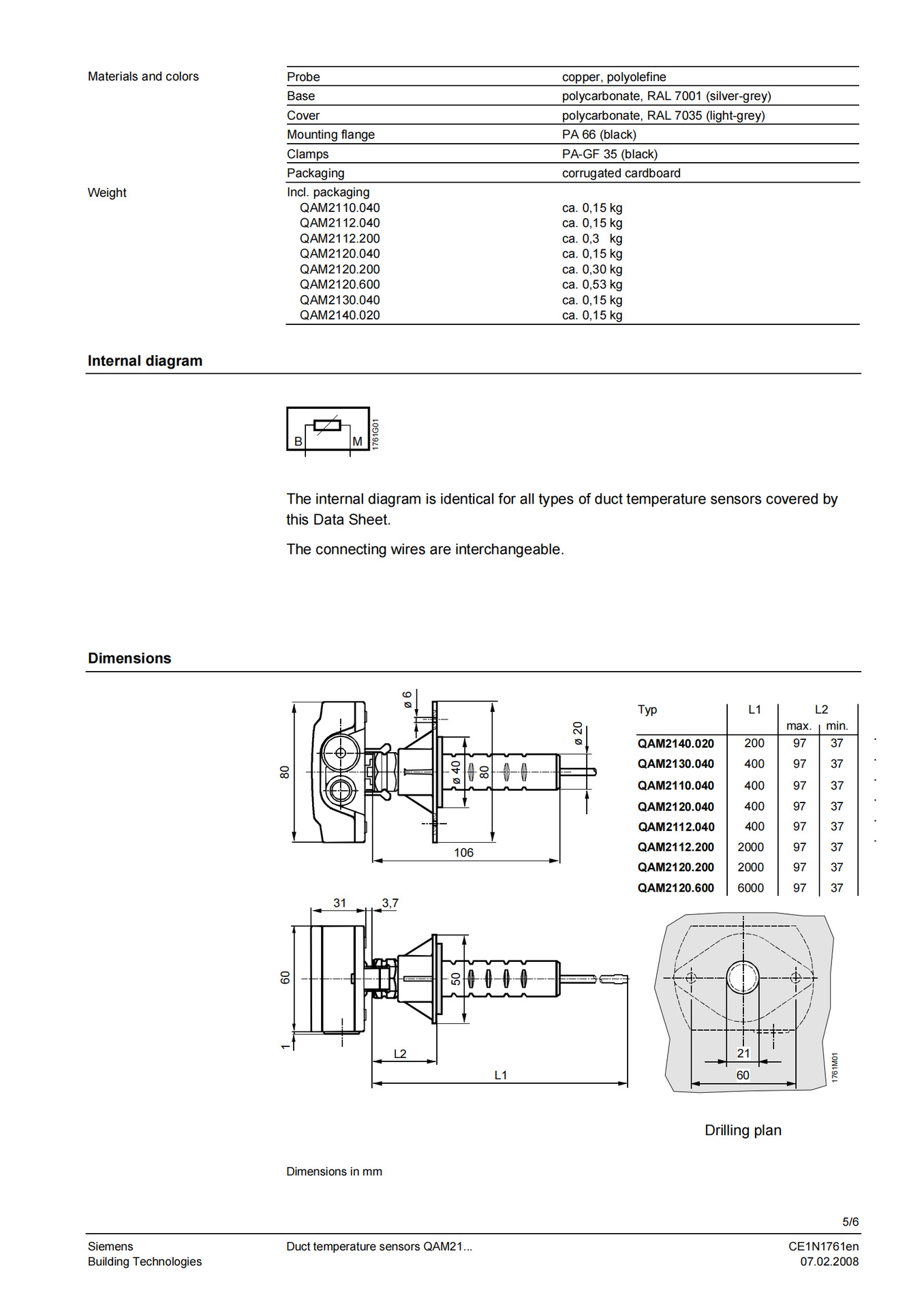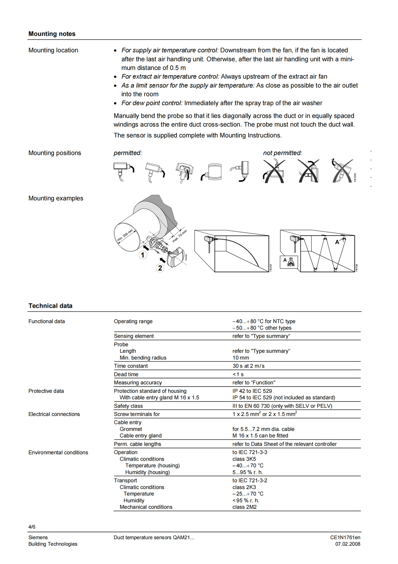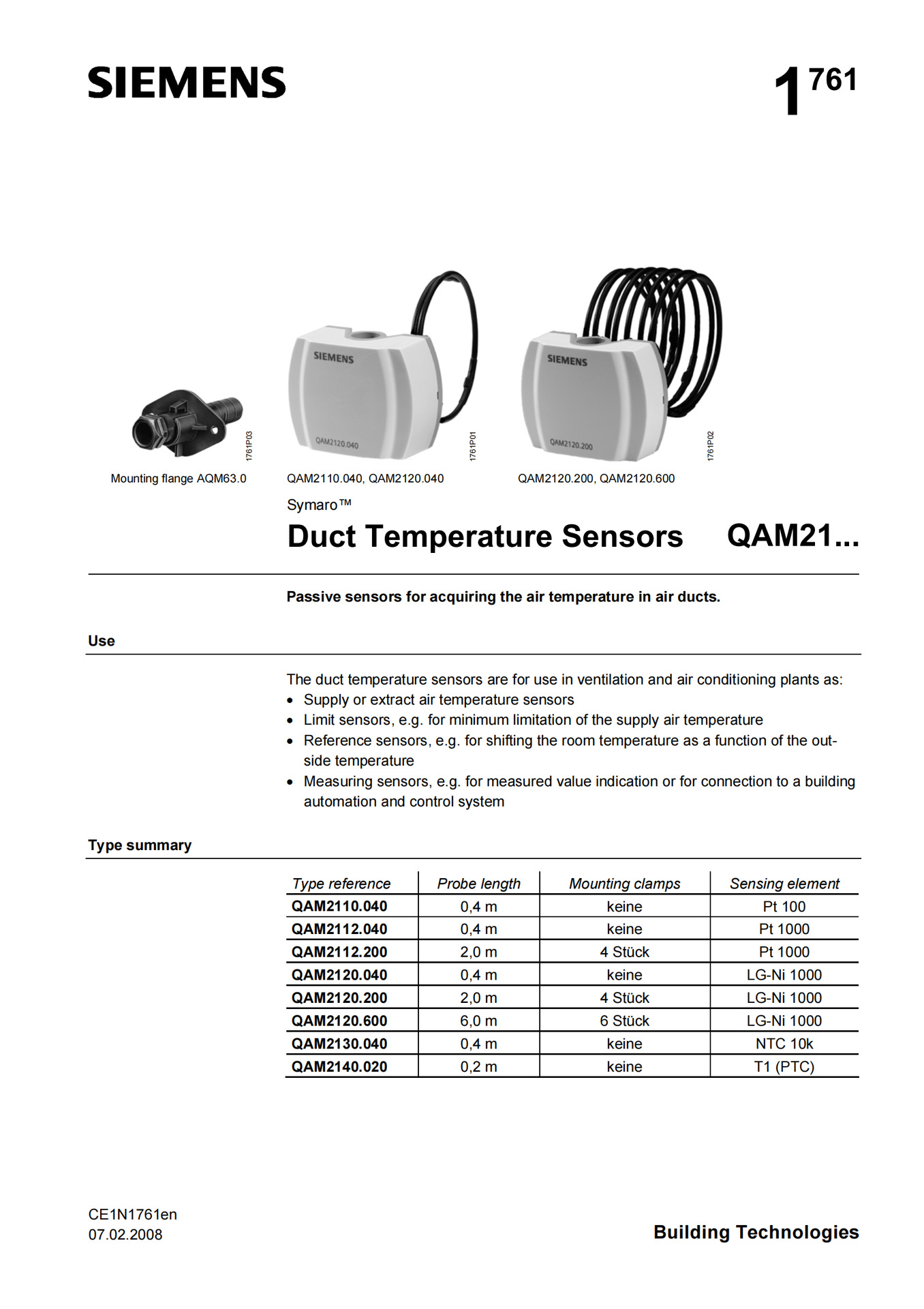 SIEMENS Siemens QAM2161.040QAM2171.040 датчик температуры воздуховода QAM2120.040