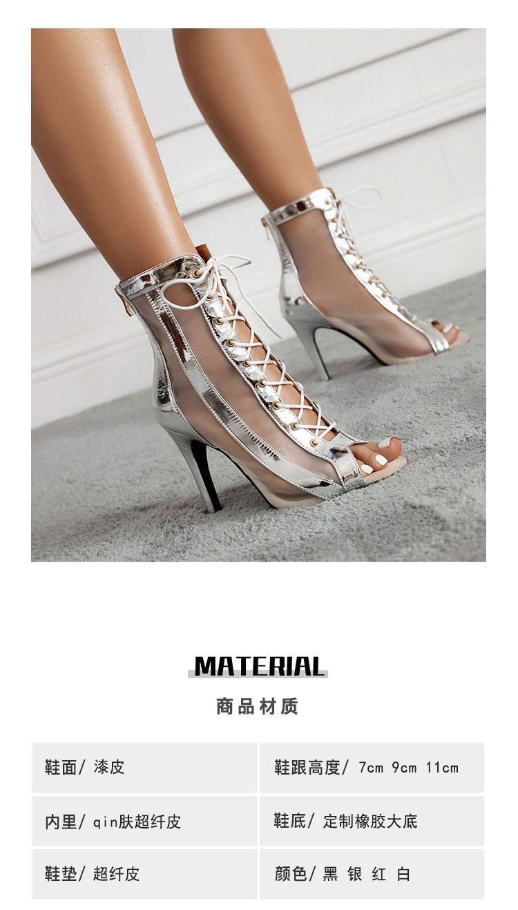 Туфли для джазовых танцев с серебряным ремешком в виде рыбьего рта, сетчатые дышащие босоножки на шпильке с открытым носком, женские танцевальные туфли на высоком каблуке