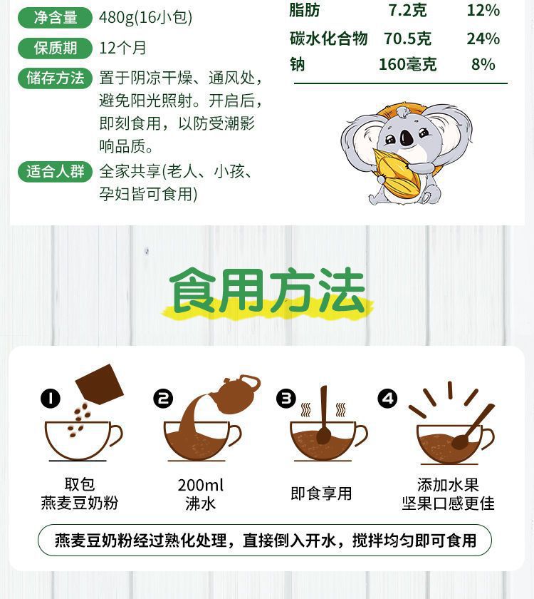Овсянка, соевое молоко, порошок, заваренный без приготовления, питательная овсянка, ленивый завтрак, быстрорастворимый студенческий белый воротник, маленькая сумка