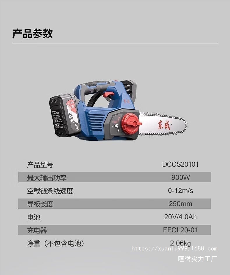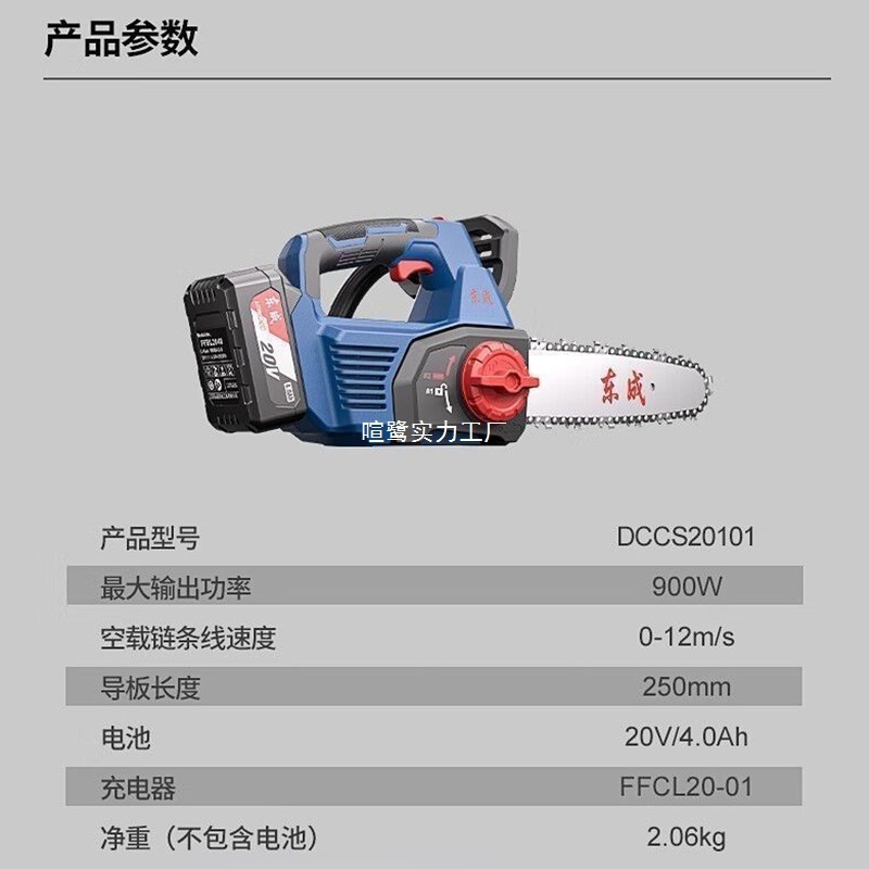 Dongcheng 10inch Бесщеточная литиевая аккумуляторная электрическая цепная пила 20В Ручная пила для резки деревьев DCCS20101