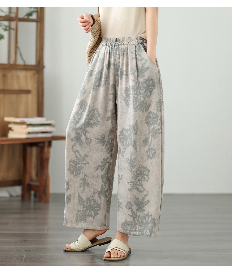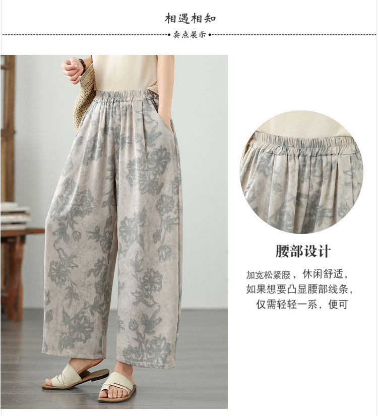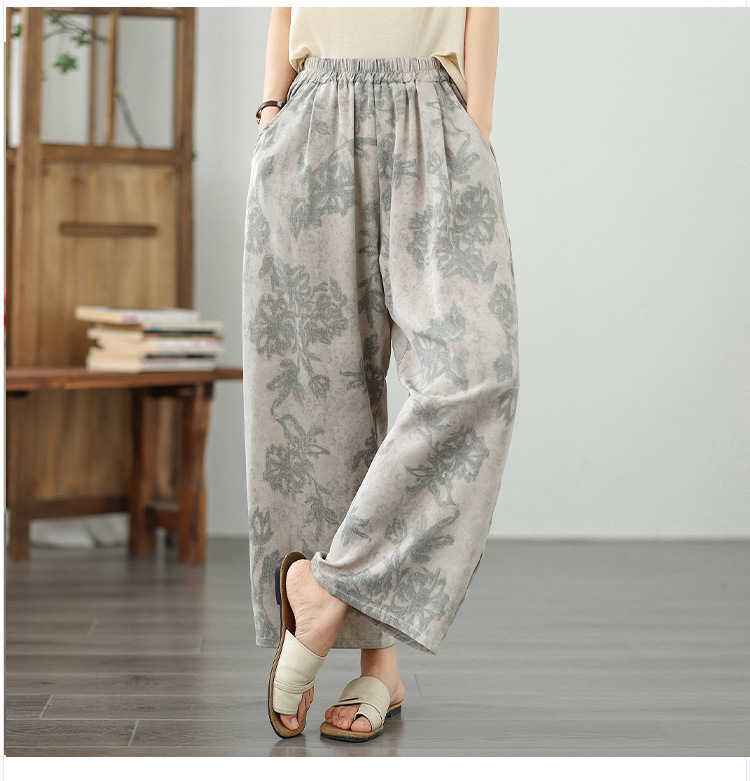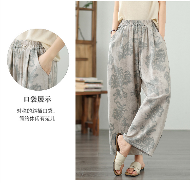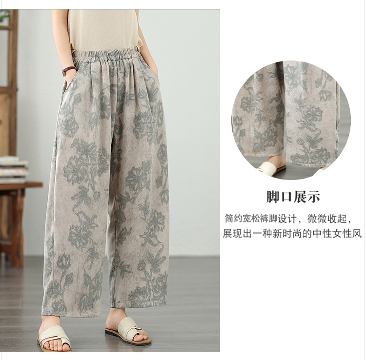 Настоящая летняя тонкая свободная широкая брюки с ретро-принтом, повседневные элегантные универсальные повседневные брюки с высокой талией