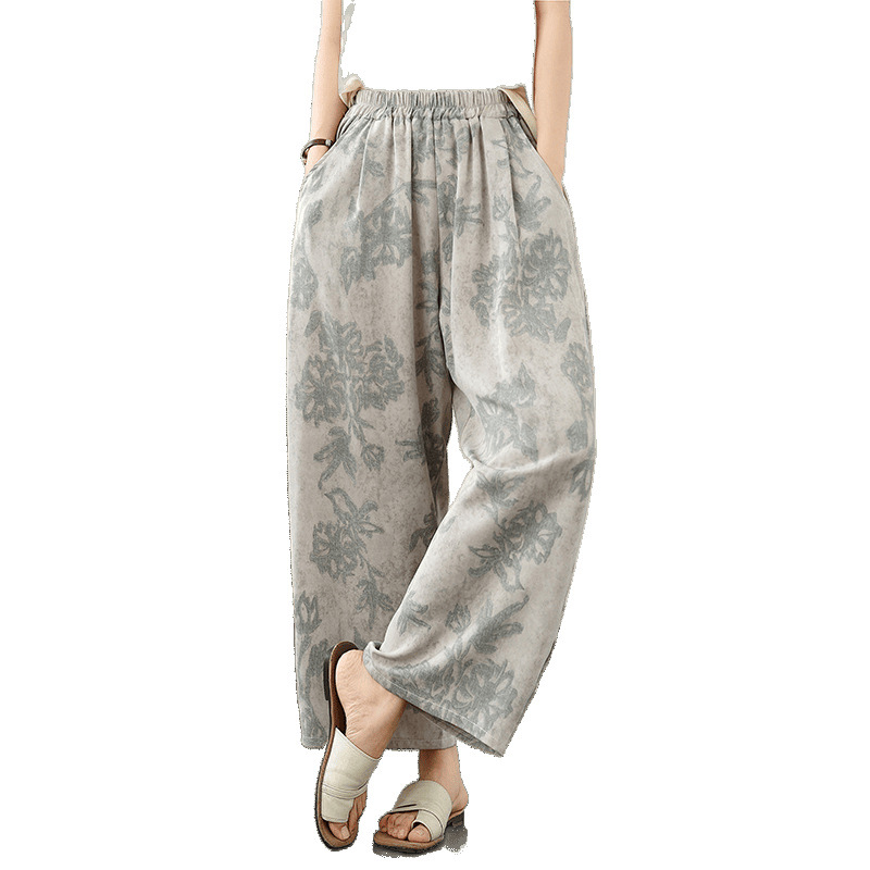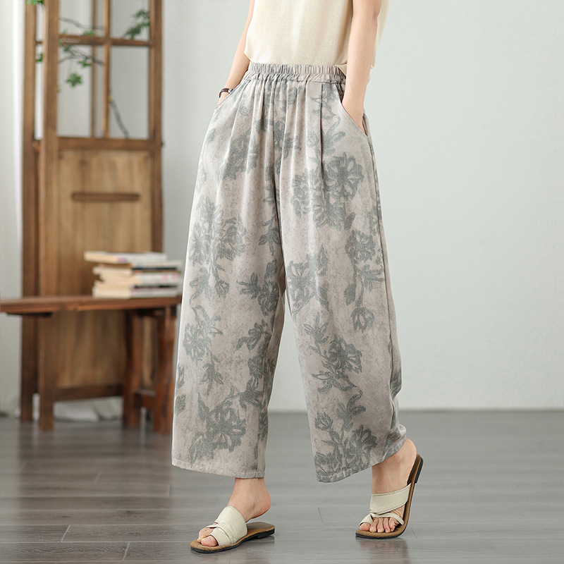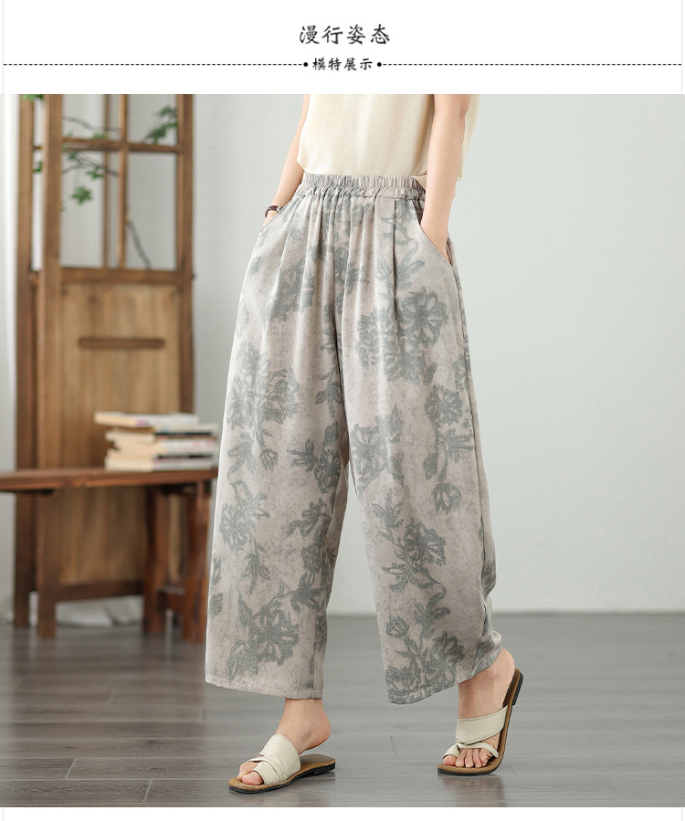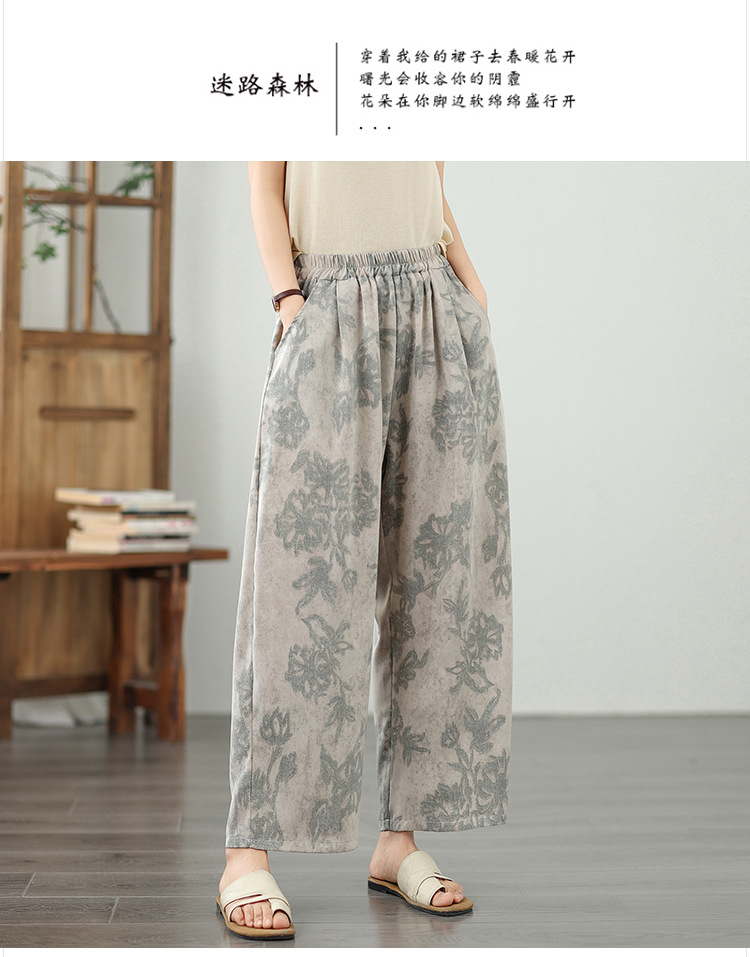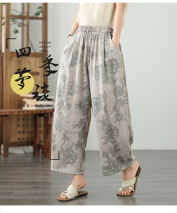 Настоящая летняя тонкая свободная широкая брюки с ретро-принтом, повседневные элегантные универсальные повседневные брюки с высокой талией