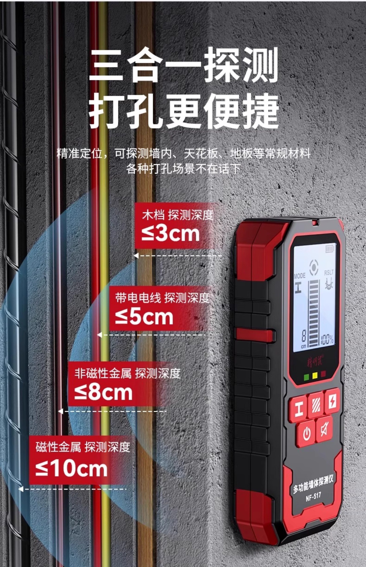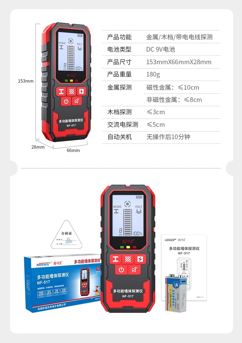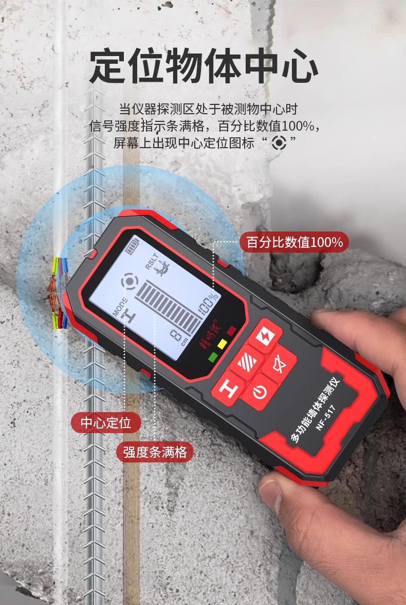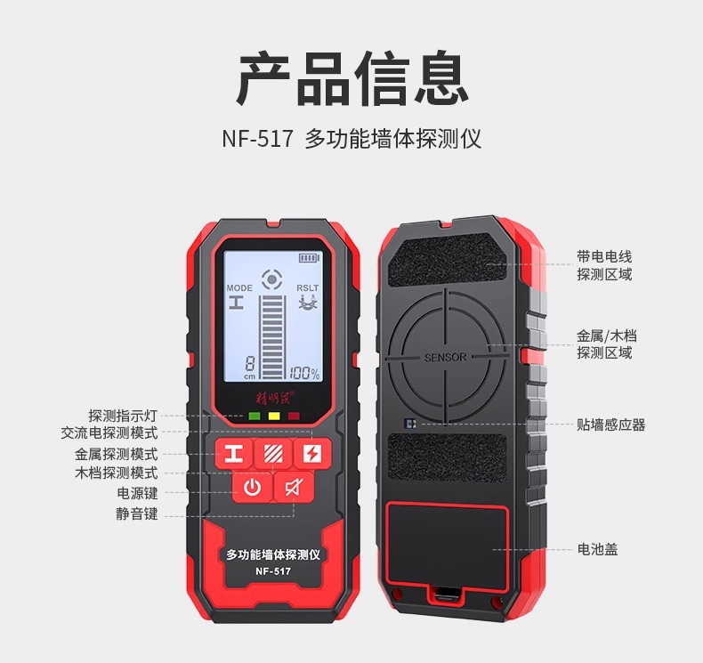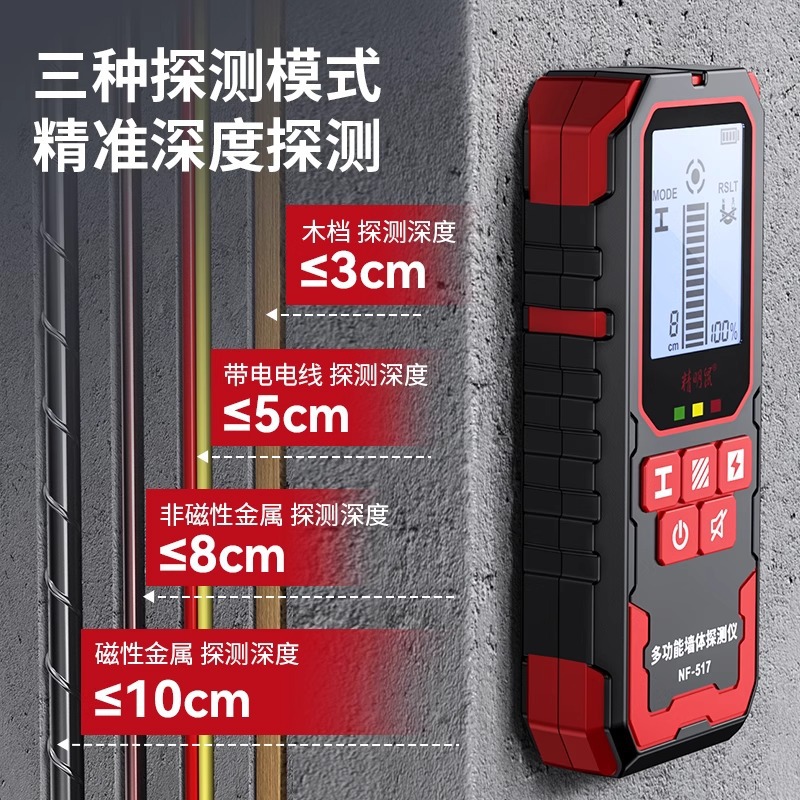 Умный настенный детектор мыши Высокоточный многофункциональный усиленный металлический сканер скрытых линий в несущих стенах NF-517