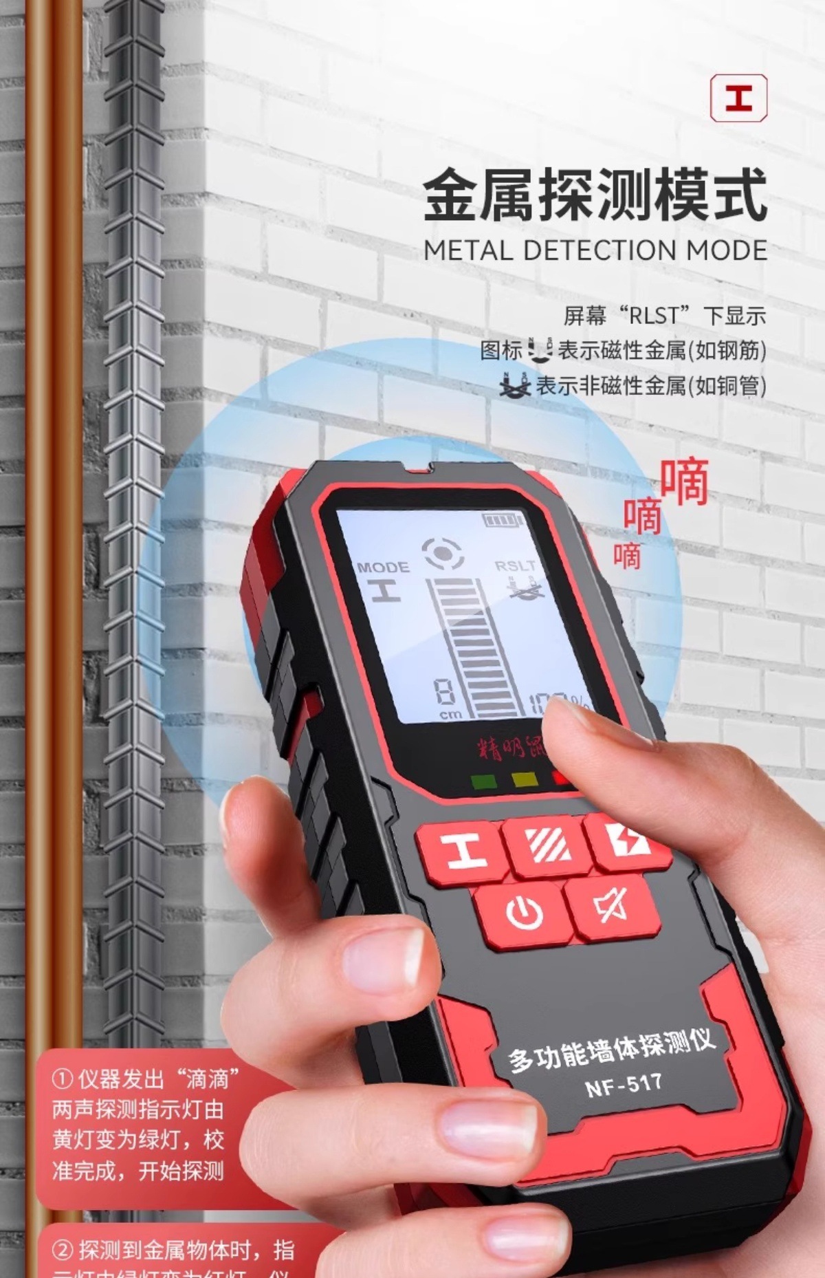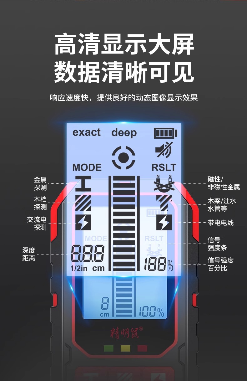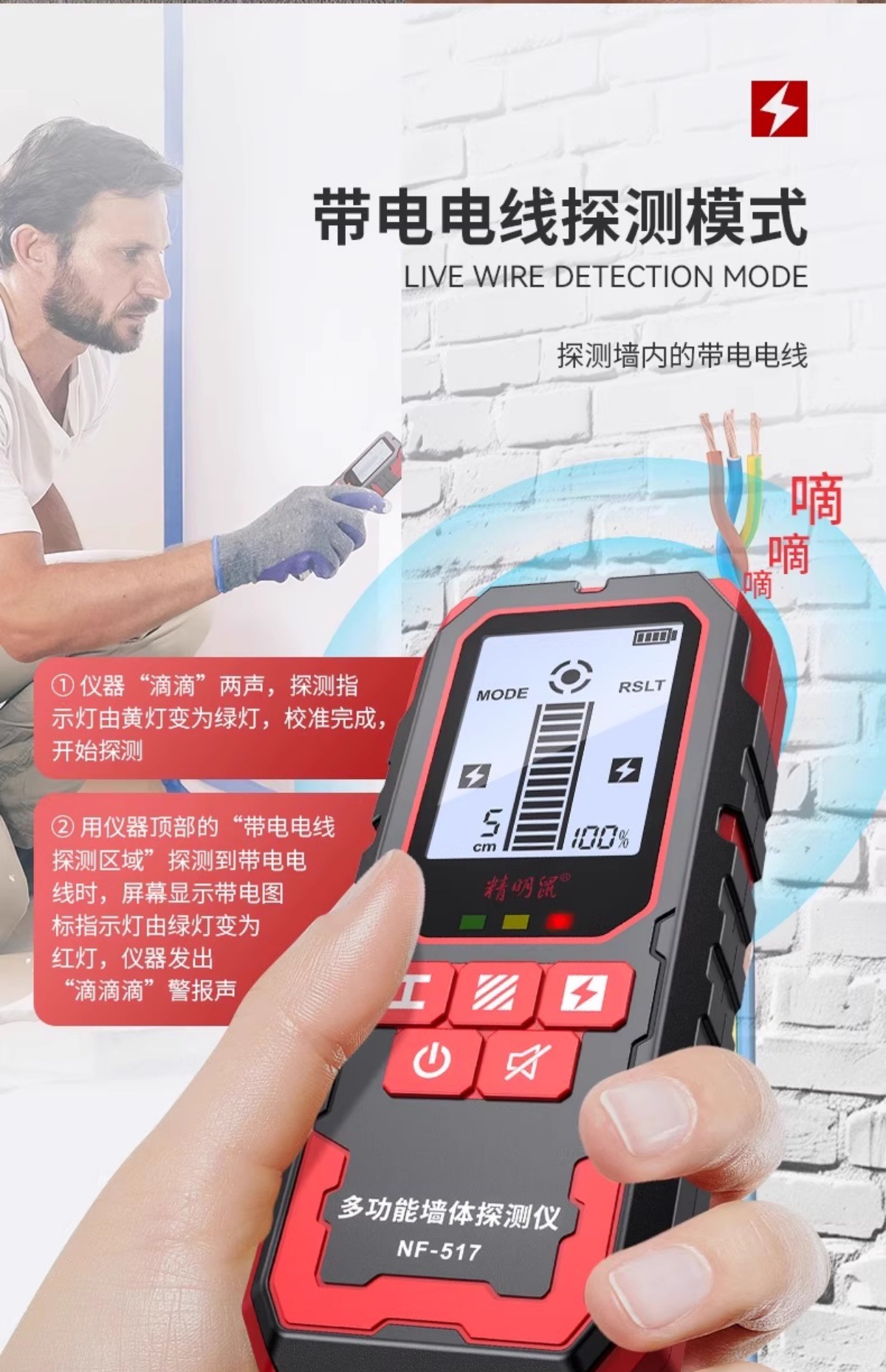 Умный настенный детектор мыши Высокоточный многофункциональный усиленный металлический сканер скрытых линий в несущих стенах NF-517