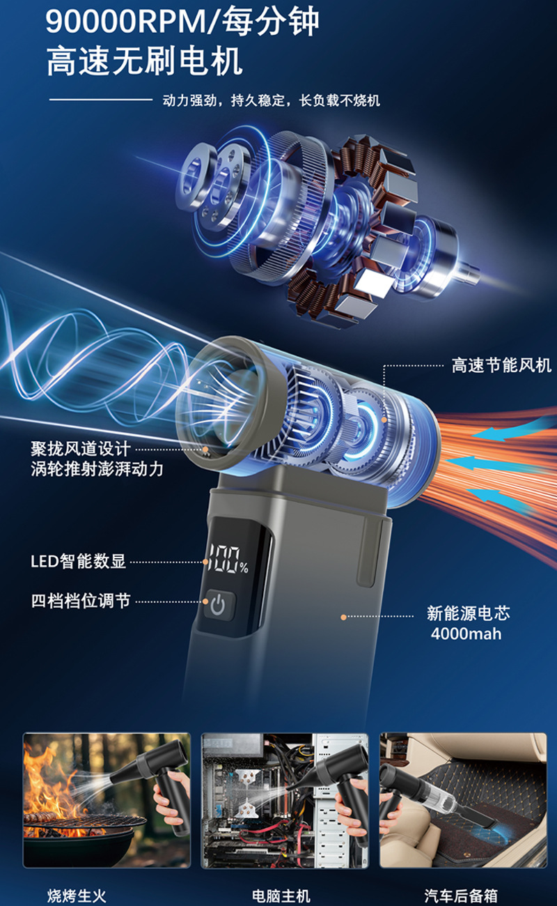电机:九万转电机 输入:5V 2A(不配充电器)TYFE-C