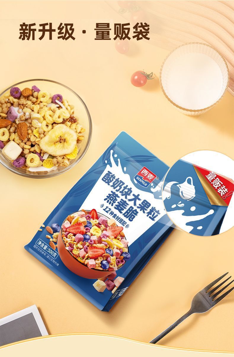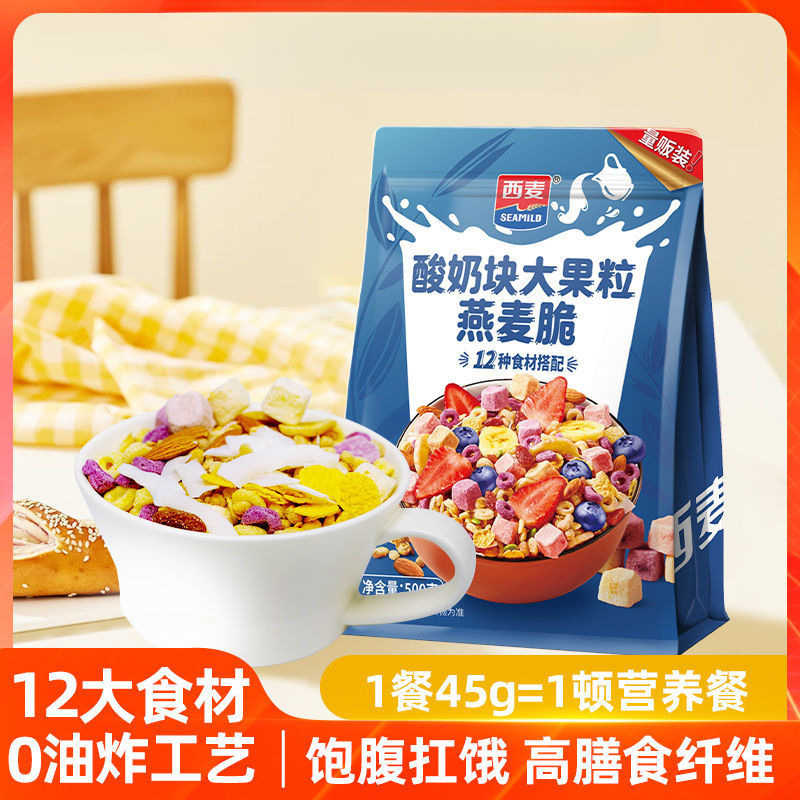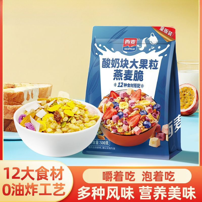 500 г/упаковка йогуртовые кубики с крупными фруктами, хрустящие овсяные хлопья, готовые к употреблению, питательные завтраки, овсяная каша