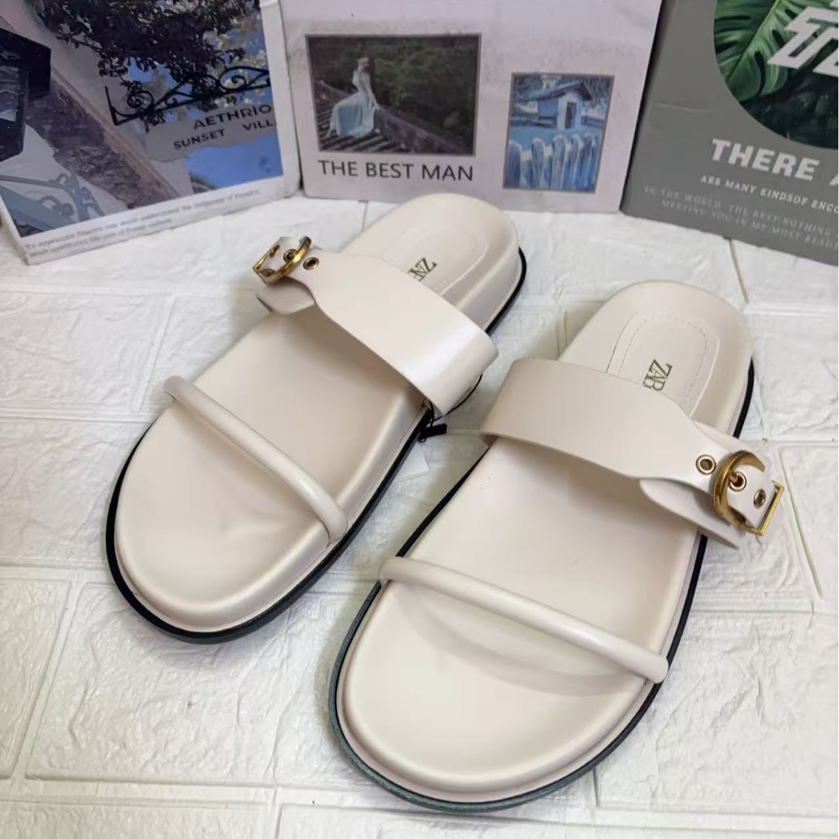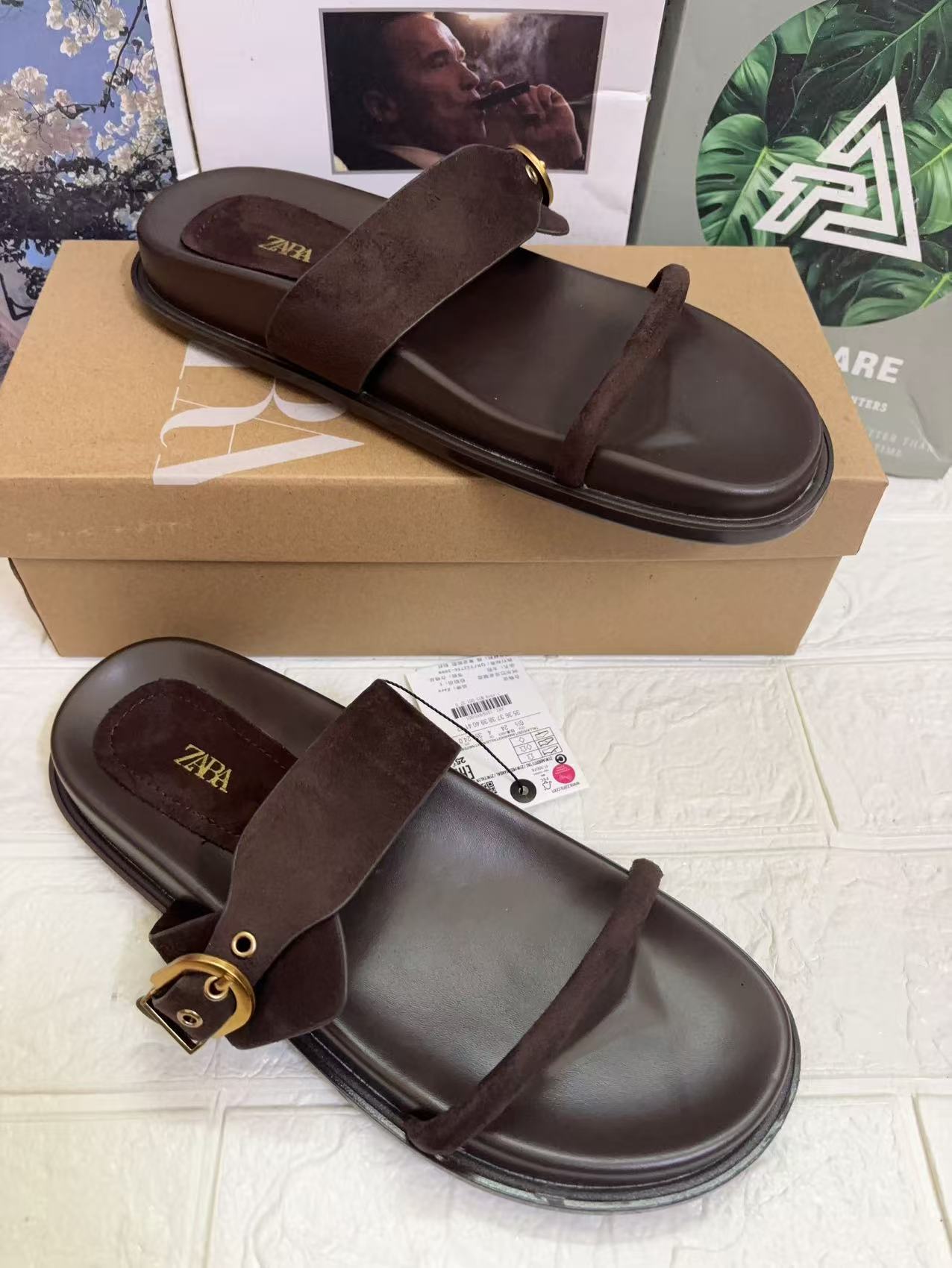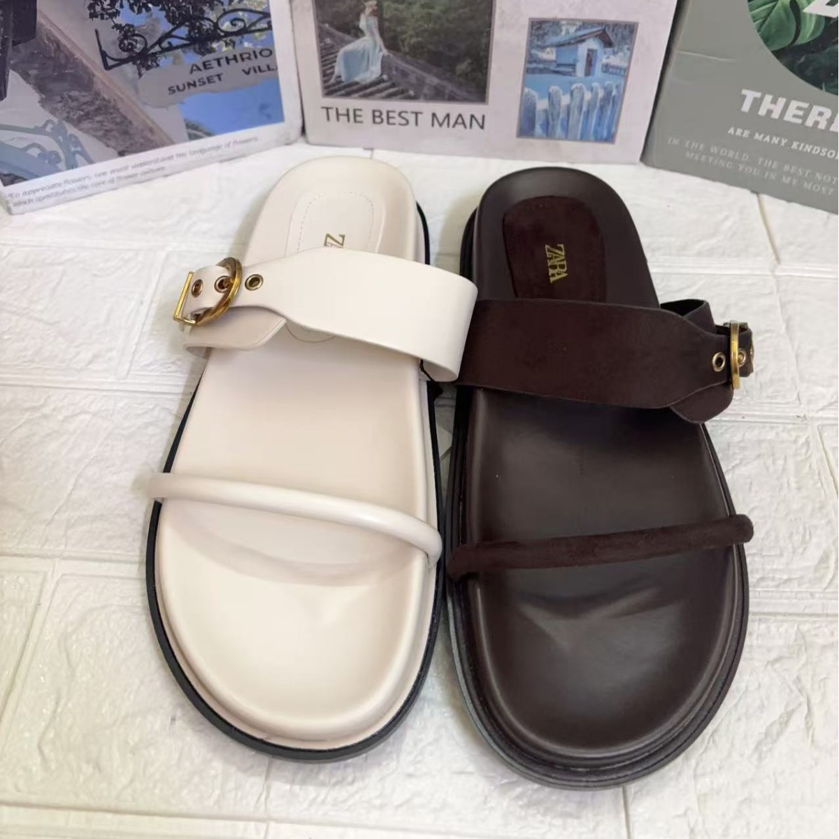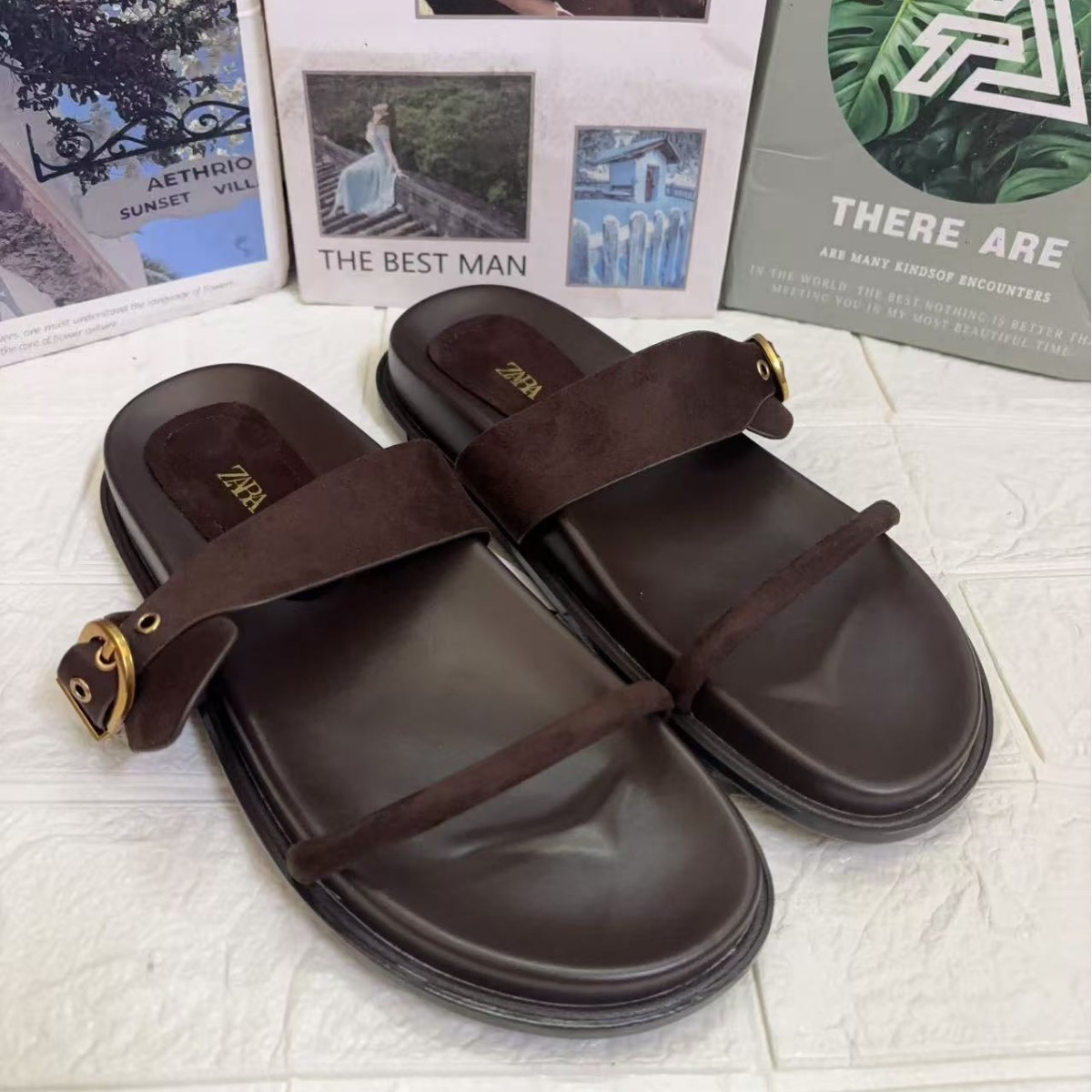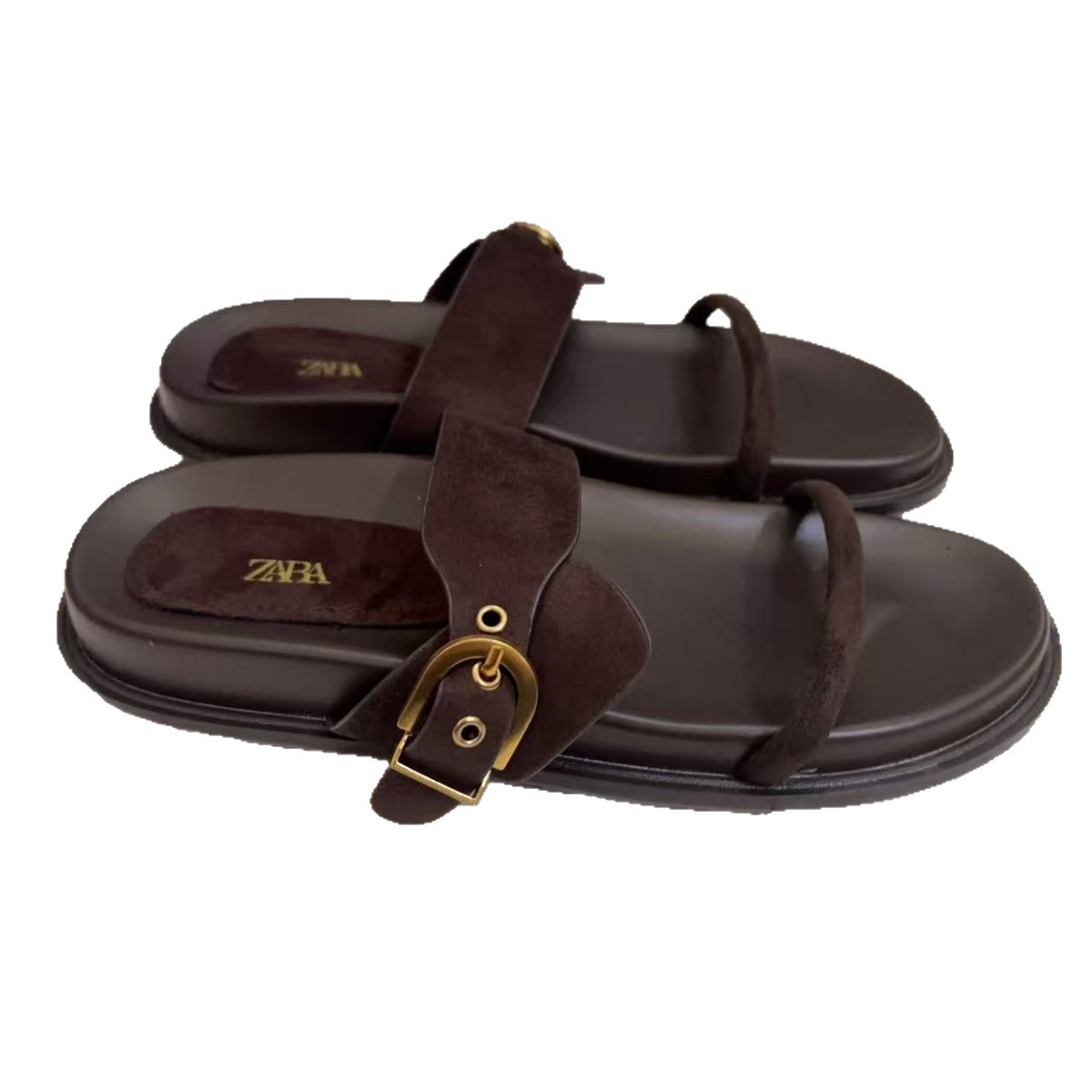 ZA2025, новые летние стильные коричневые, белые однотонные туфли на плоской подошве с открытым носком, повседневные сандалии в ленивом стиле, пляжные сандалии для отдыха