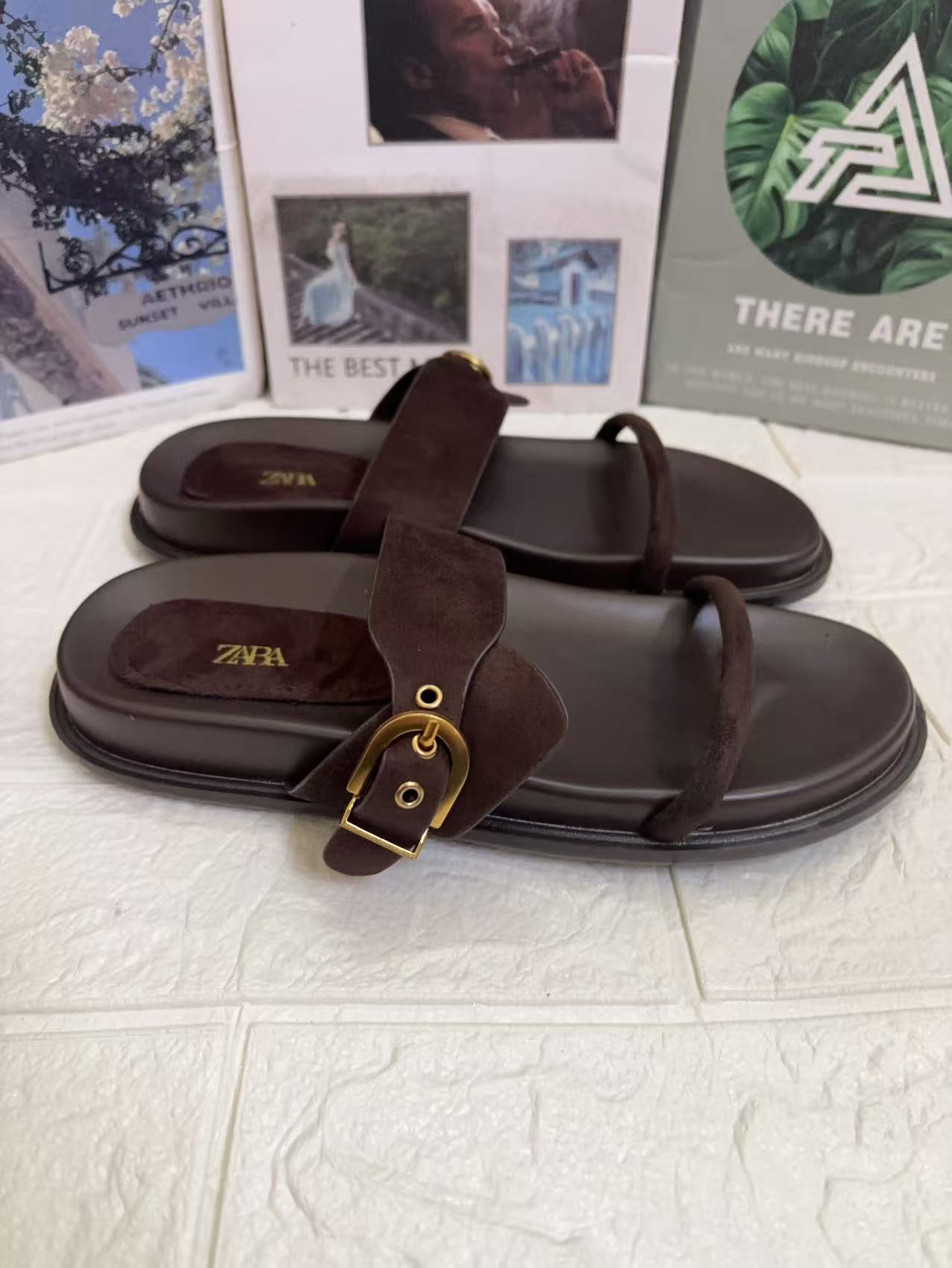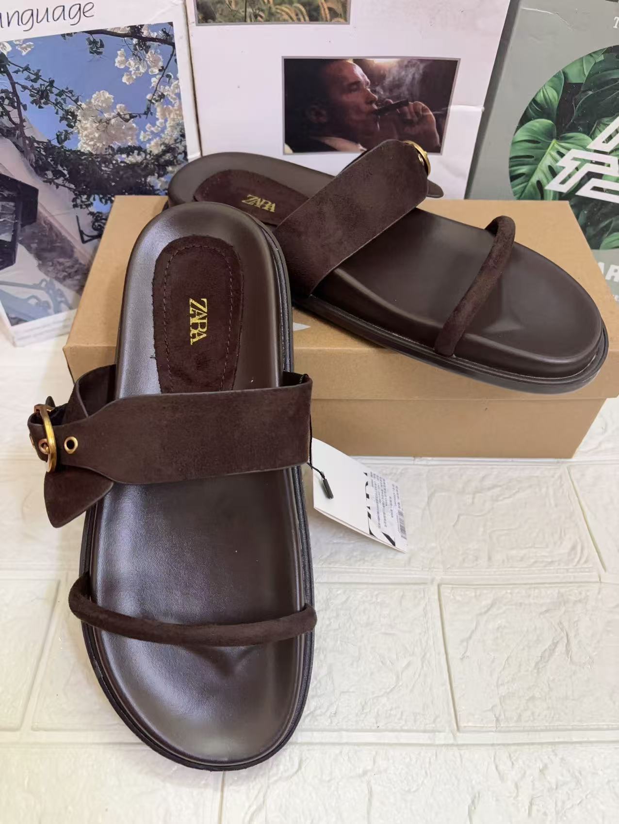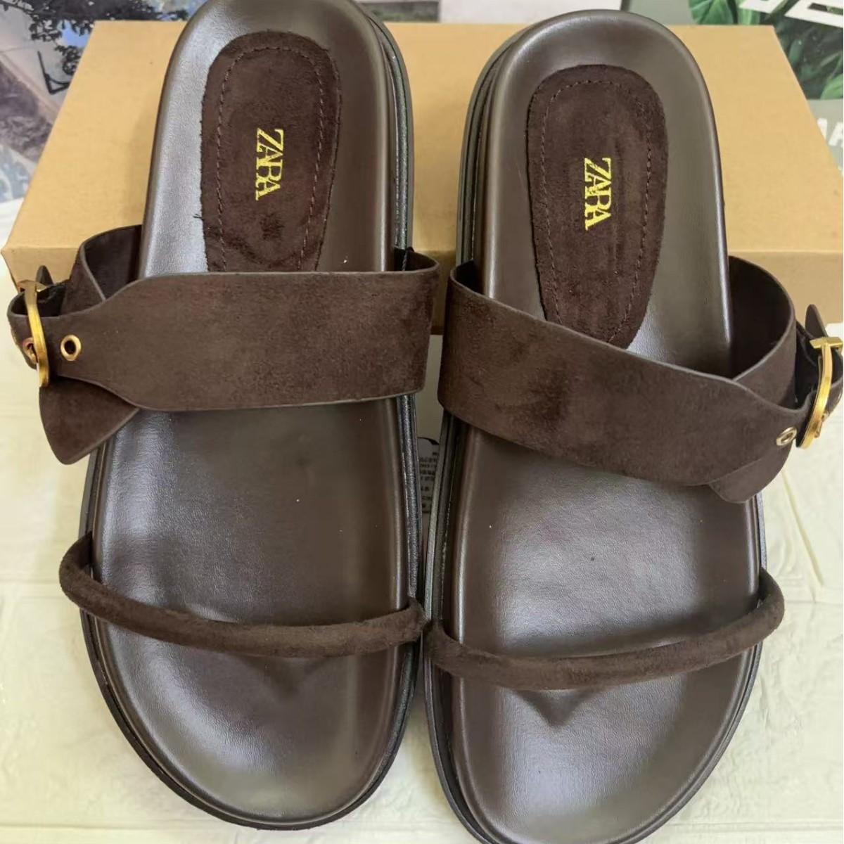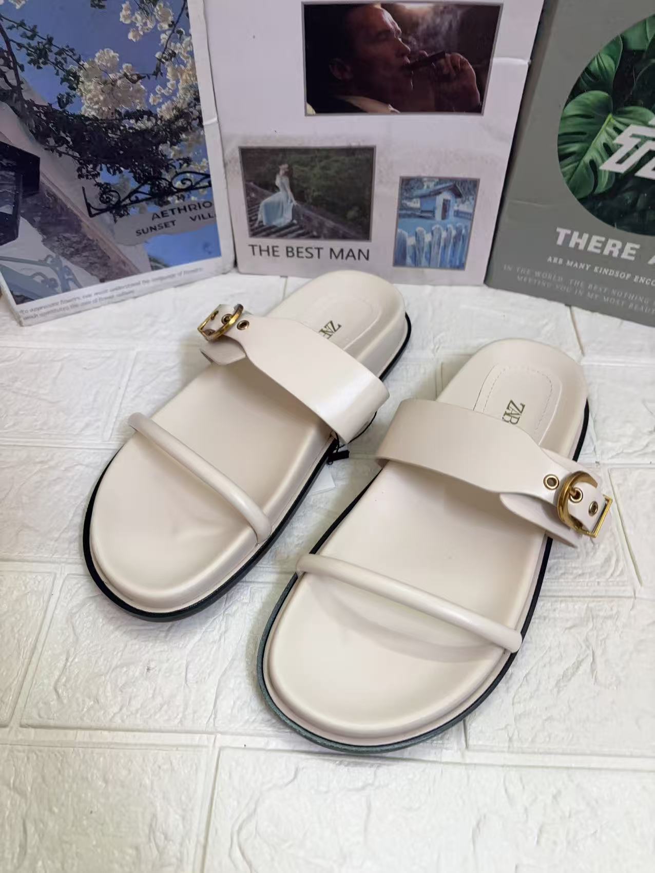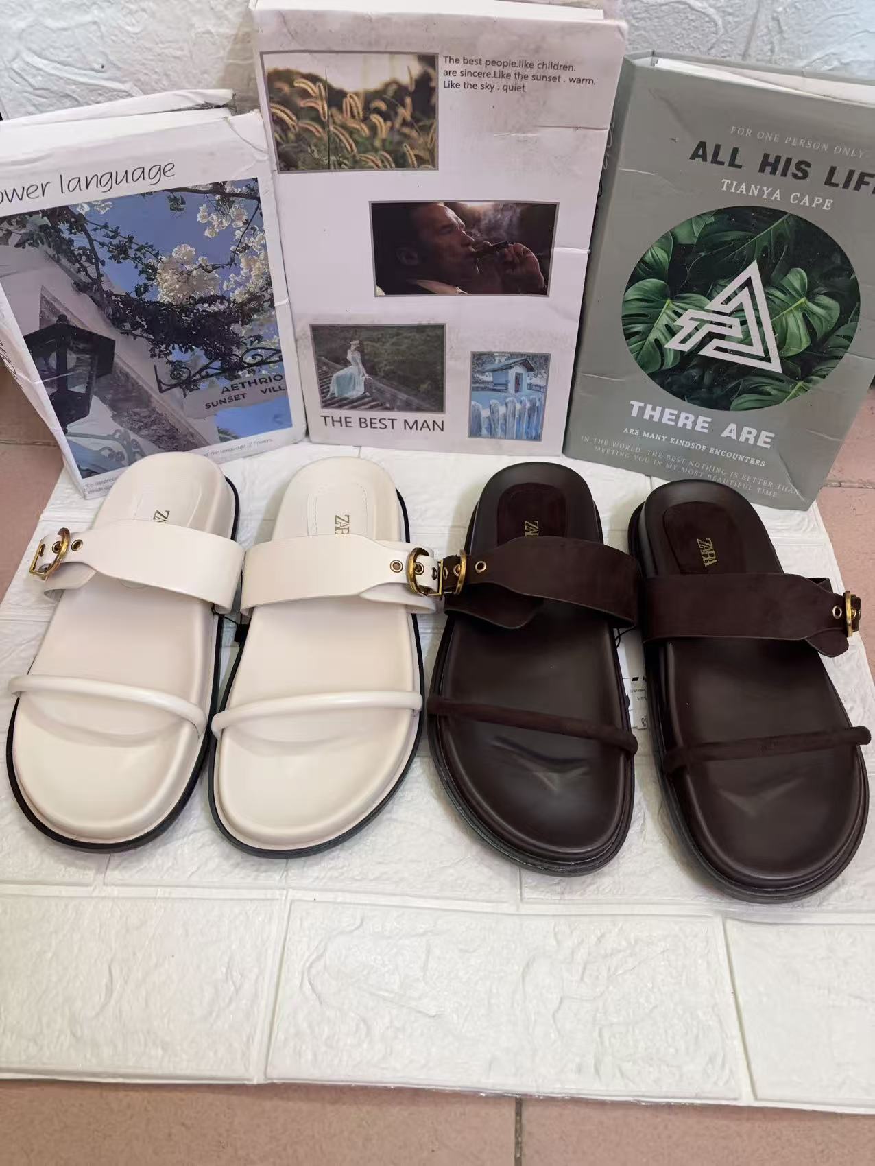 ZA2025, новые летние стильные коричневые, белые однотонные туфли на плоской подошве с открытым носком, повседневные сандалии в ленивом стиле, пляжные сандалии для отдыха