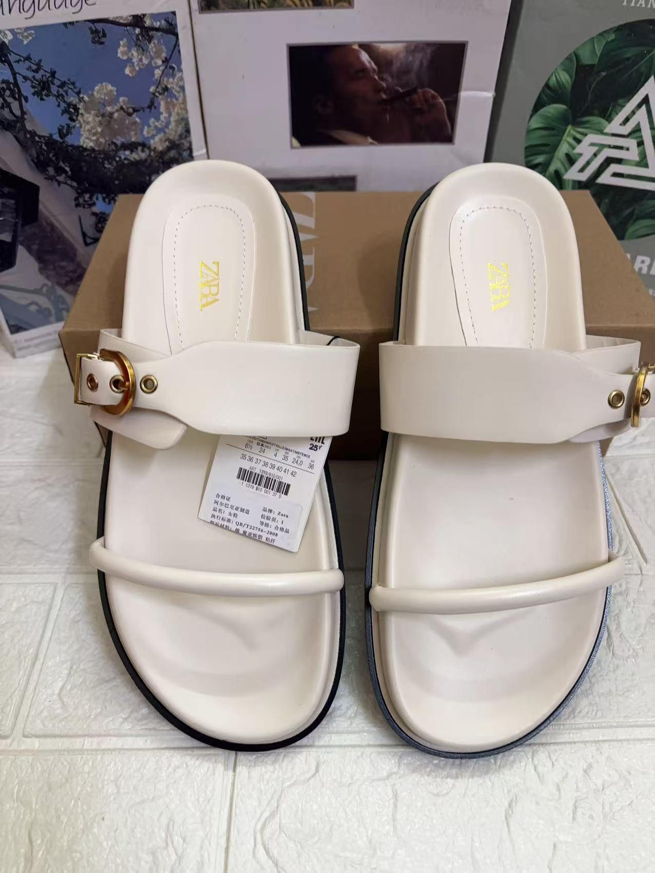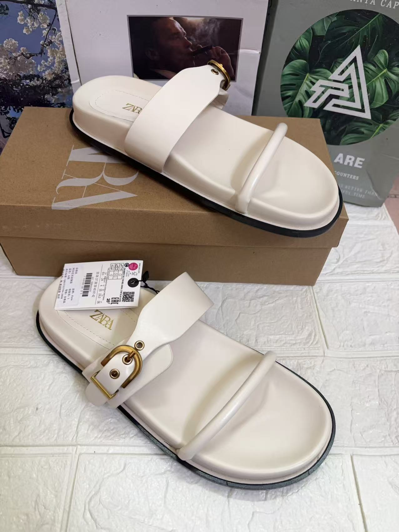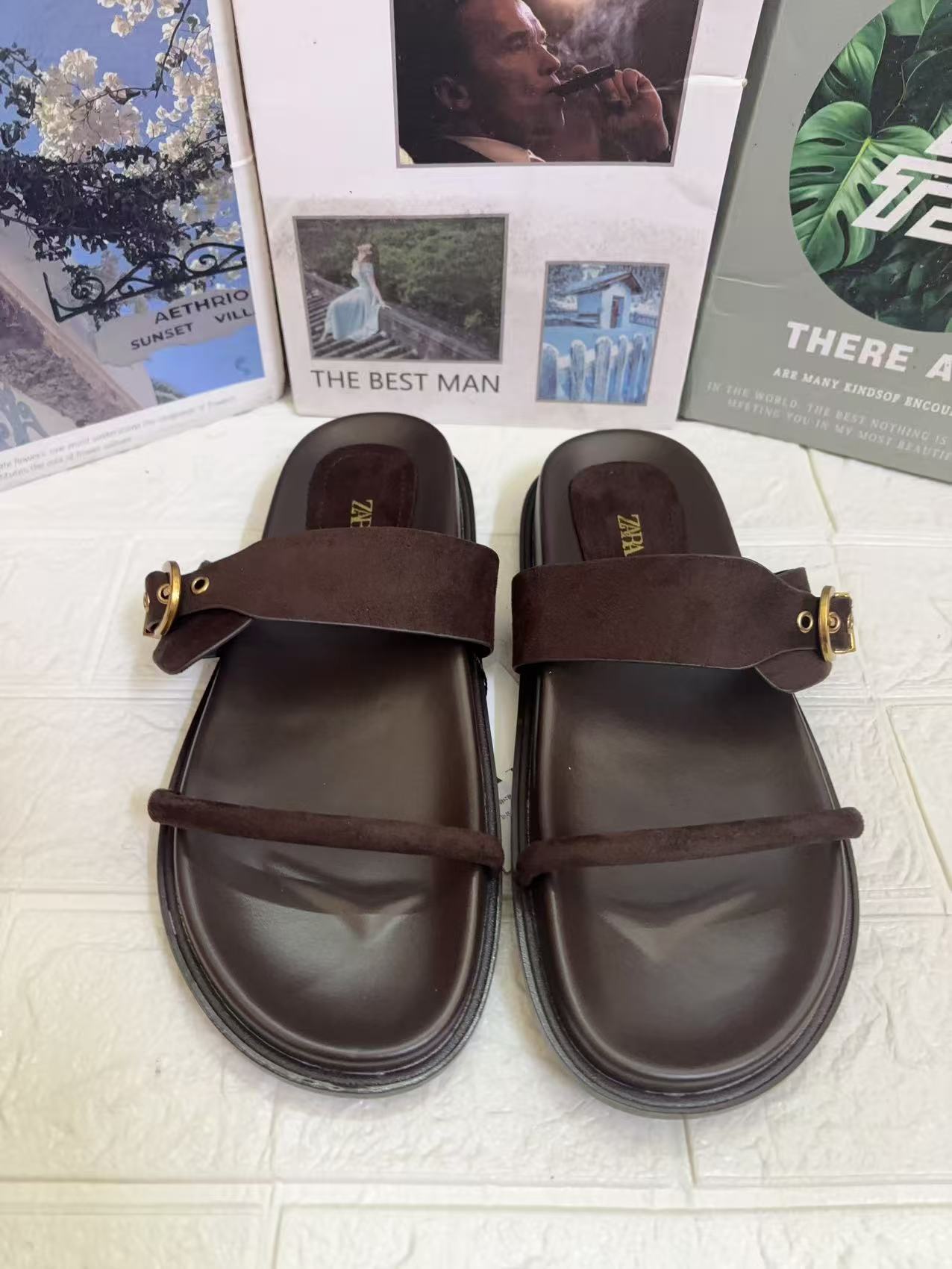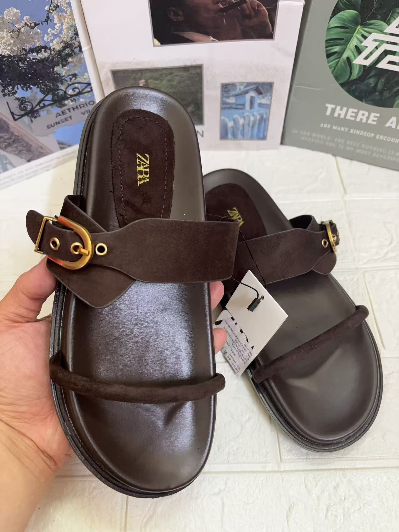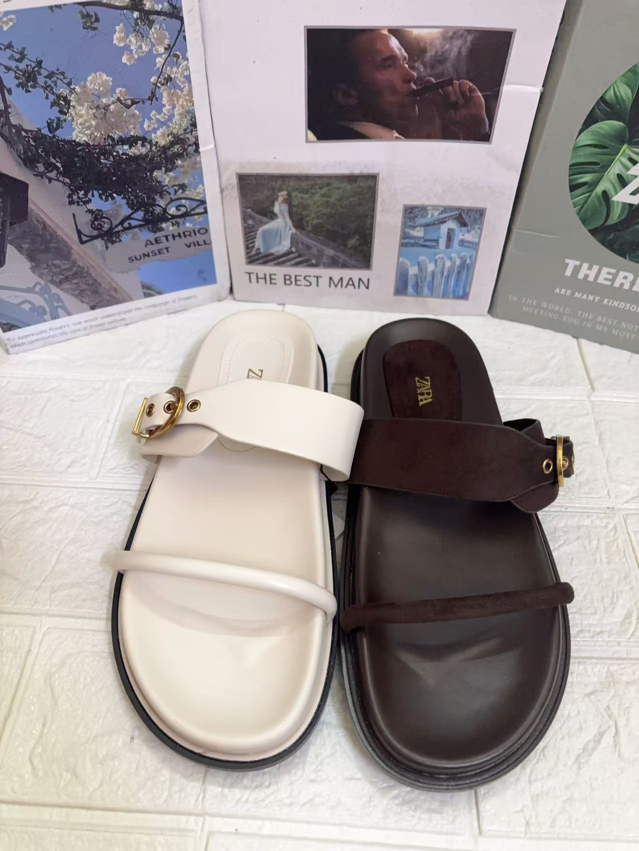 ZA2025, новые летние стильные коричневые, белые однотонные туфли на плоской подошве с открытым носком, повседневные сандалии в ленивом стиле, пляжные сандалии для отдыха