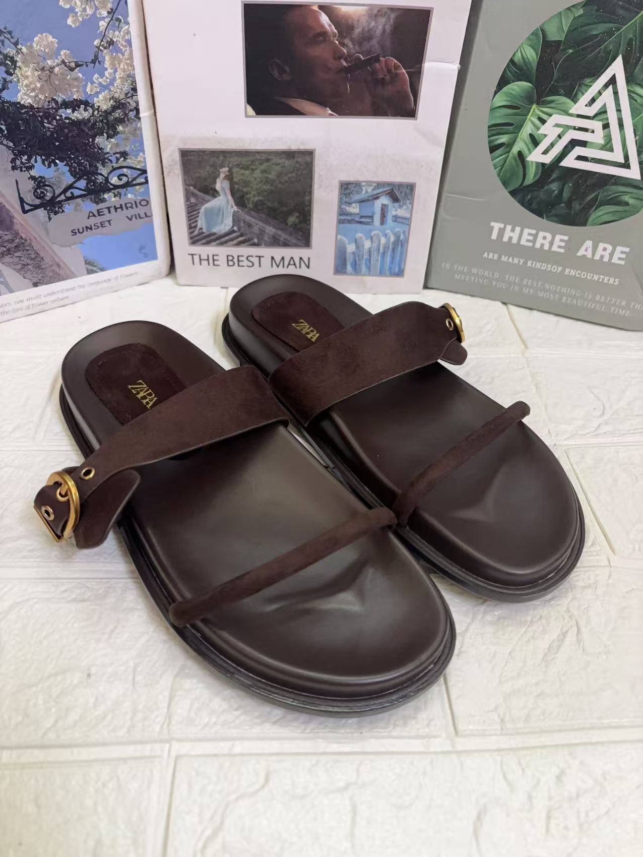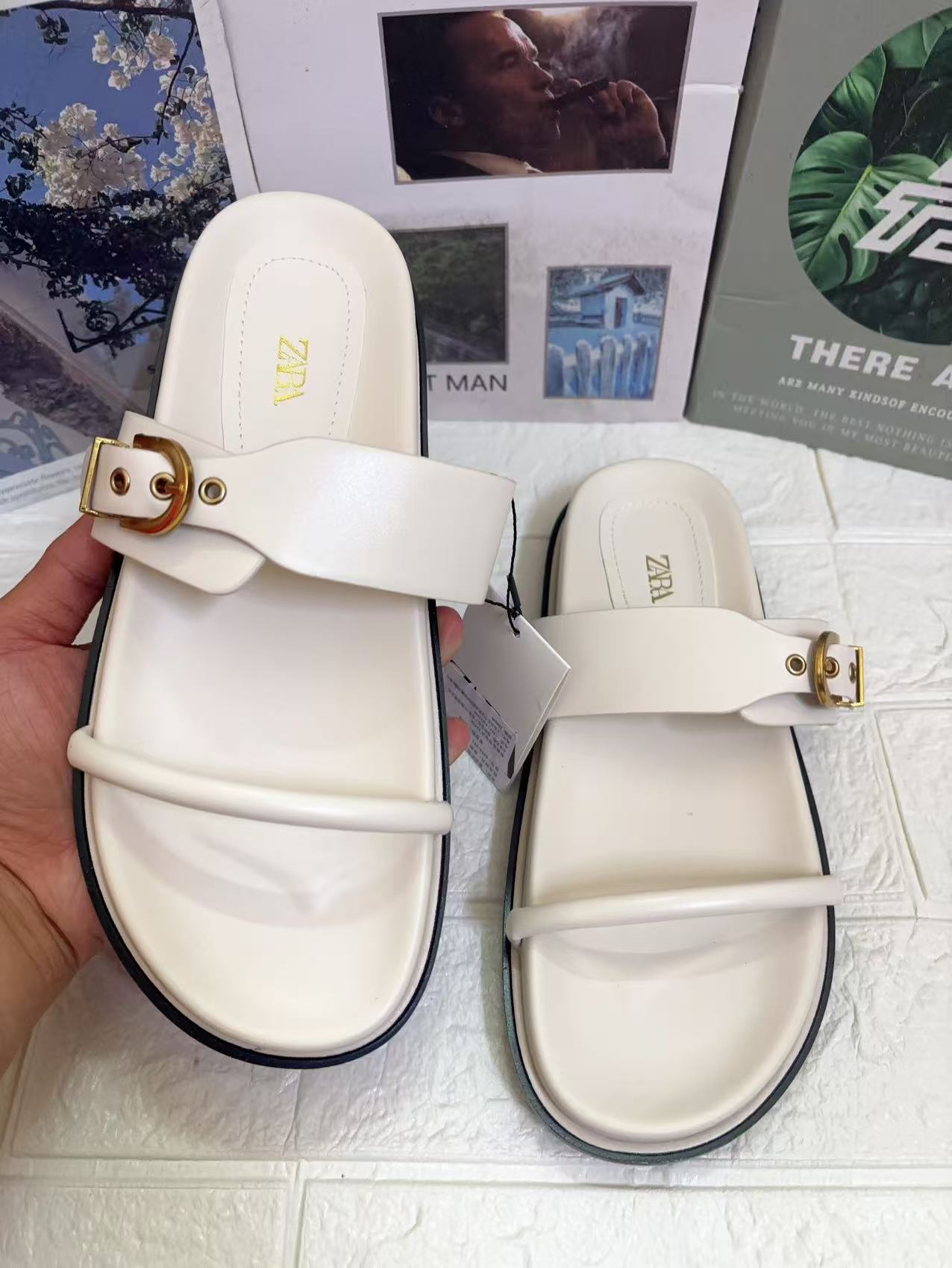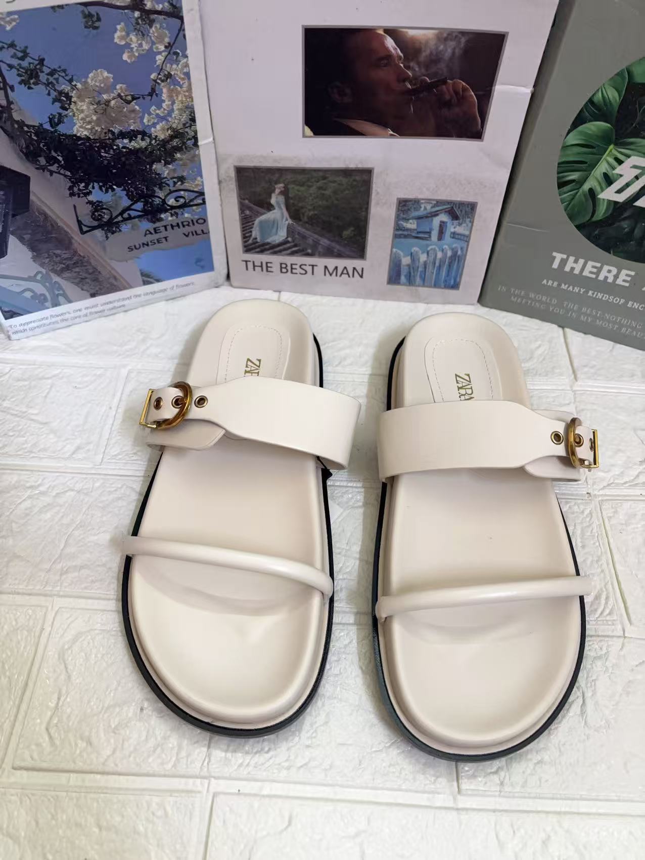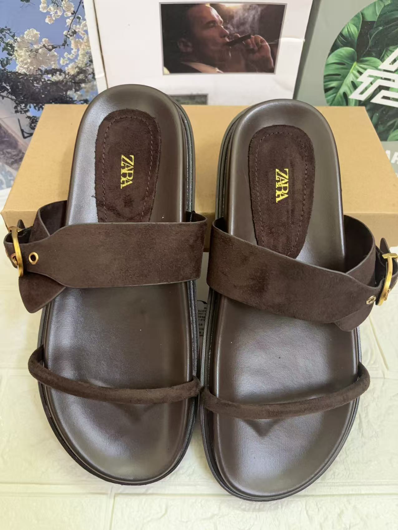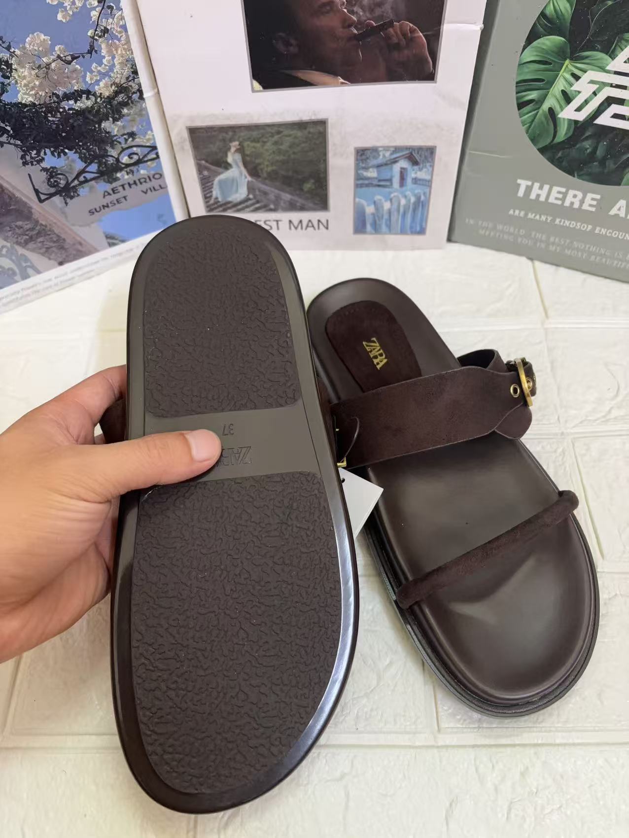 ZA2025, новые летние стильные коричневые, белые однотонные туфли на плоской подошве с открытым носком, повседневные сандалии в ленивом стиле, пляжные сандалии для отдыха