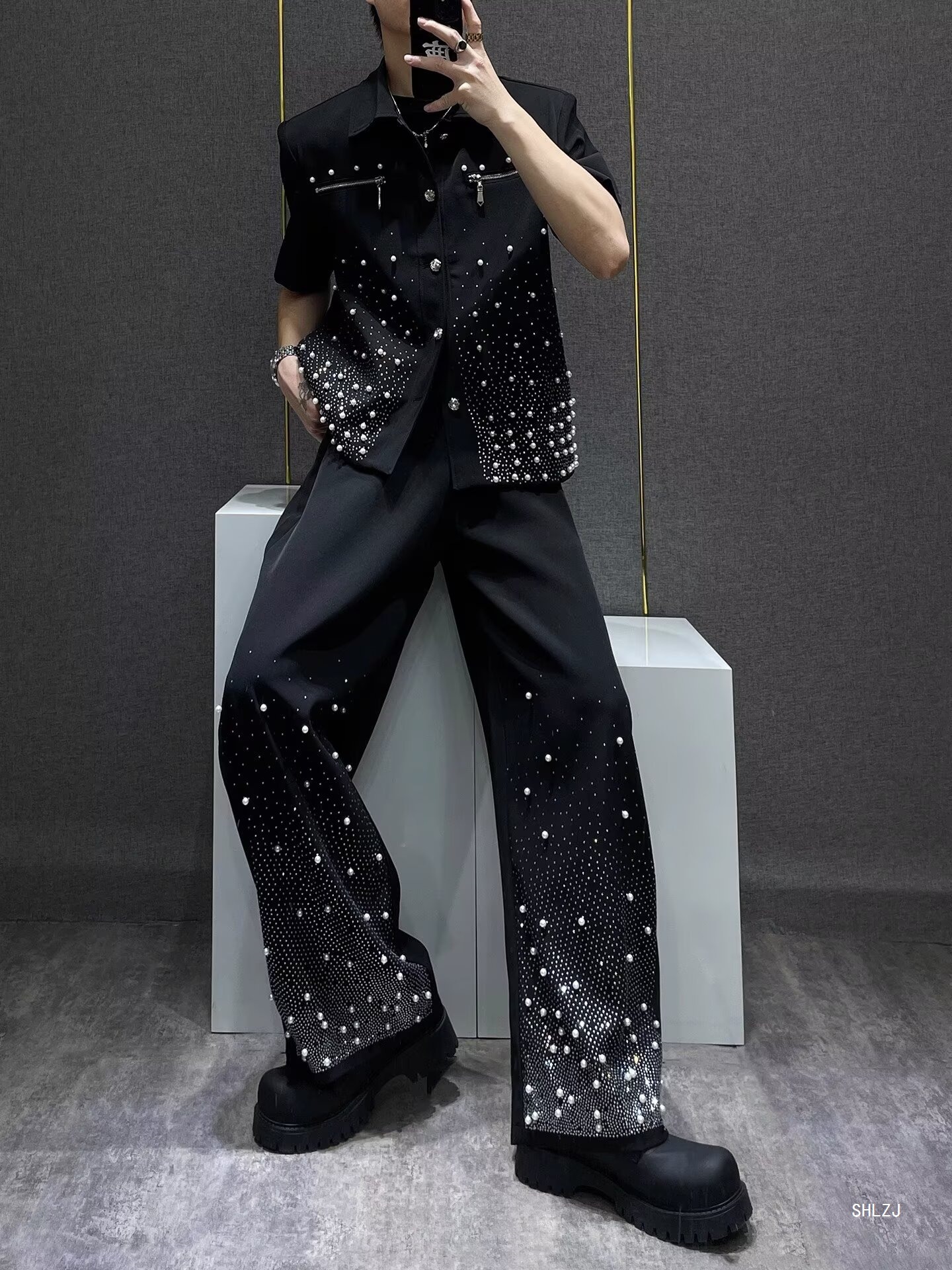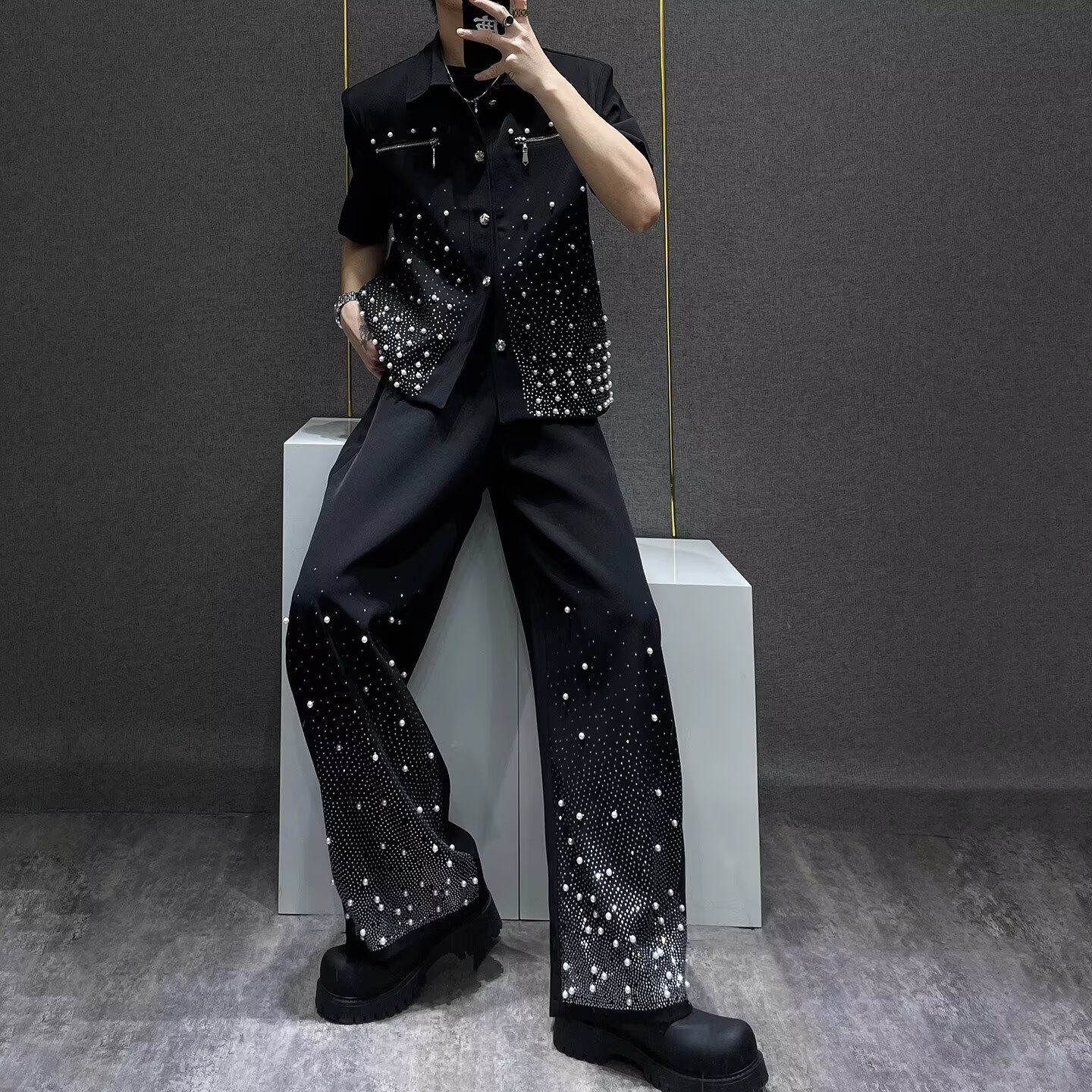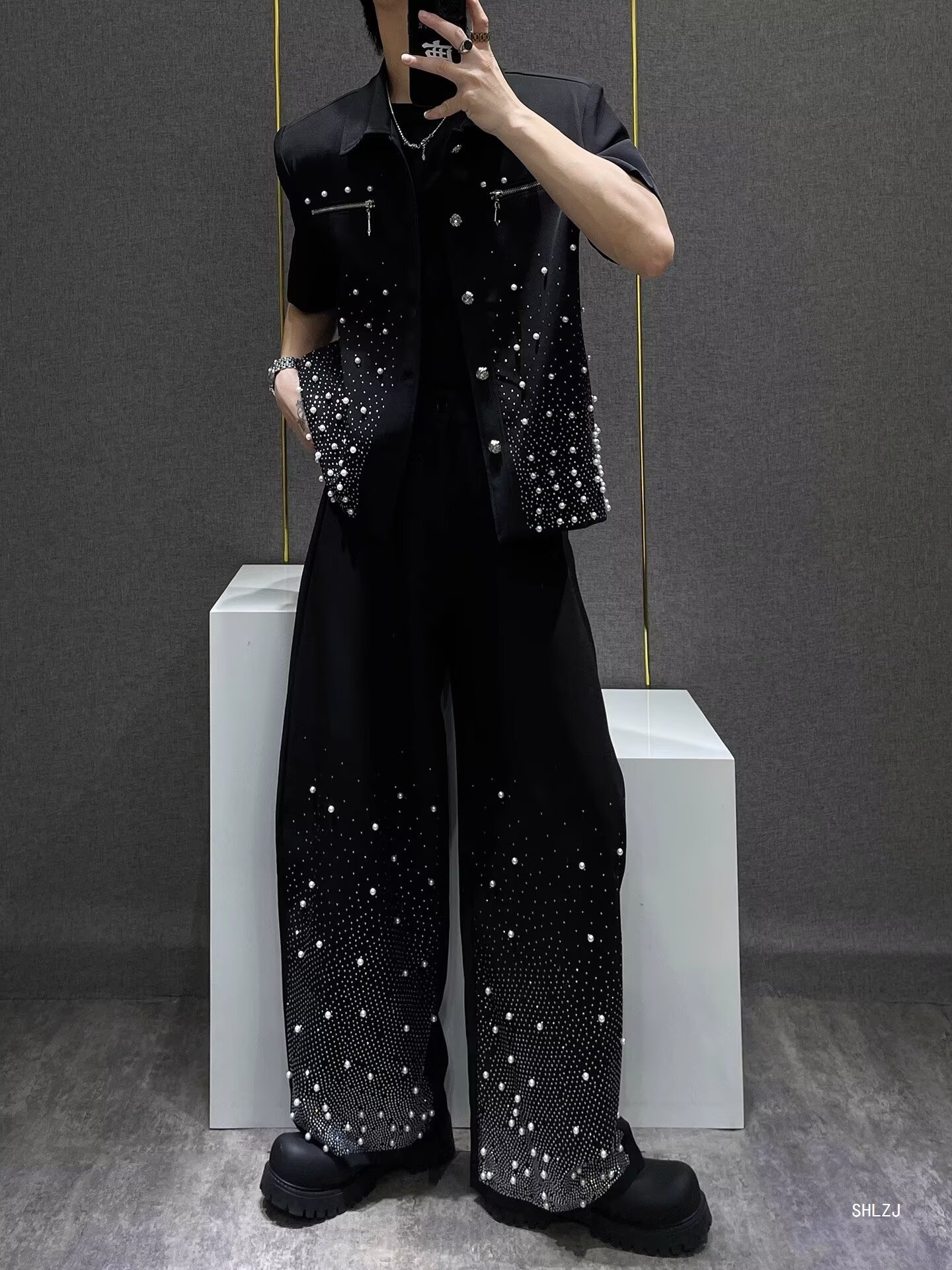 Новый осенний нишевый маленький пиджак со звездным небом и стразами, мужской высококачественный короткий повседневный костюм с подкладкой на плечах, модный