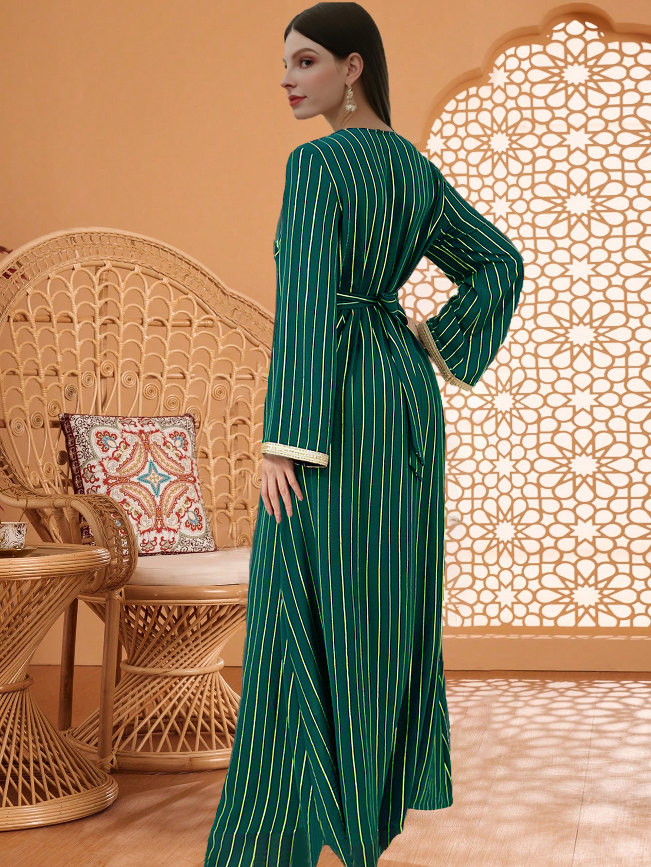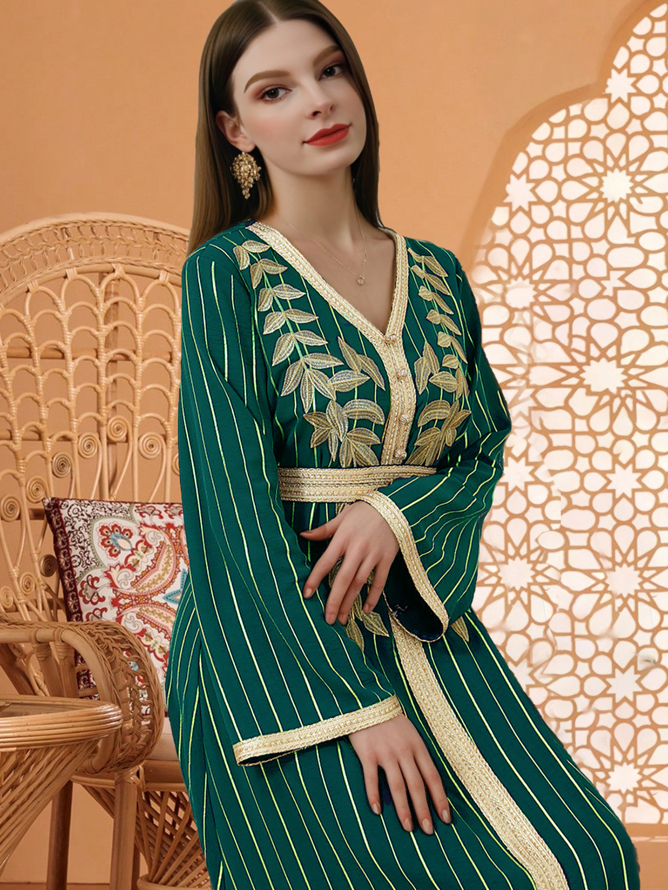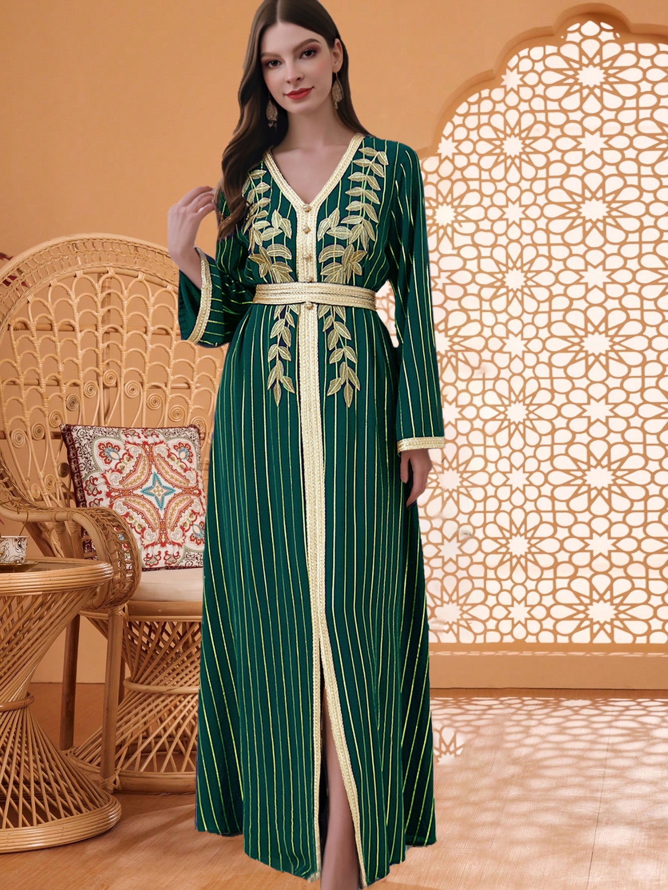 Мусульманская одежда для женщин Ближнего Востока, Саудовская Аравия, Дубай, вышитое цветочное платье, пояс с золотой каймой, халат, абайя, в наличии