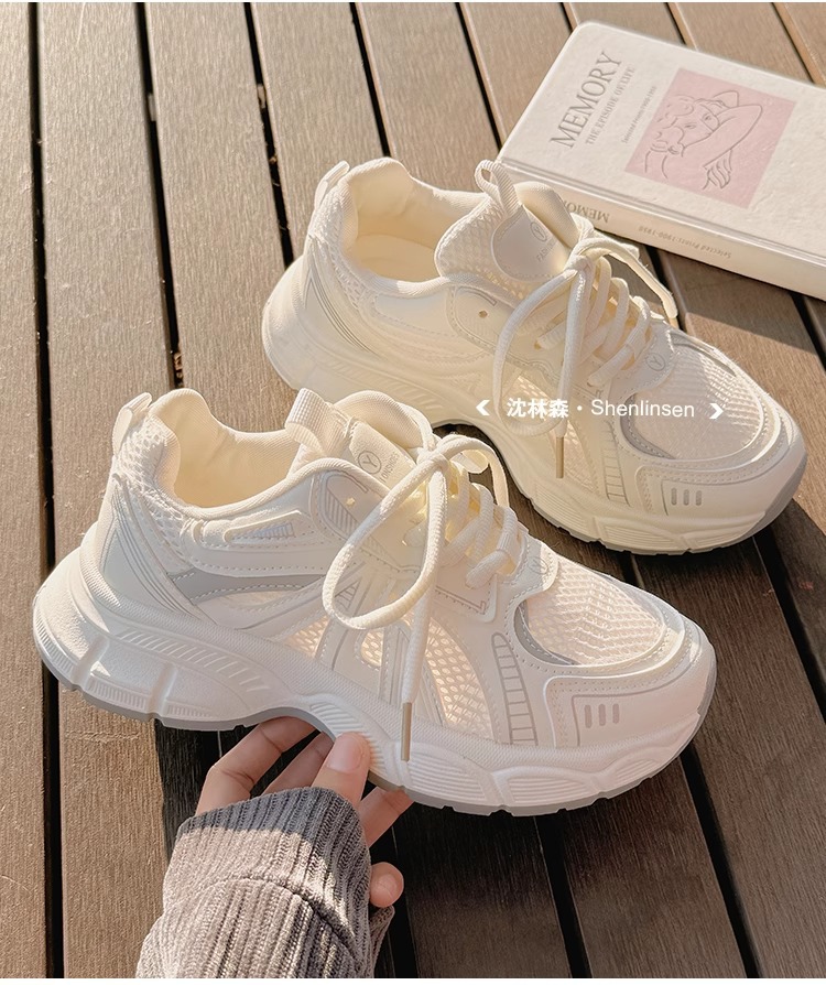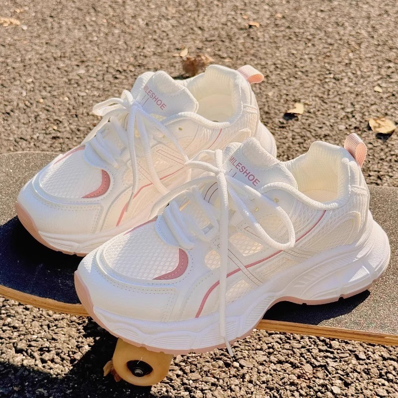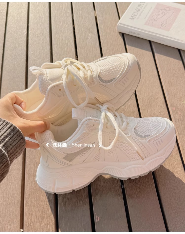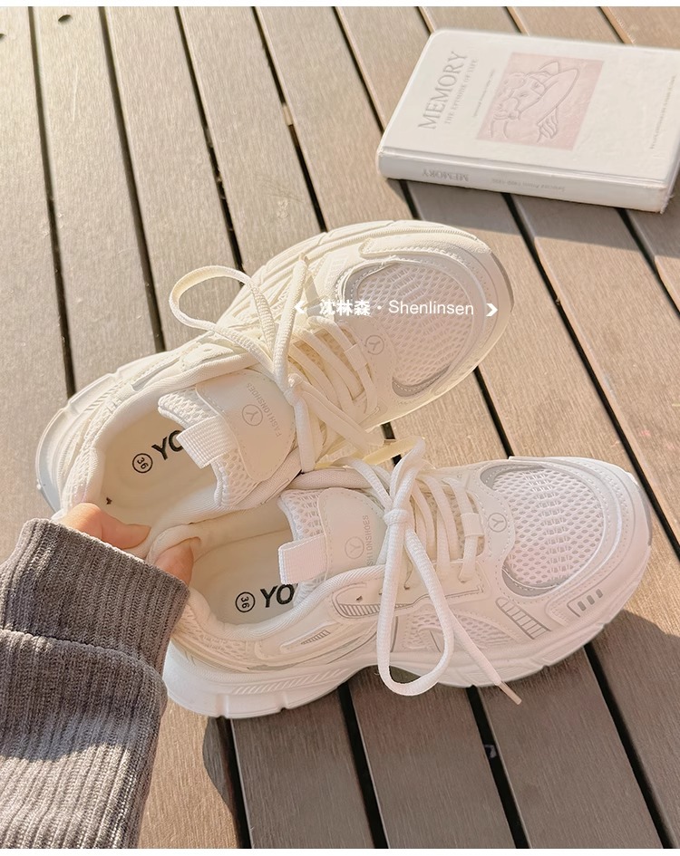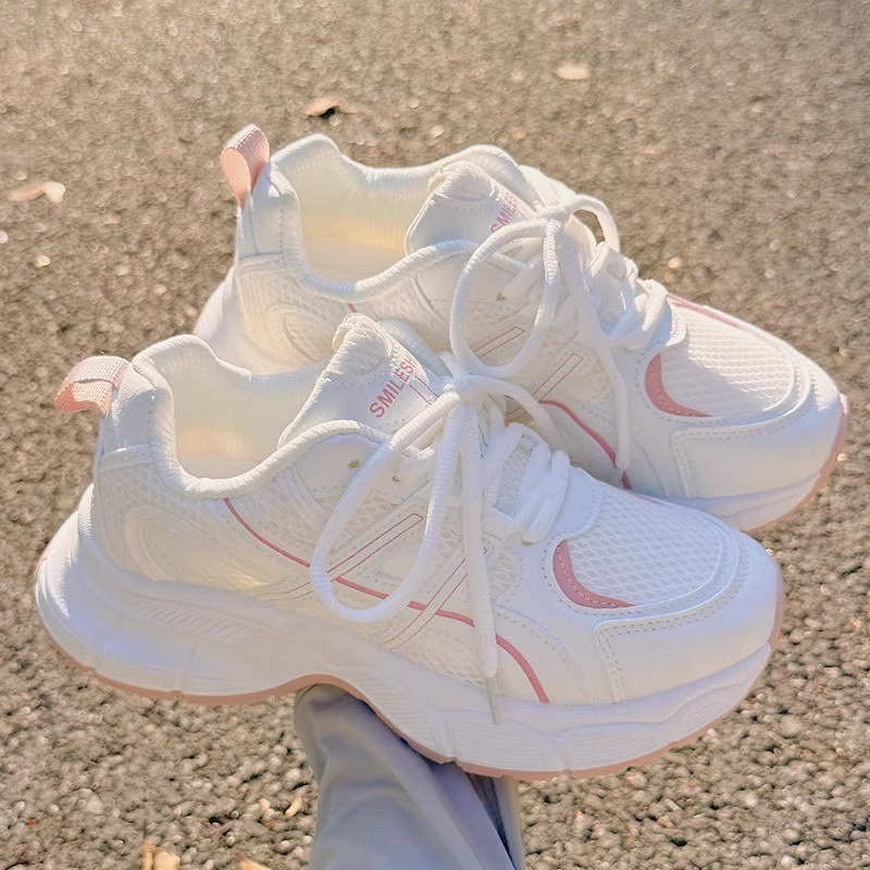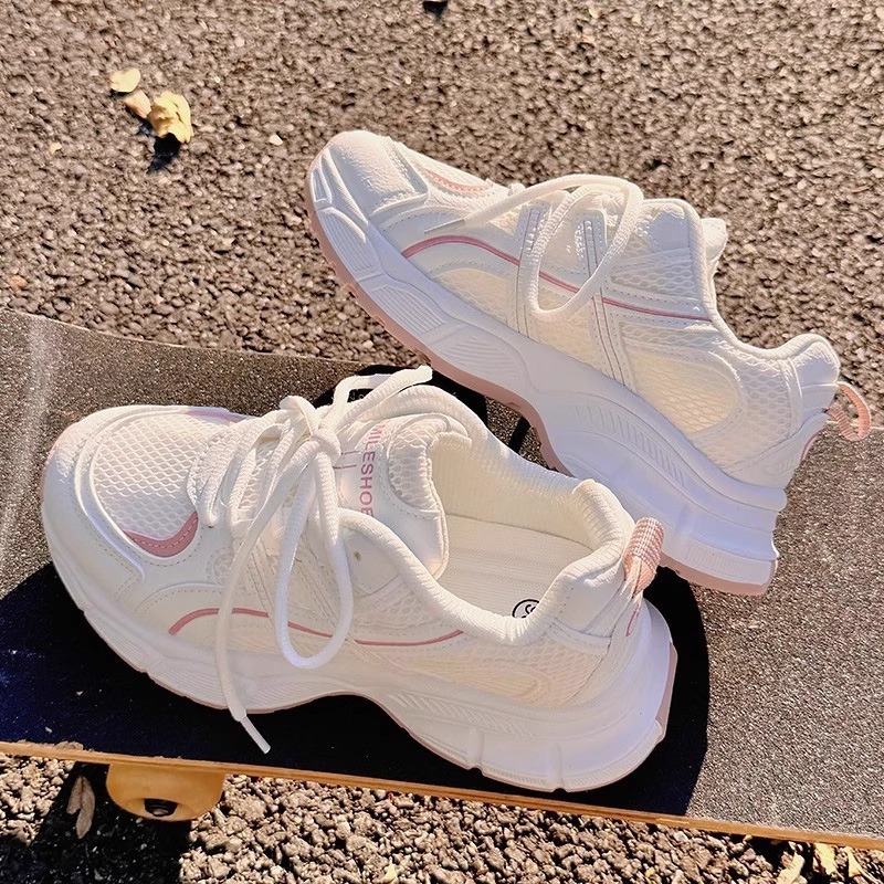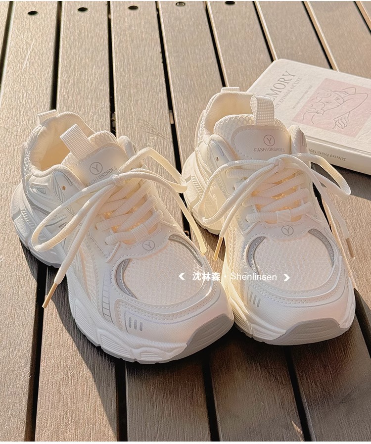 Детские спортивные кроссовки для девочек, лето 2025, новые, белые, сетчатые, дышащие, нескользящие, для школьниц.