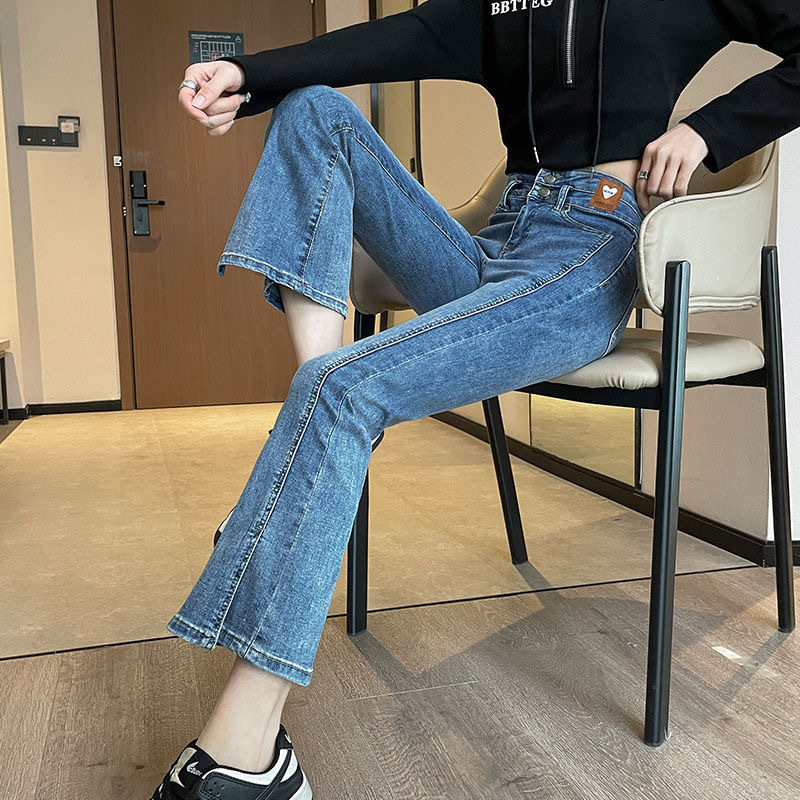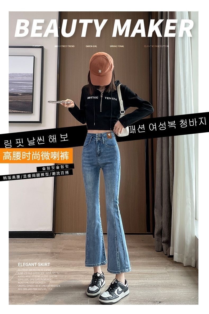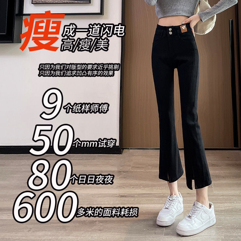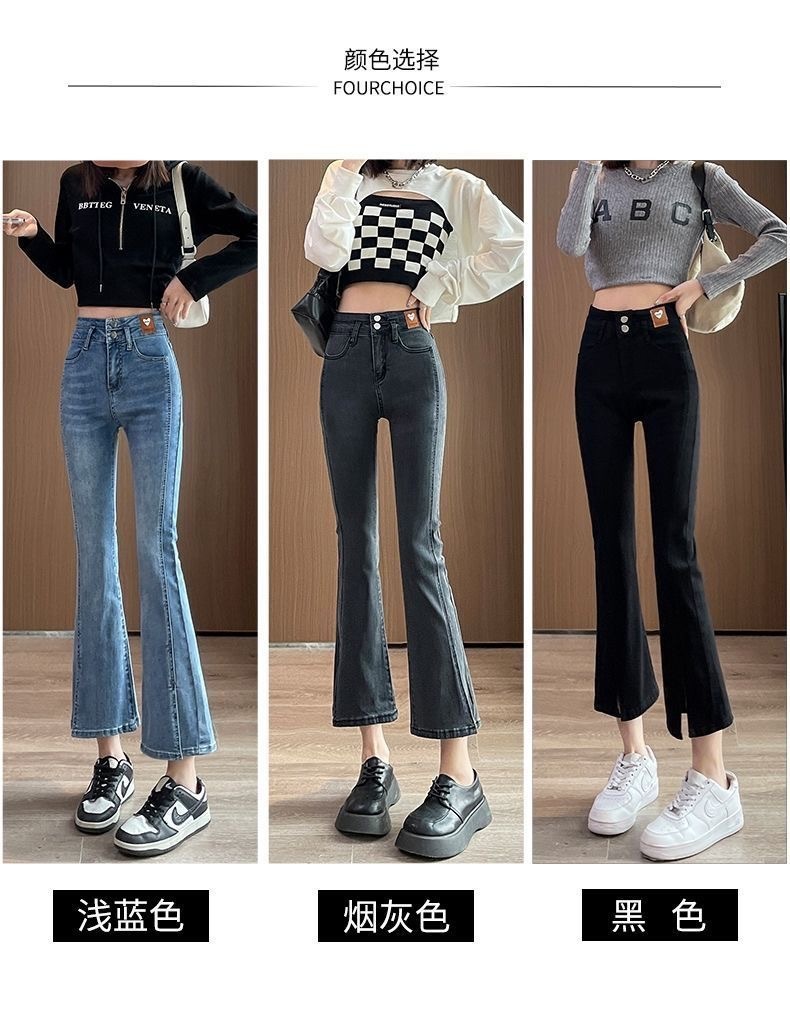Облегающие эластичные джинсы из денима с высокой талией, слегка расклешенные и с разрезом для миниатюрных женщин, модные и универсальные, новый тонкий стиль.